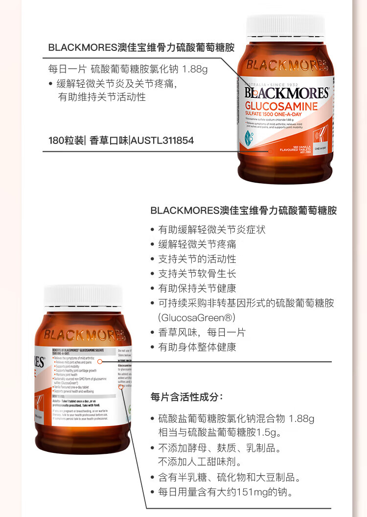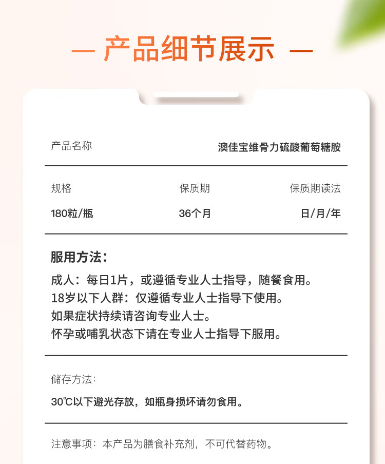 澳佳宝 氨糖维骨力 高浓度1500mg 180粒 成人中老年 送礼
