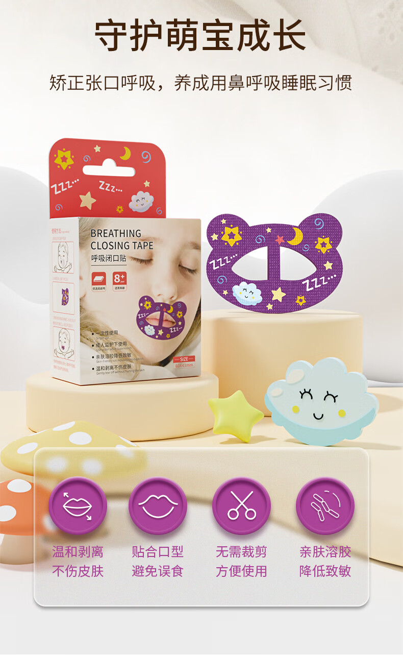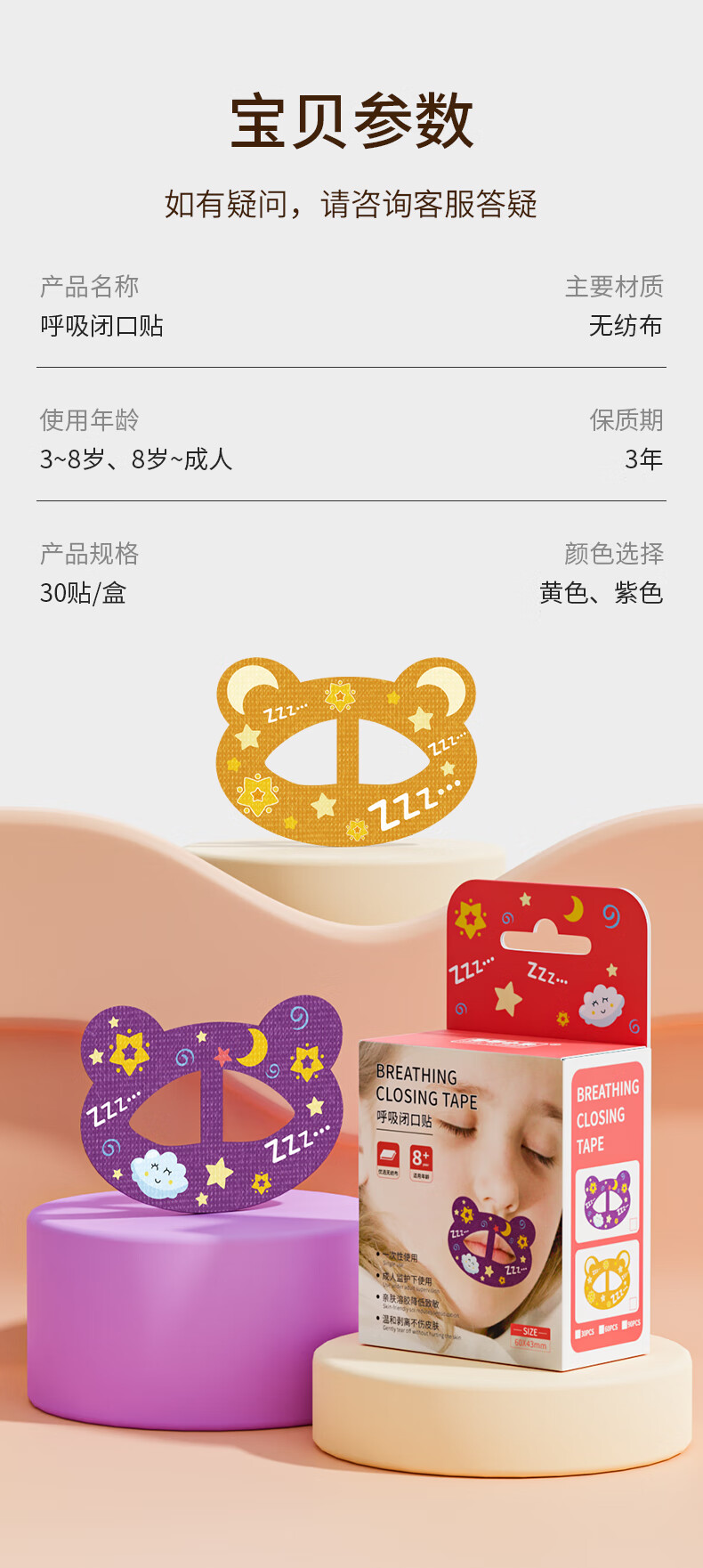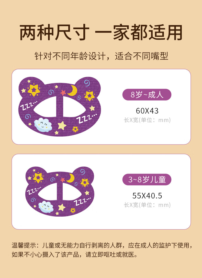 圣菲小象止鼾贴闭嘴贴口呼吸闭口贴儿童防张嘴睡觉打呼噜嘴巴贴成人封口贴