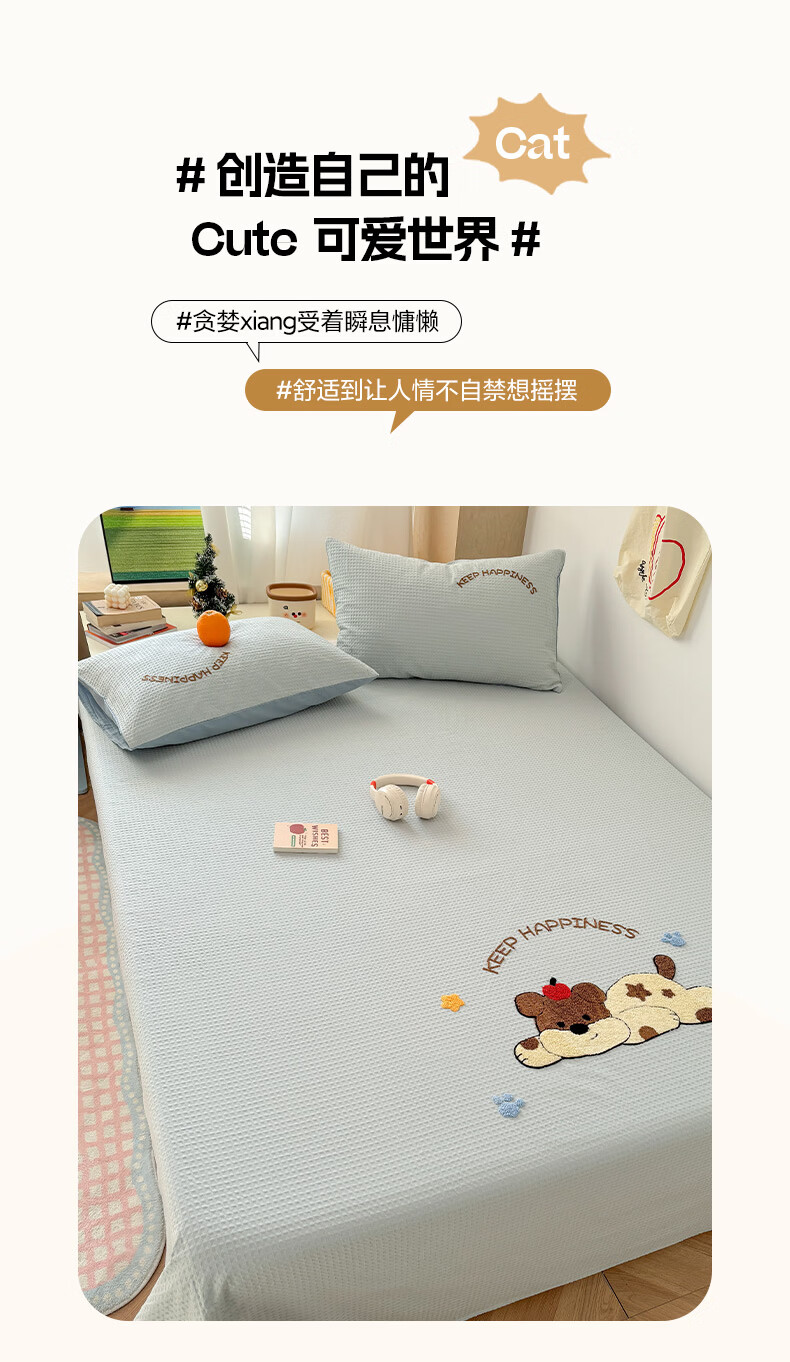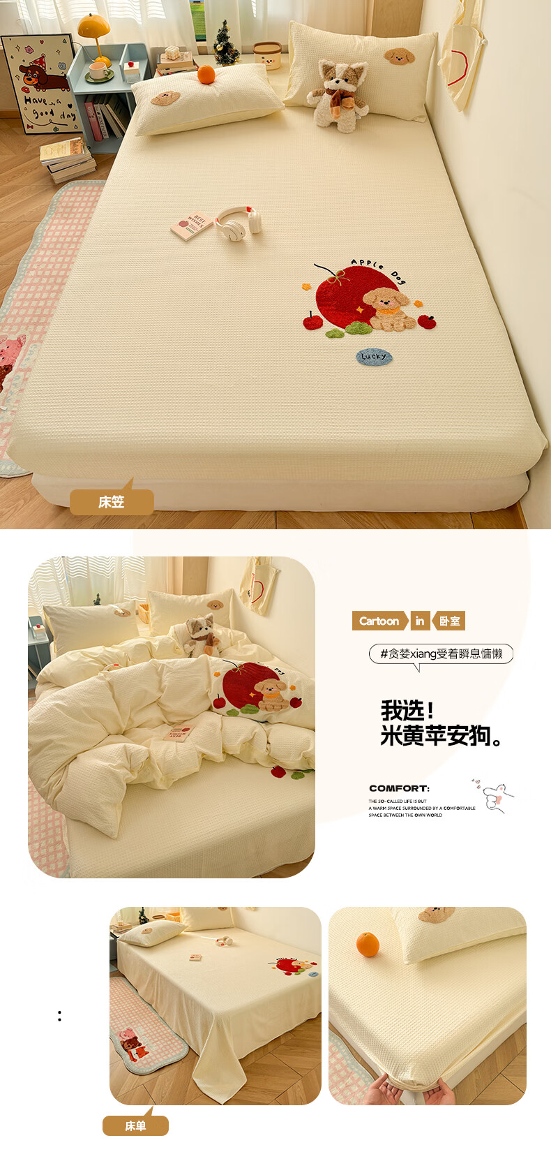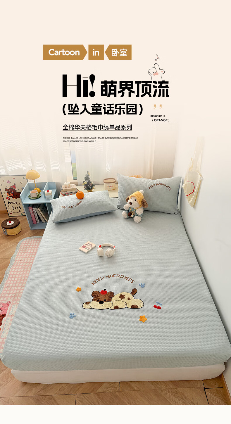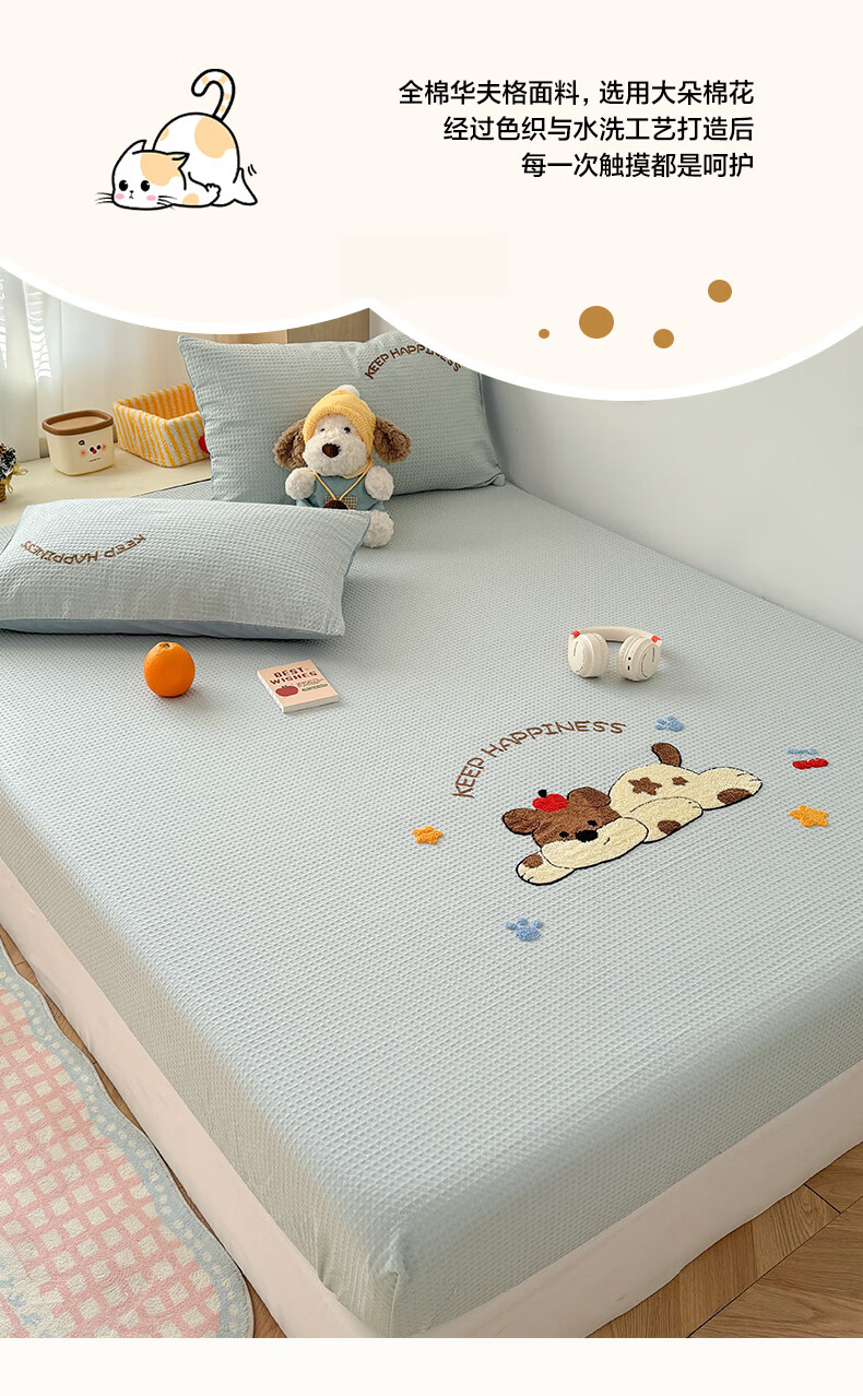 名创优品(MINISO)纯棉床笠1.8米x2米 全棉床笠罩床垫保护套被单枕套三件套 全棉-香槟 90cm*200cm 单床笠