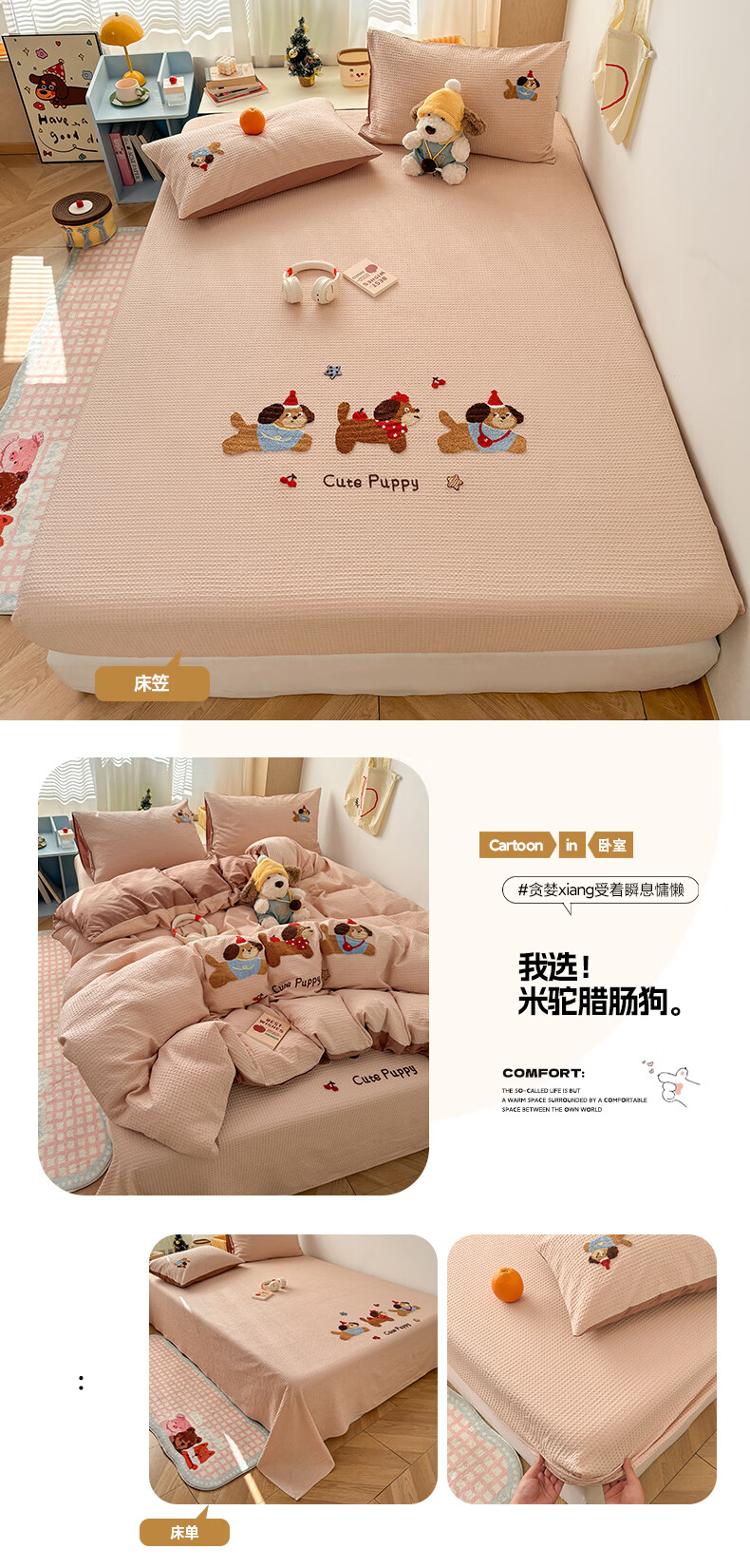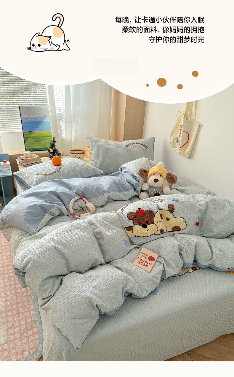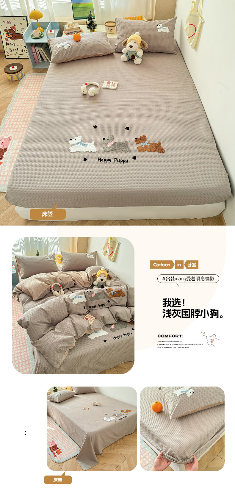 无印良品100%全棉床上四件套纯棉2026新款卡通狗狗被套床单床笠款床品套件 黑白西高地【100%全棉亲肤柔软】 床单款 1.8m四件套-被套200x230cm