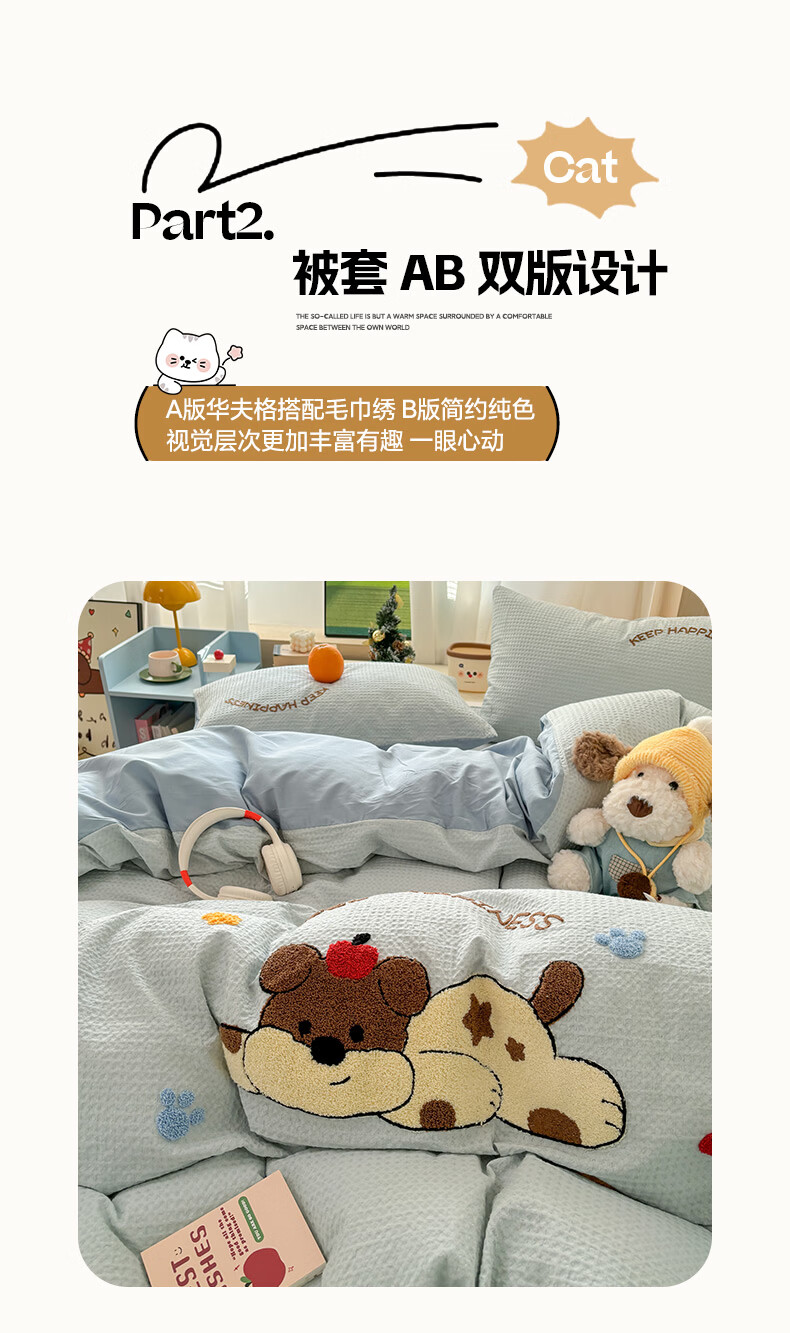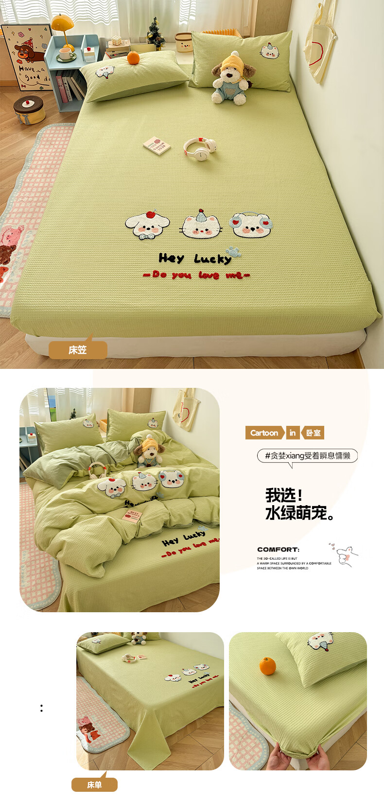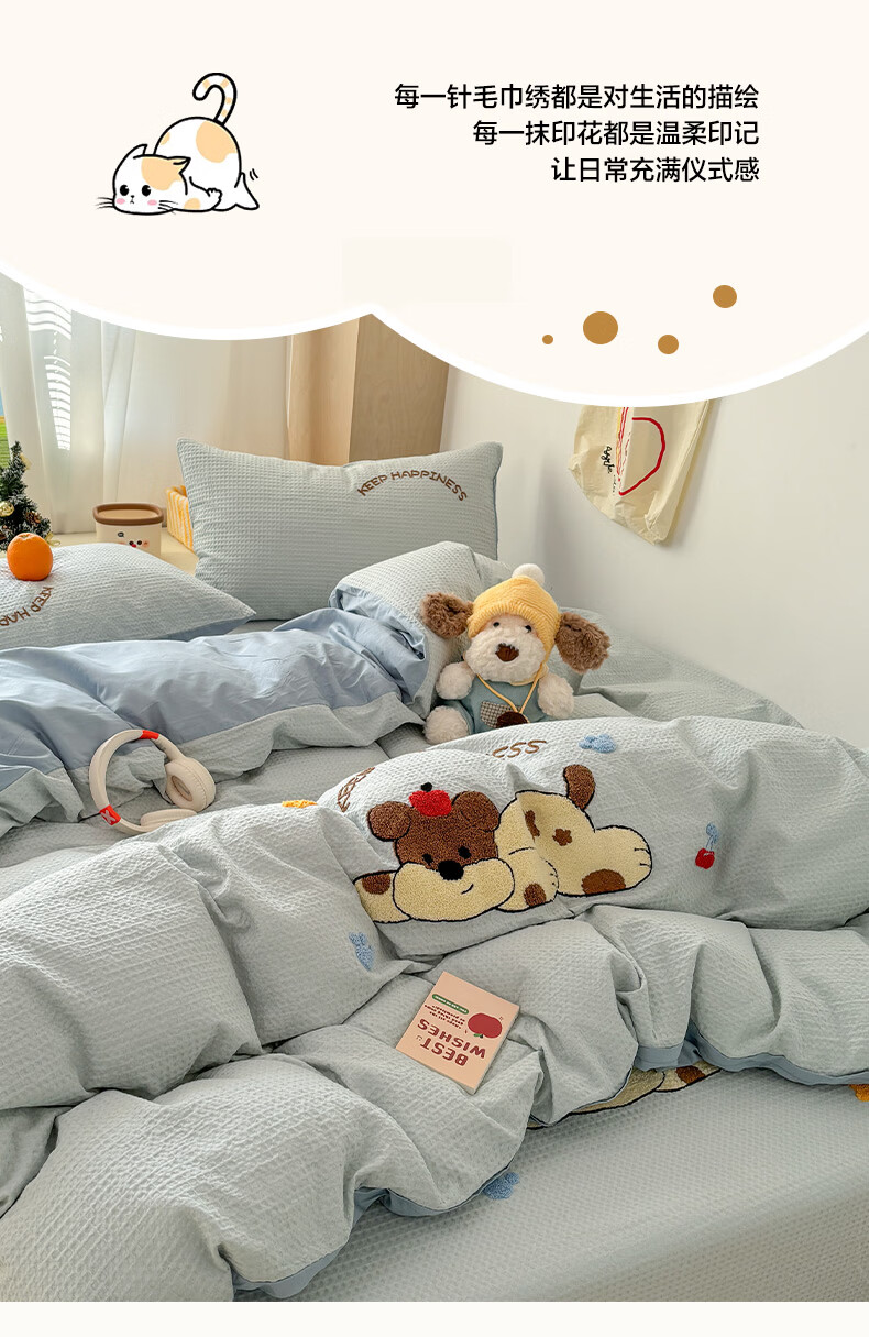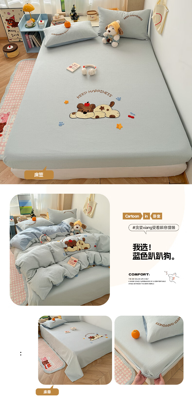 无印良品100%全棉床上四件套纯棉2026新款卡通狗狗被套床单床笠款床品套件 黑白西高地【100%全棉亲肤柔软】 床单款 1.8m四件套-被套200x230cm