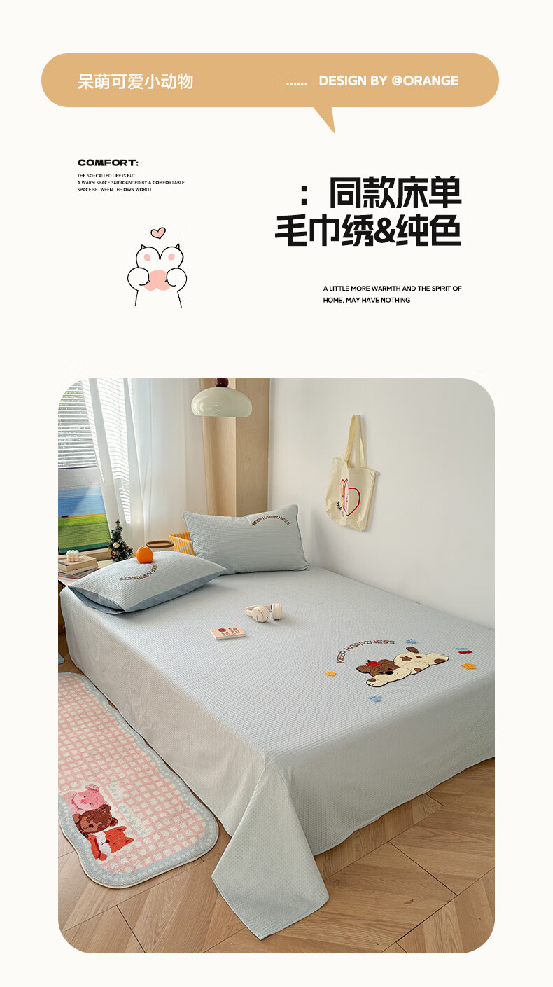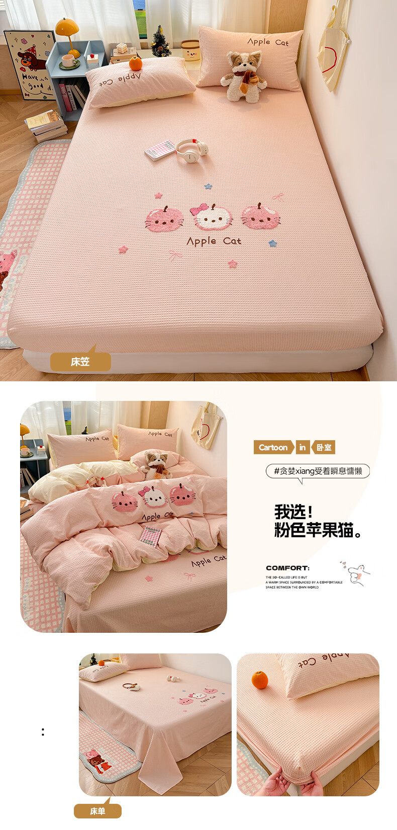 无印良品卡通全棉纯棉床单1.8x2米床被单单件亲肤裸睡床上三件套四季通用 粉色苹果猫 【亲肤全棉不易起球】 160cm*230cm 单床单【适用于1.2m床】