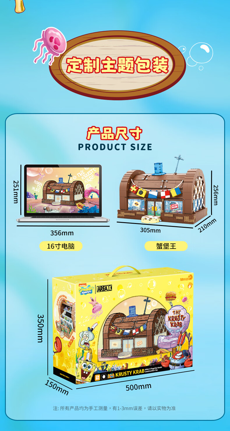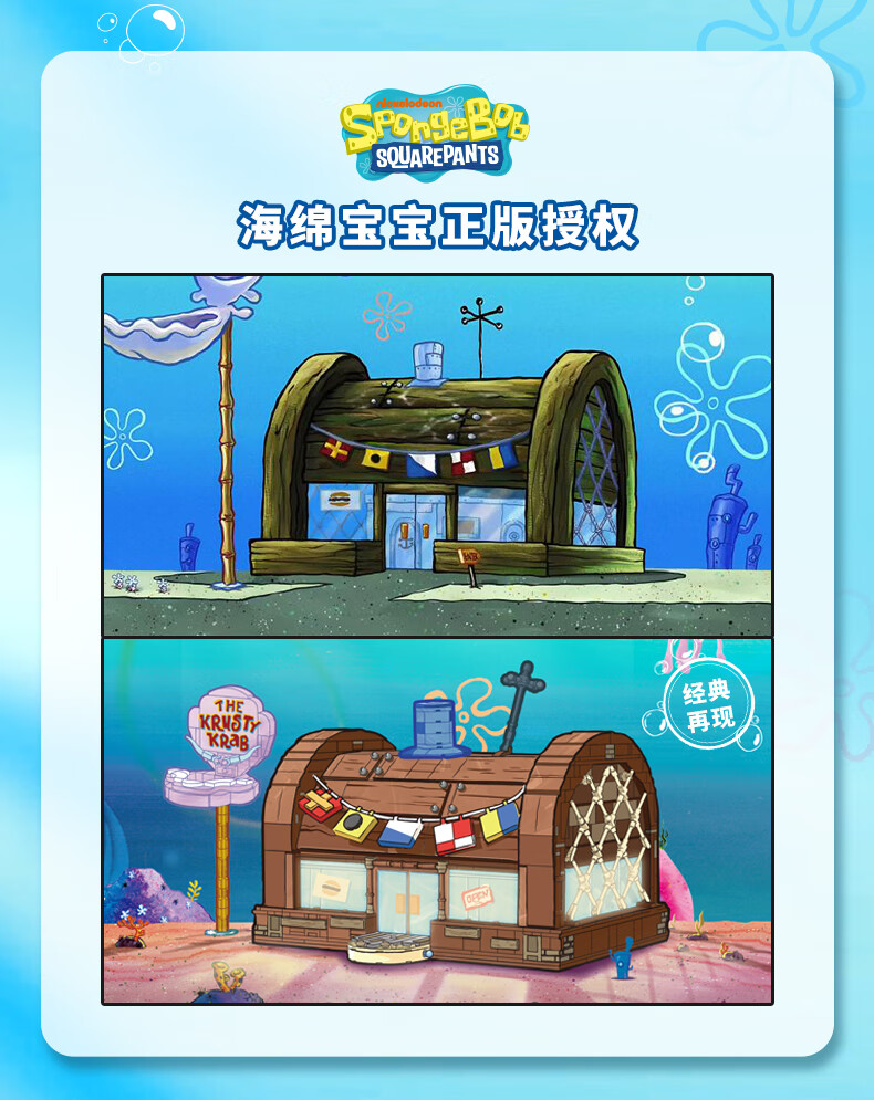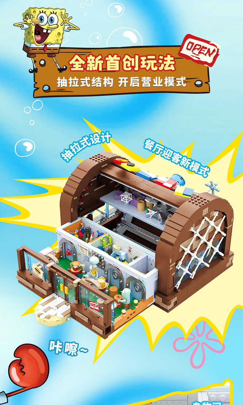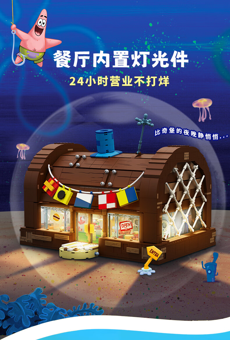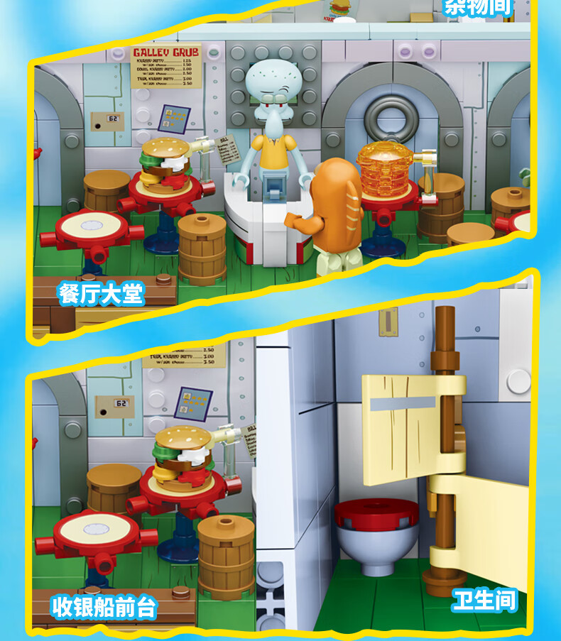 AREA-X海绵宝宝积木拼搭玩具潮玩生日三八女生礼物蟹堡王餐兼容乐高