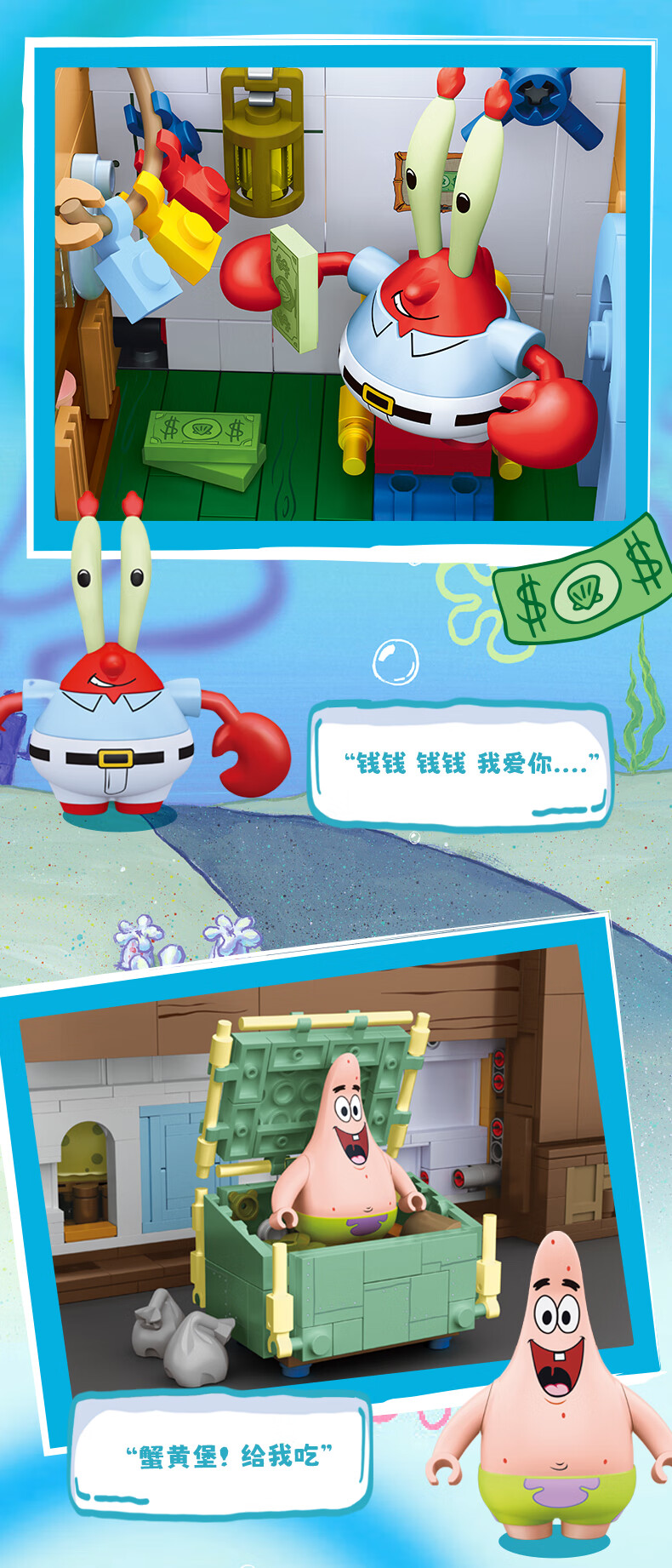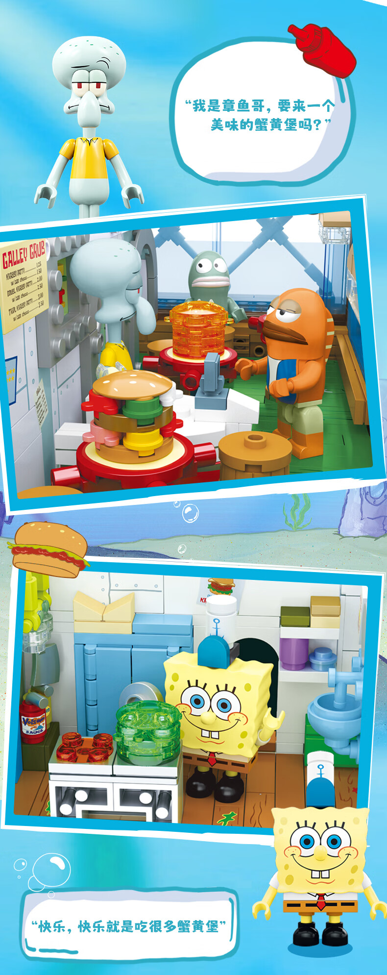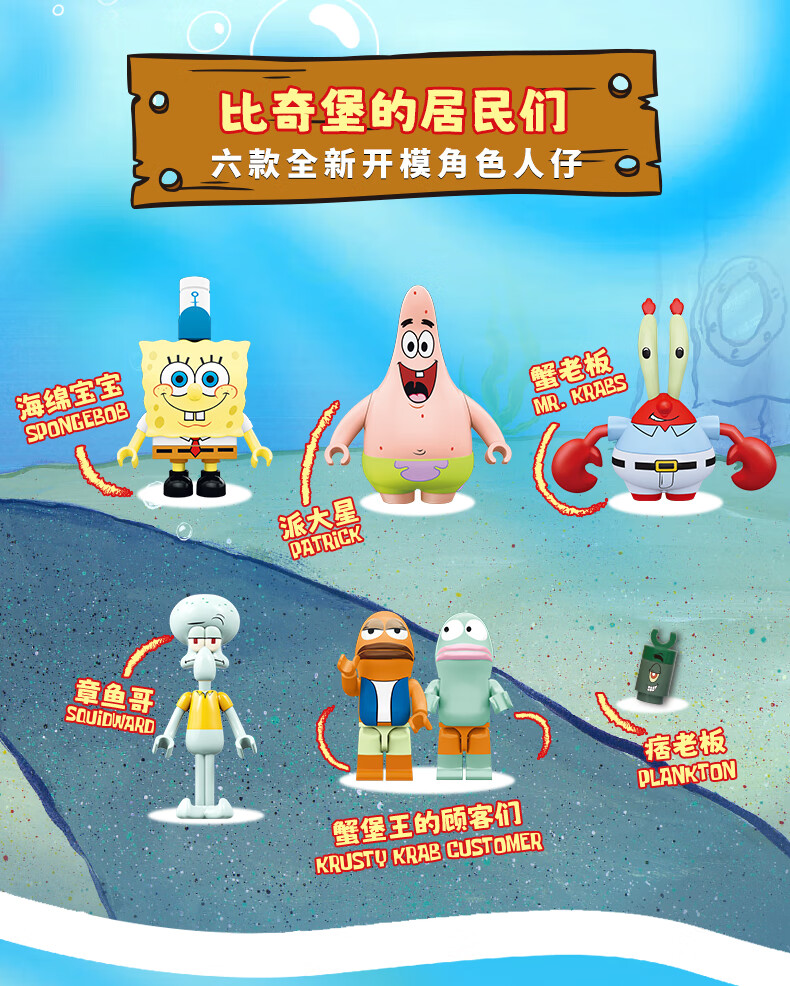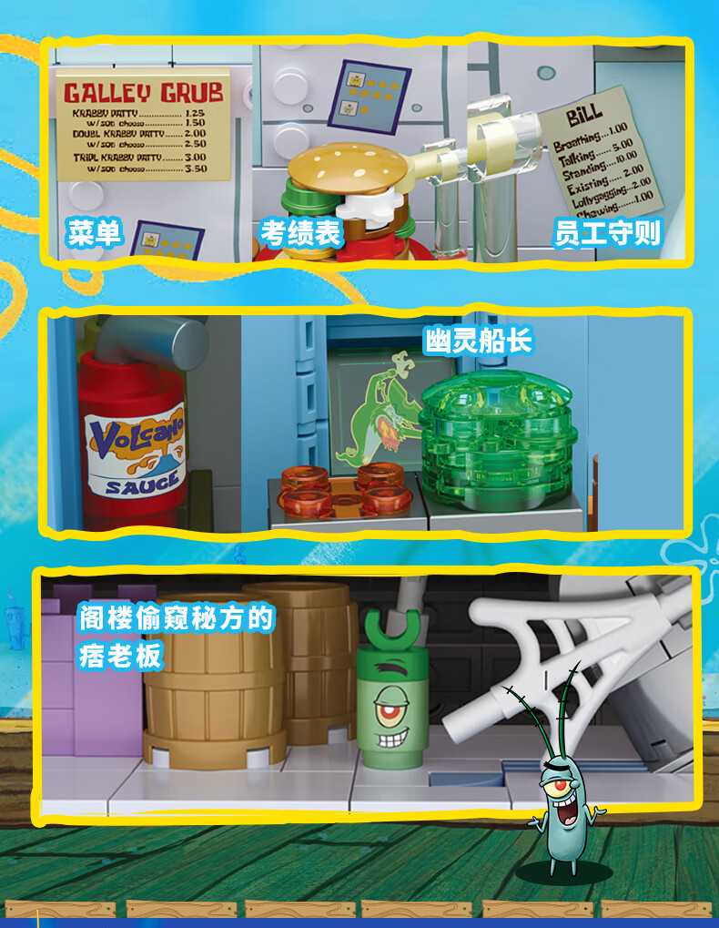 AREA-X海绵宝宝积木拼搭玩具潮玩生日三八女生礼物蟹堡王餐兼容乐高