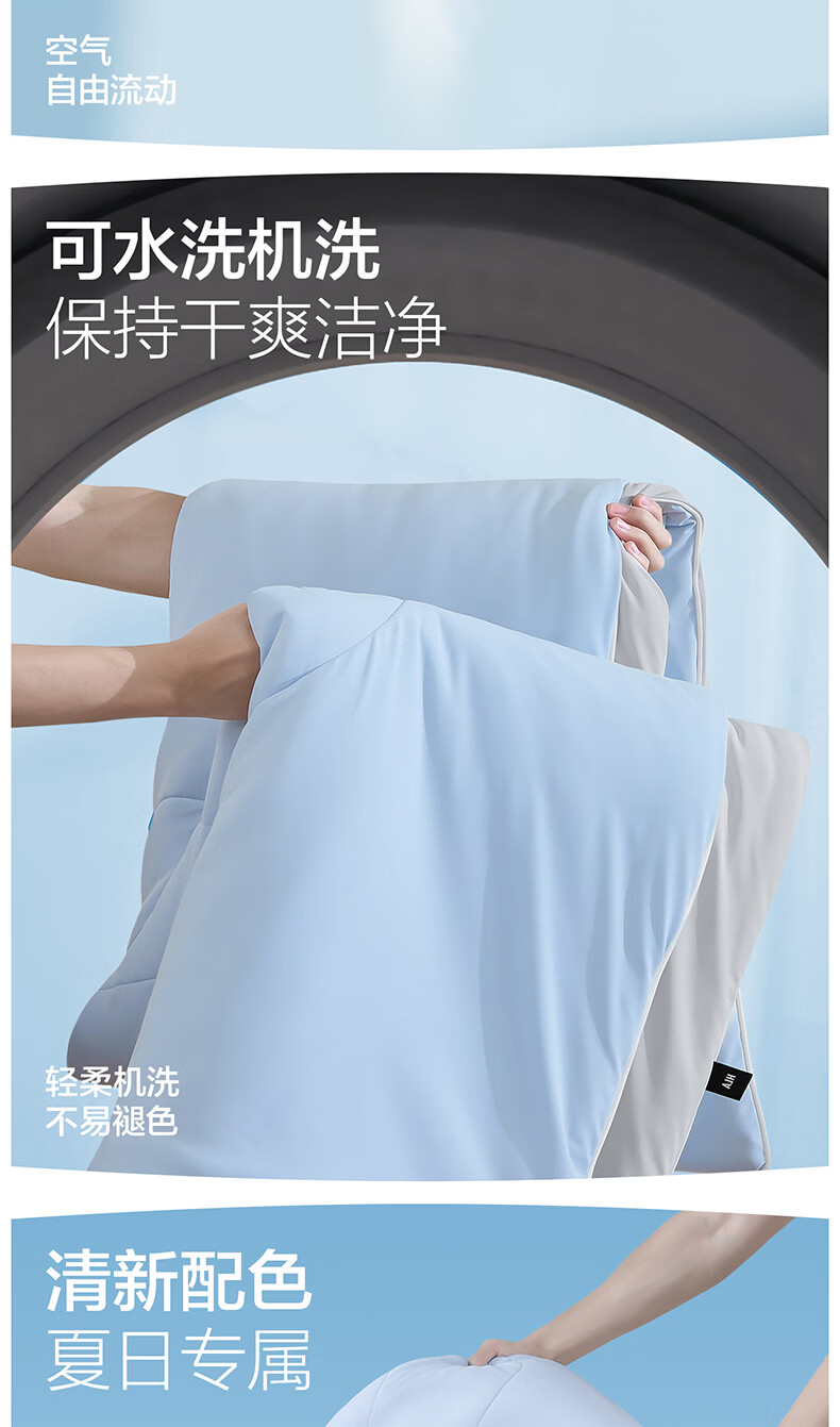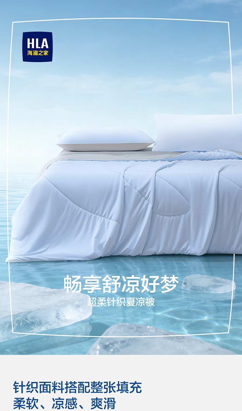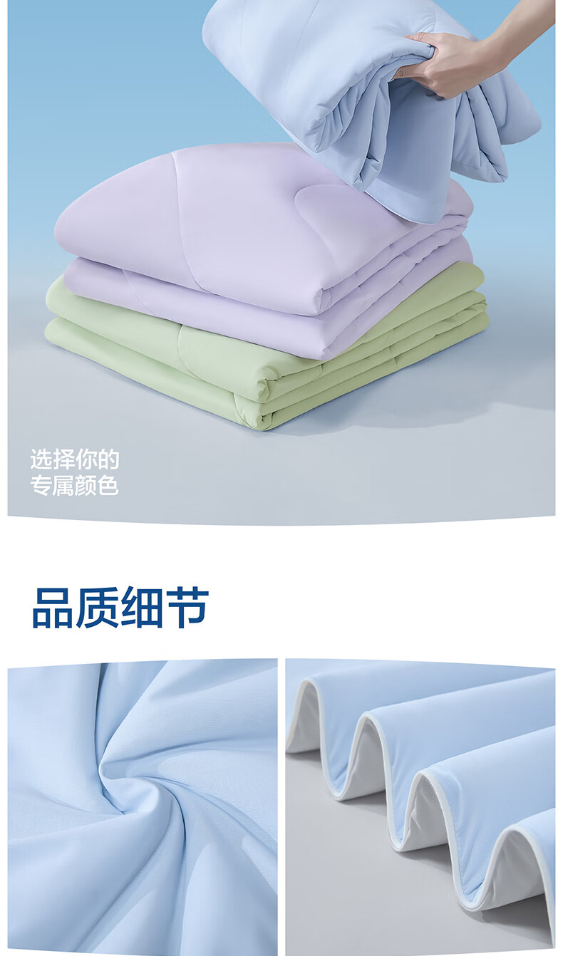 海澜之家(HLA)7A抗菌夏凉被空调被子针织被芯聚氨酯凉感纤维清凉夏季薄被子家用 青柠绿+冰川蓝【凉感面料 爽滑透气】 150*200cm夏被