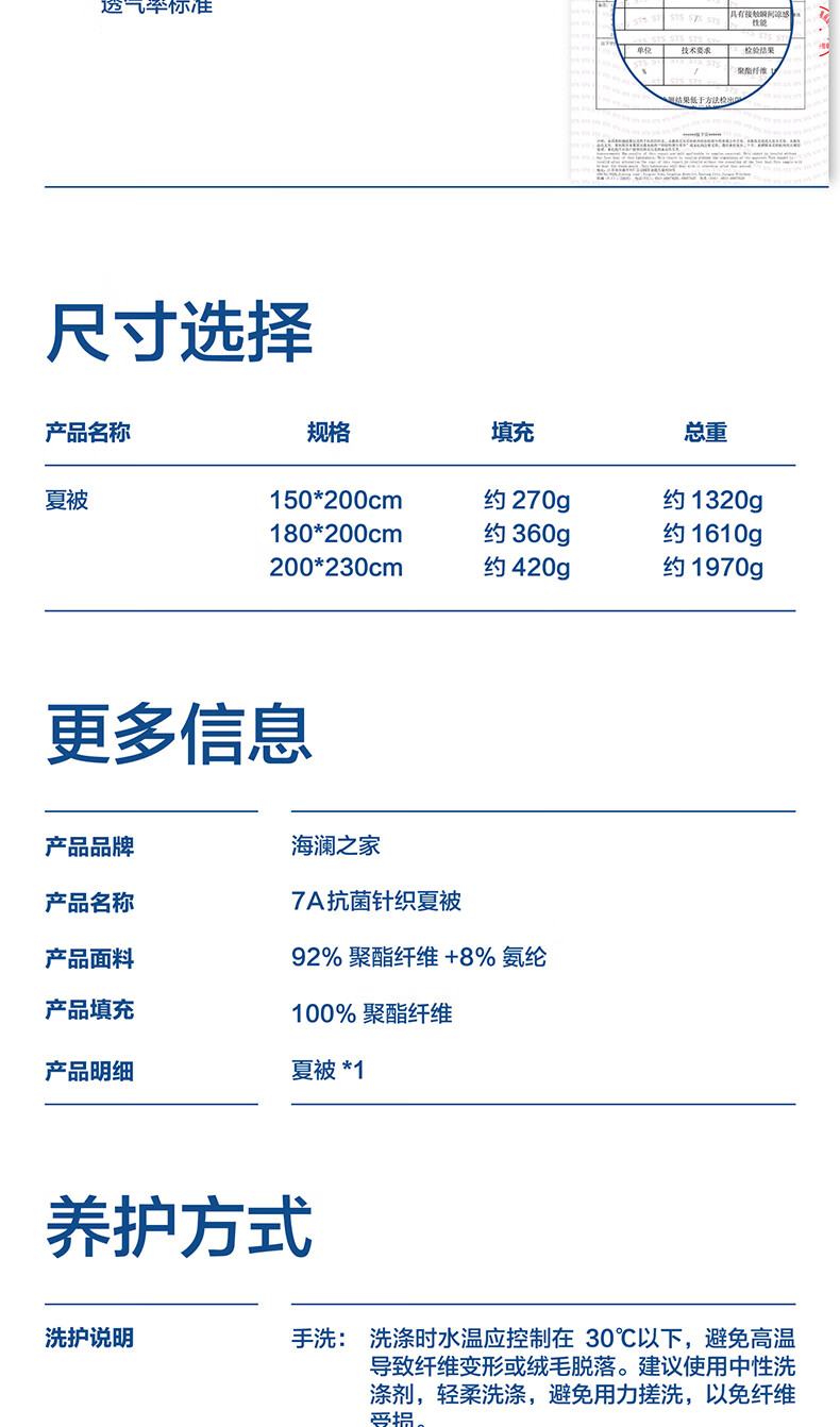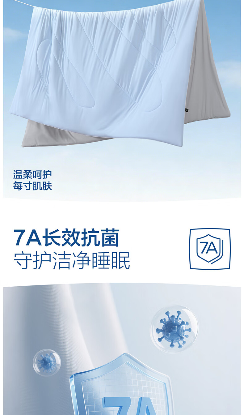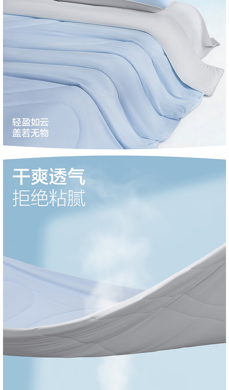 海澜之家(HLA)7A抗菌夏凉被空调被子针织被芯聚氨酯凉感纤维清凉夏季薄被子家用 青柠绿+冰川蓝【凉感面料 爽滑透气】 150*200cm夏被