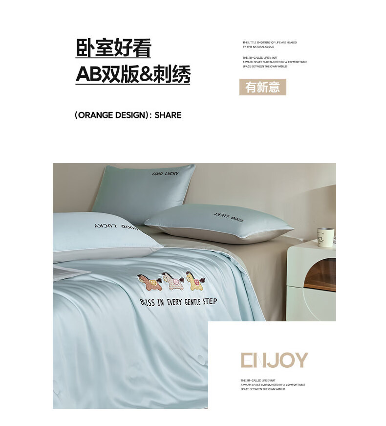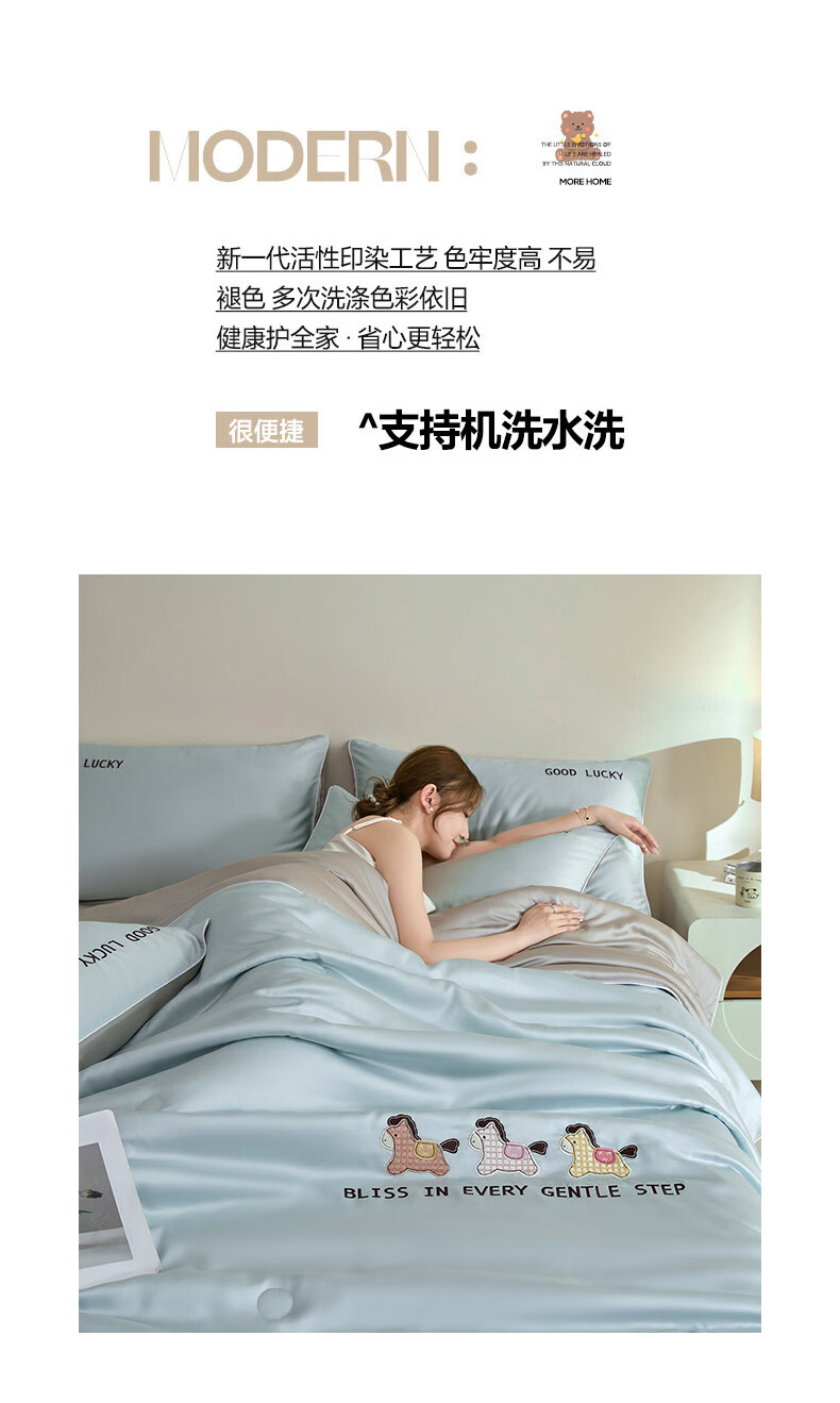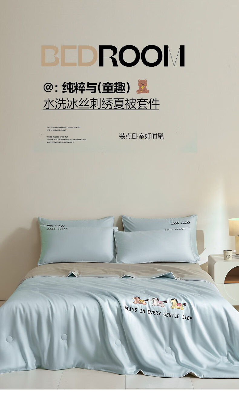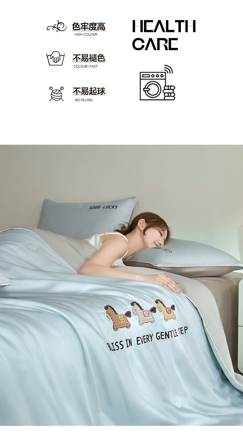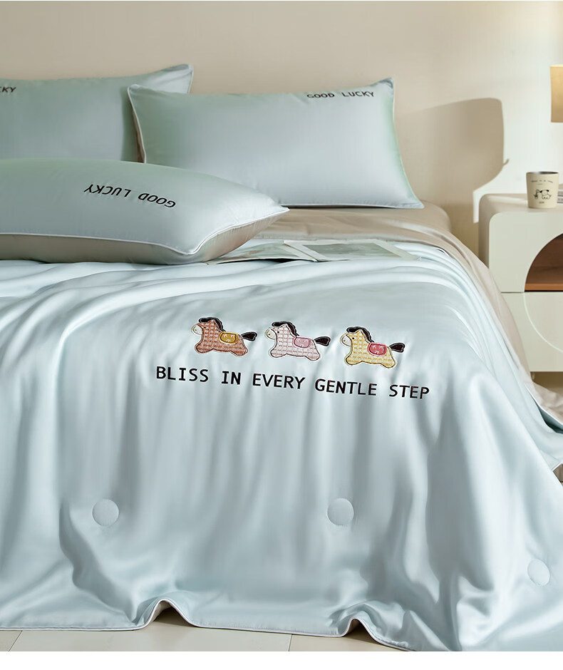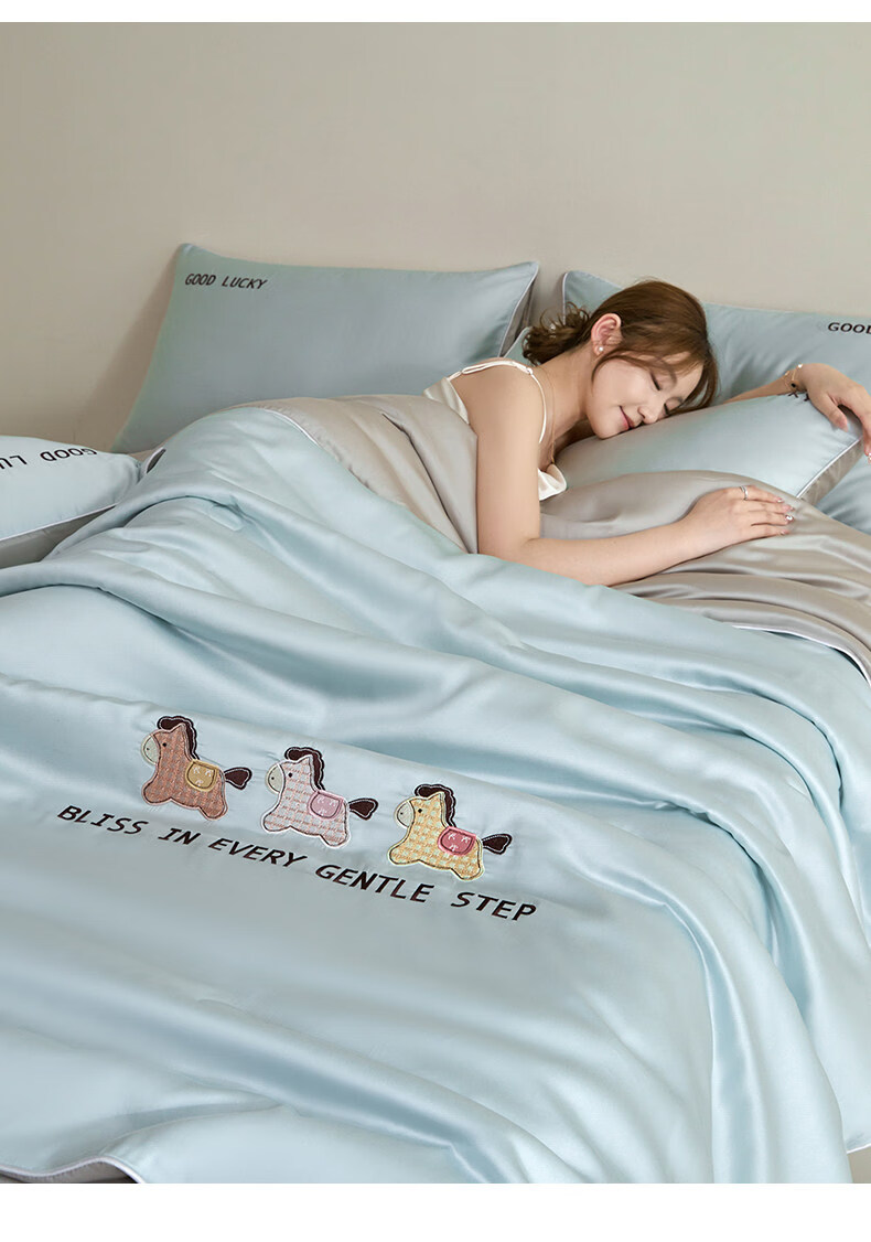 VJE夏天凉感冰丝空调被夏凉被可机洗学生宿舍夏被四件套单双人薄被子 元气小马-风铃蓝+冰川灰 150x200cm单夏被
