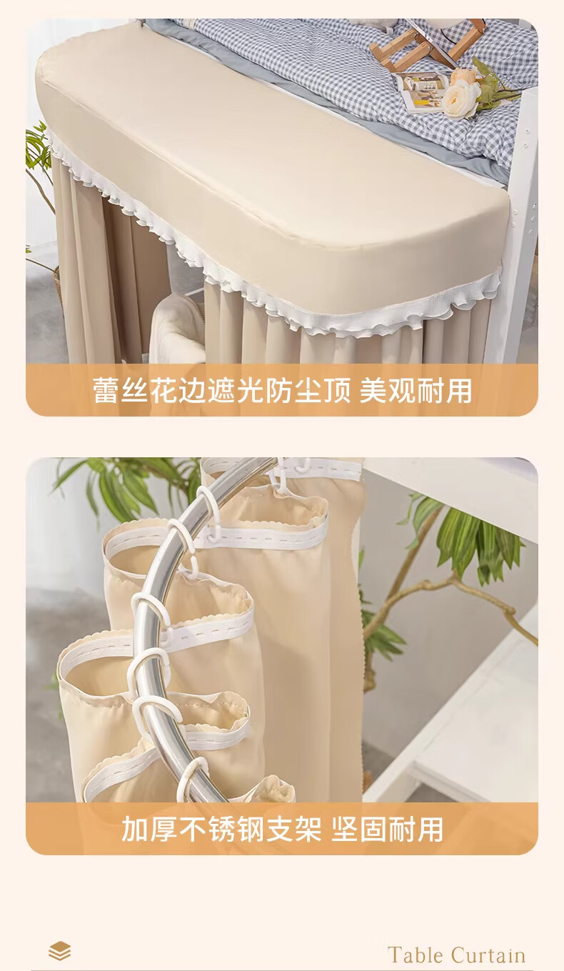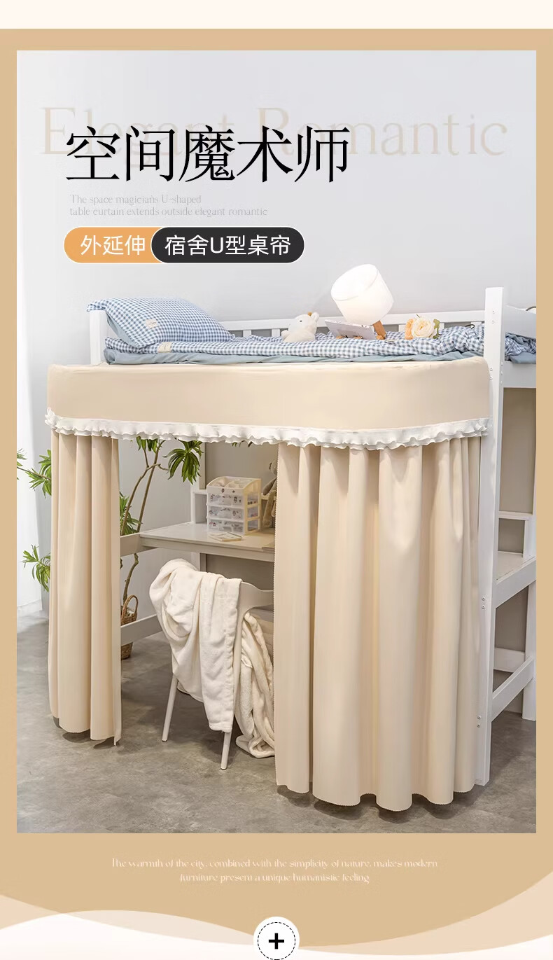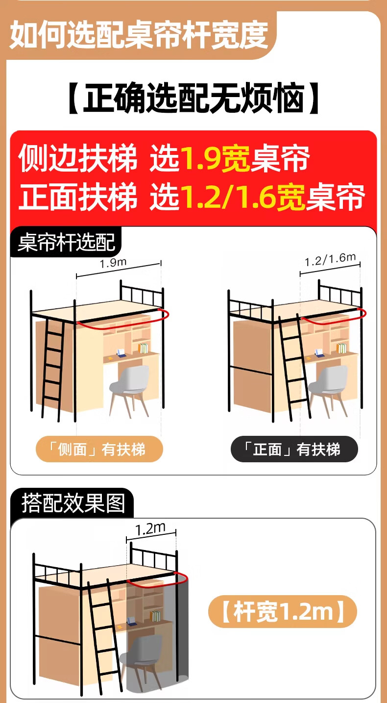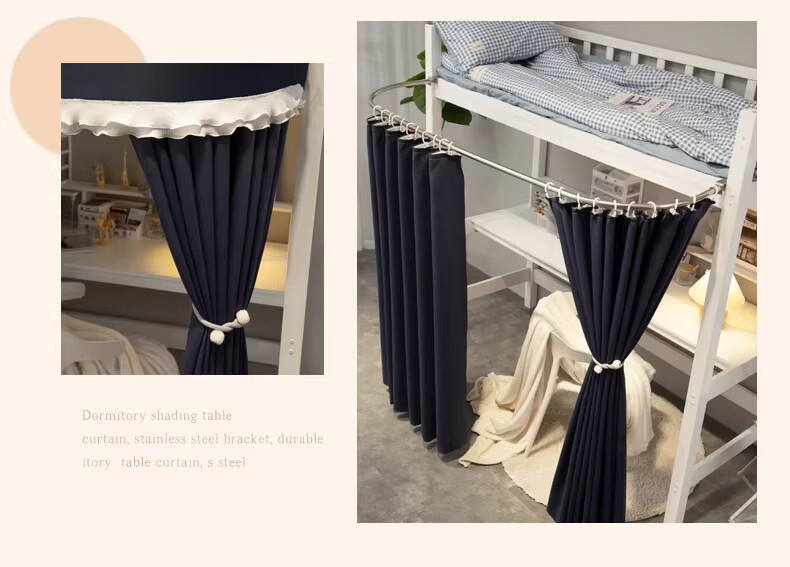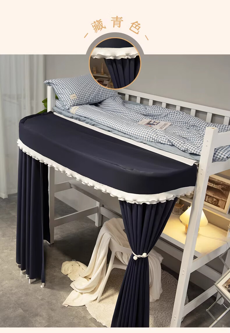 云瑾学生宿舍桌帘床帘下铺u型滑轨上床下桌强遮光帘寝室遮光布围帘 藏青色 长1.9m【外扩40杆+2帘】高120cm