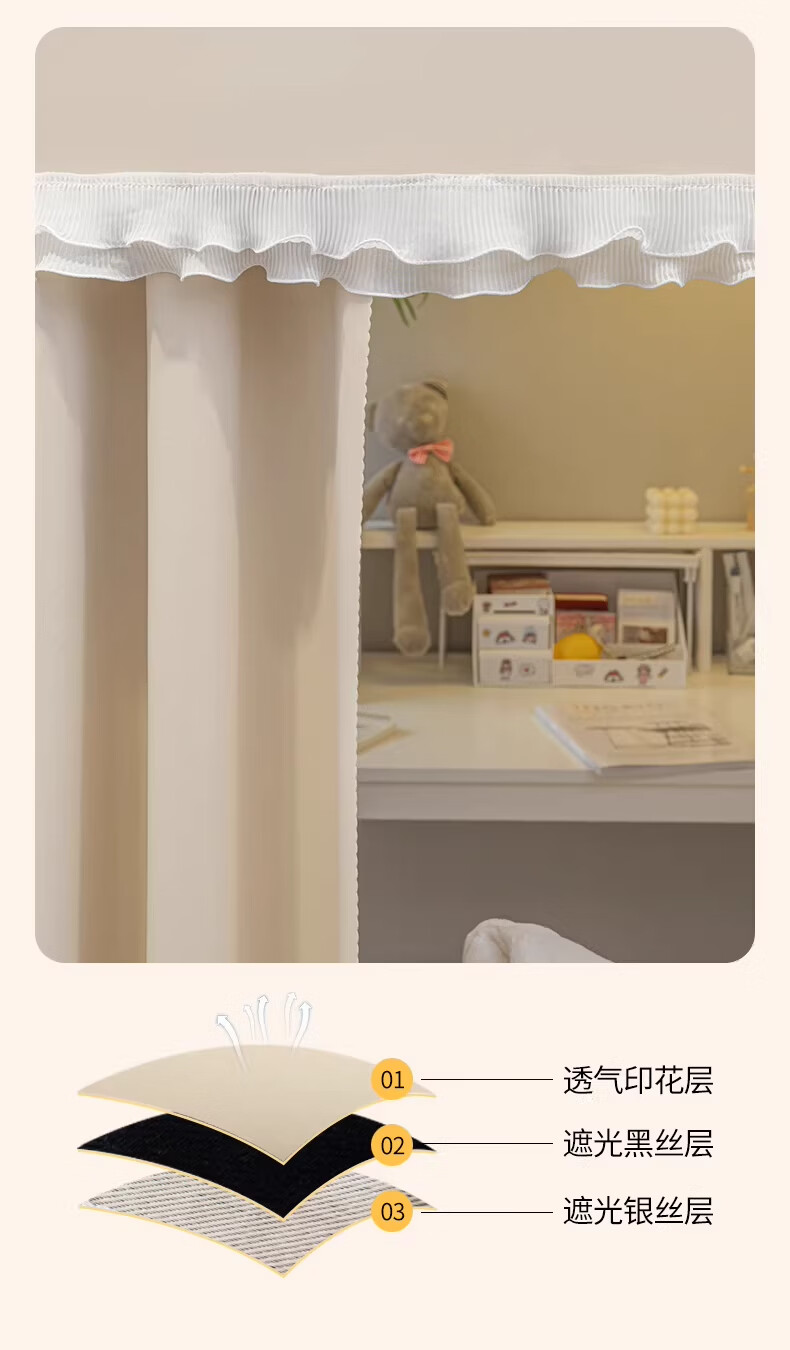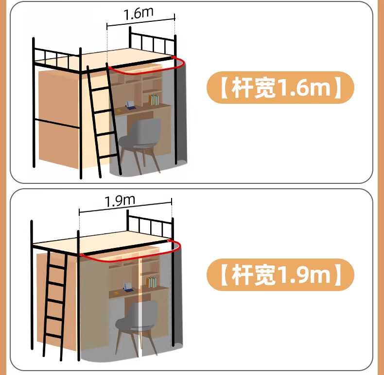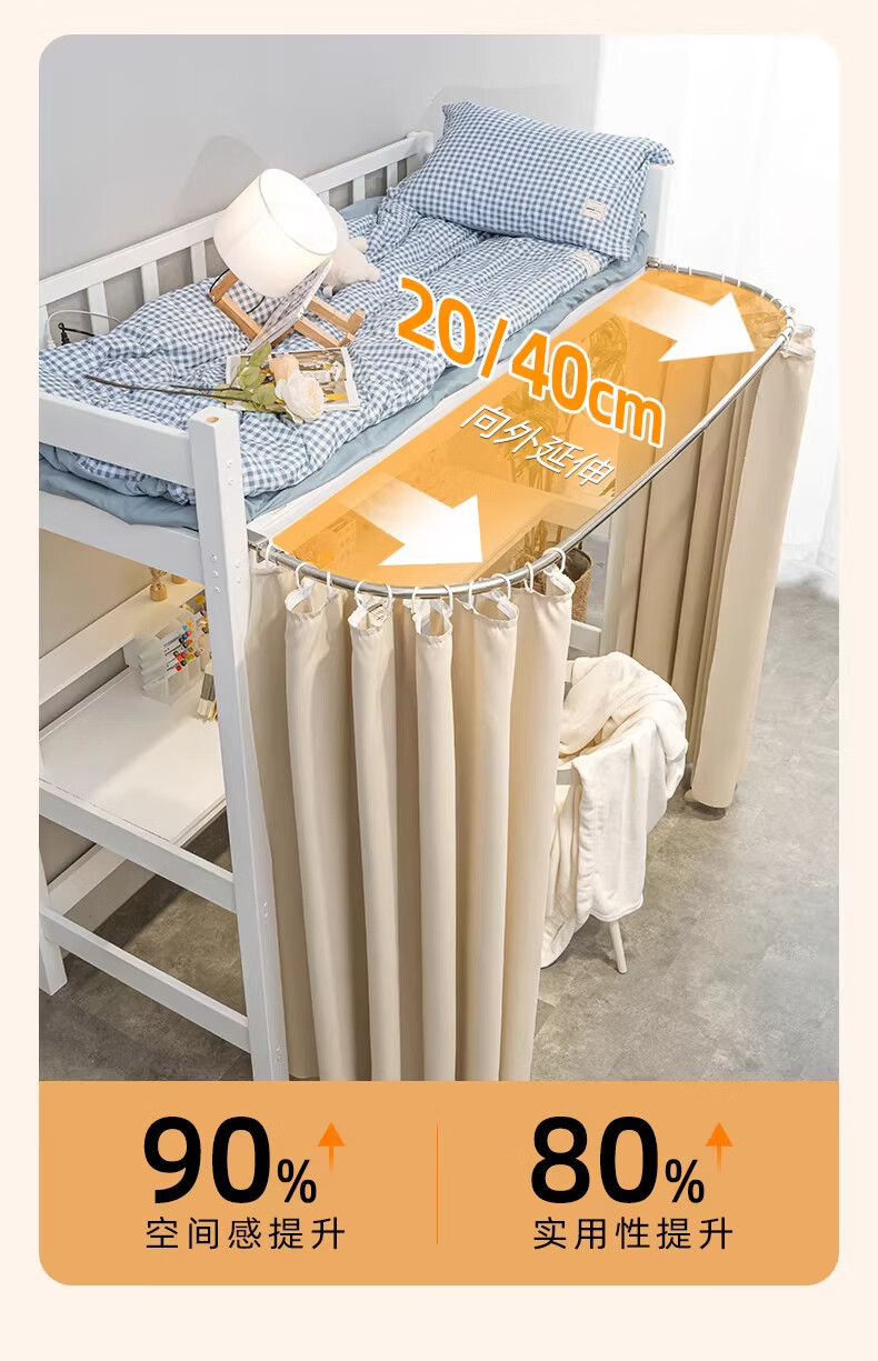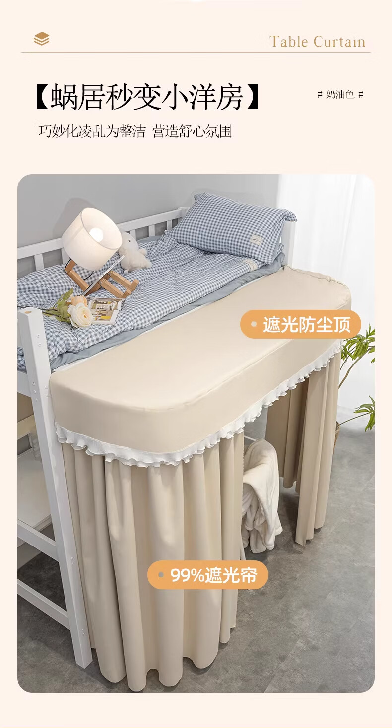 云瑾学生宿舍桌帘床帘下铺u型滑轨上床下桌强遮光帘寝室遮光布围帘 藏青色 长1.9m【外扩40杆+2帘】高120cm