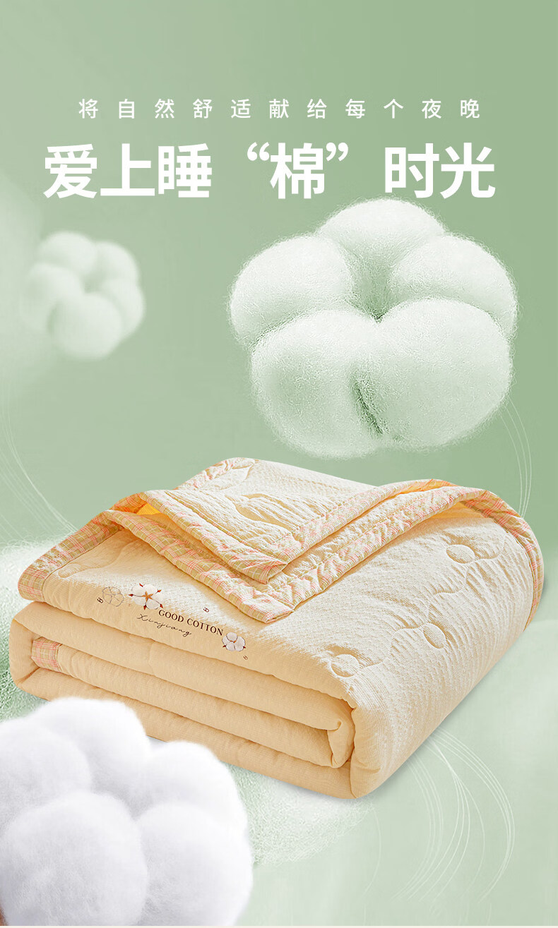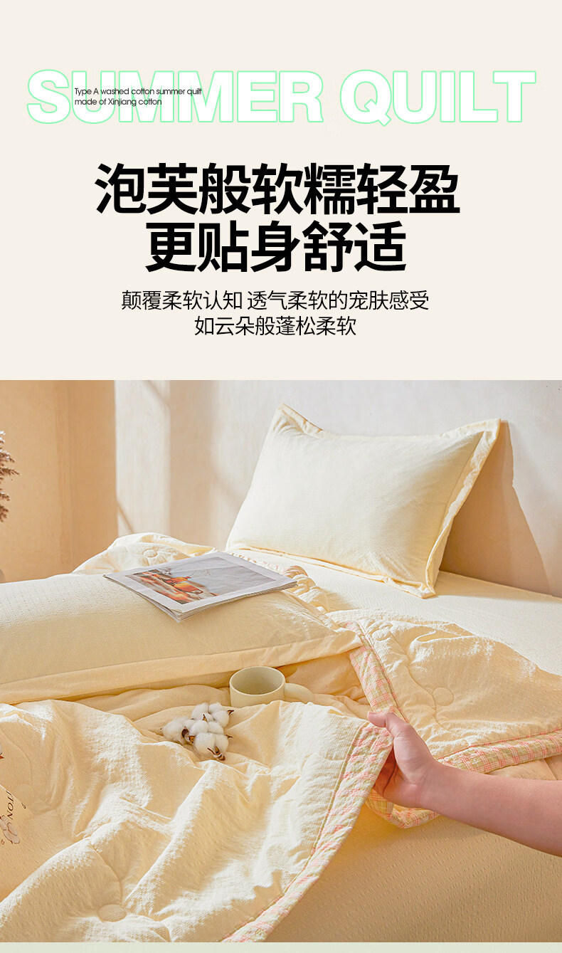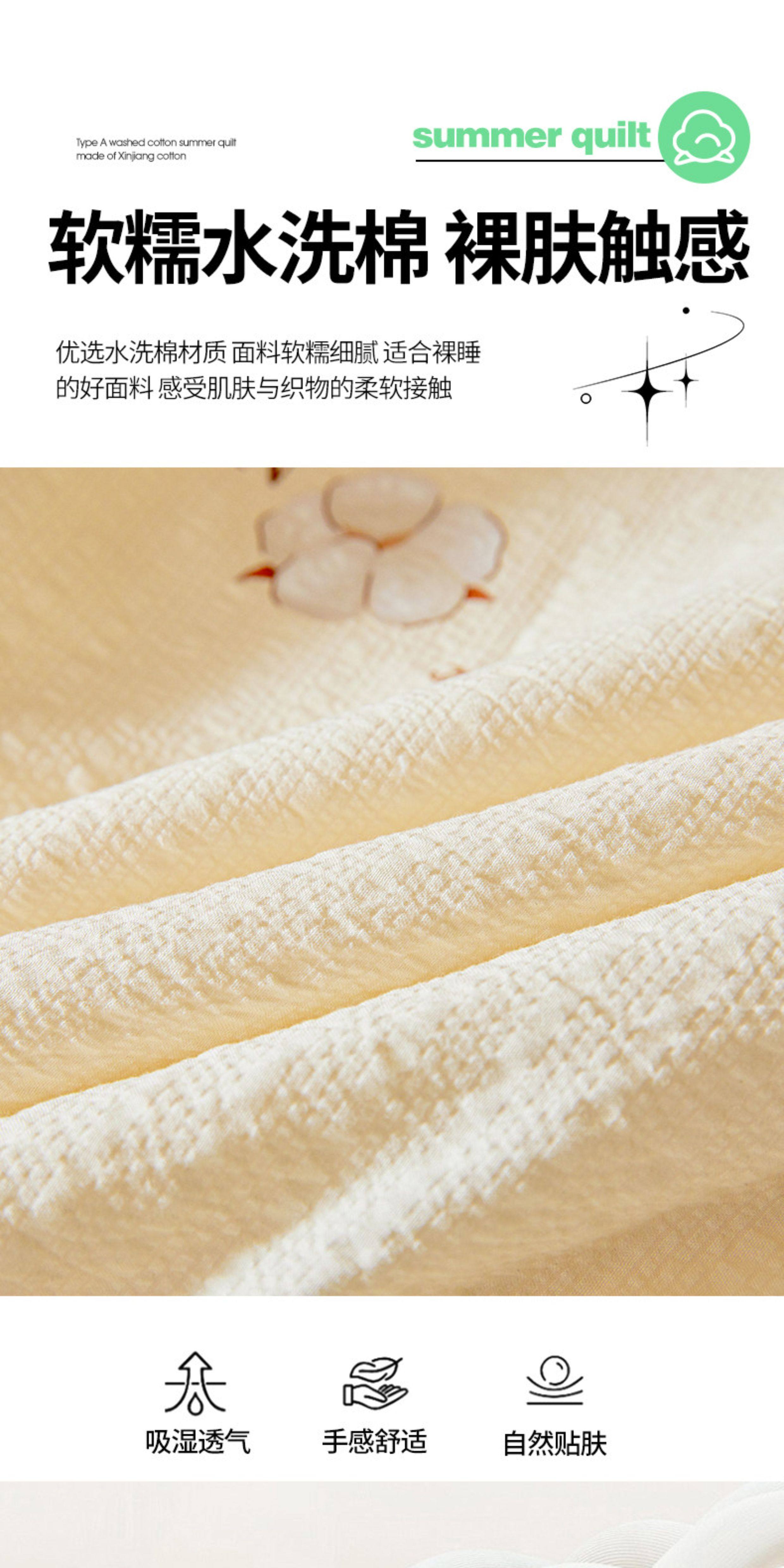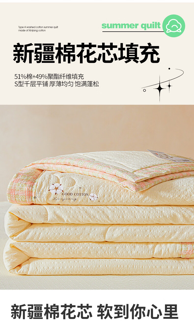 猫人(MiiOW)皱皱纱新疆棉花夏被夏凉被夏季宿舍单双人可机洗空调被薄被子 泡芙-黄 【51%棉花填充 软糯亲肤】 100*150cm-儿童夏凉被