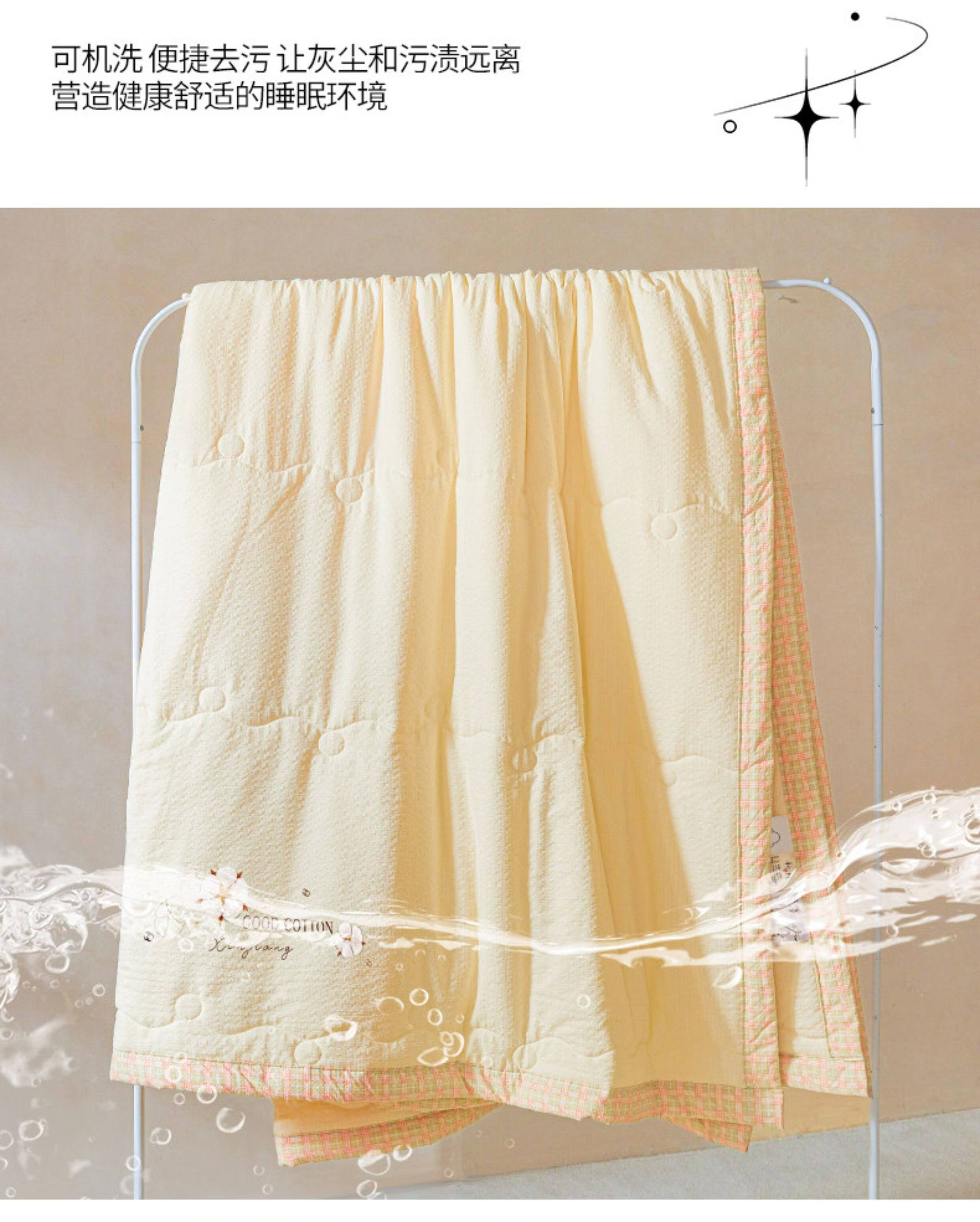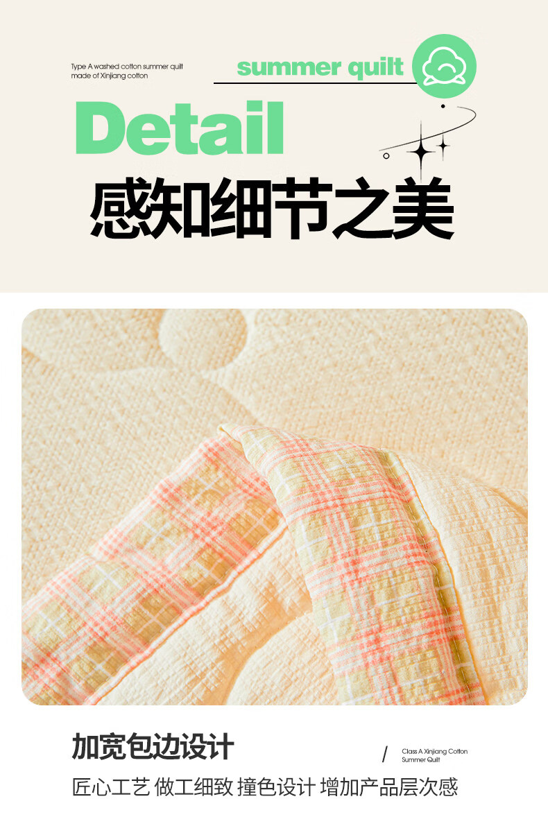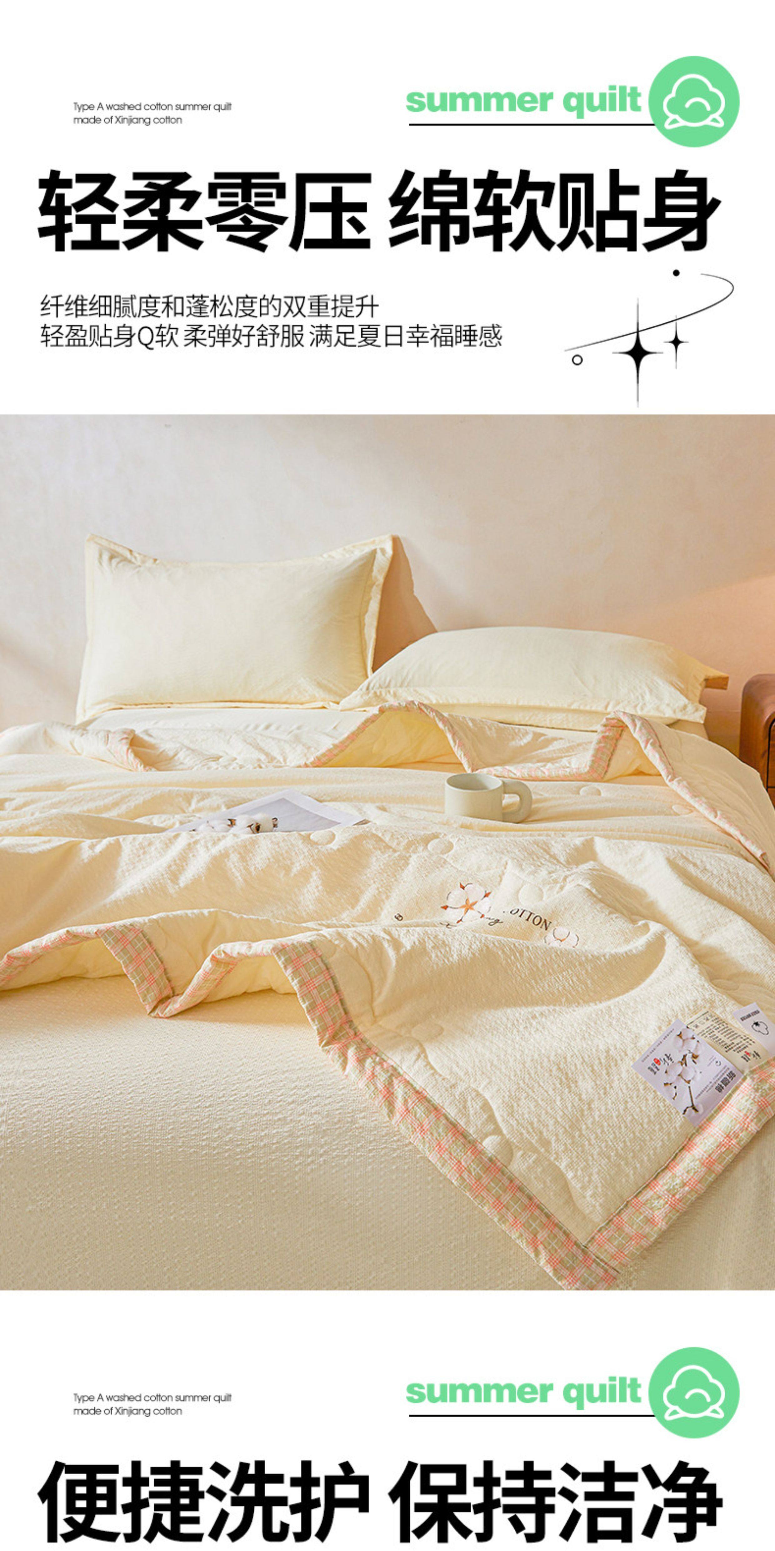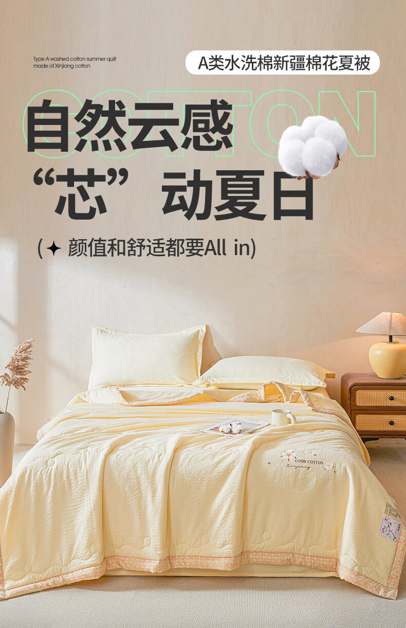 猫人(MiiOW)皱皱纱新疆棉花夏被夏凉被夏季宿舍单双人可机洗空调被薄被子 泡芙-黄 【51%棉花填充 软糯亲肤】 100*150cm-儿童夏凉被