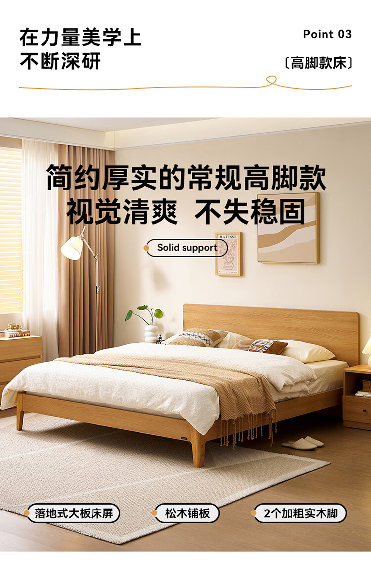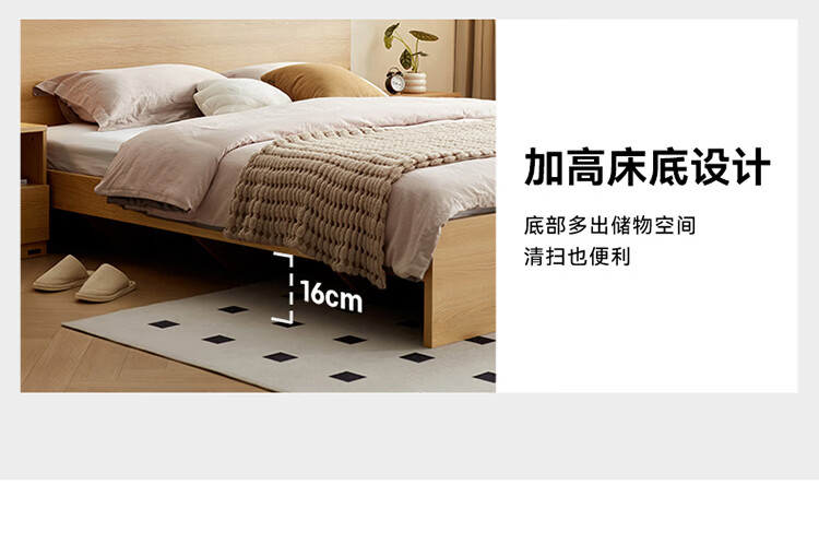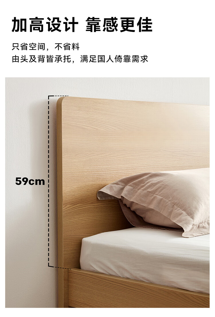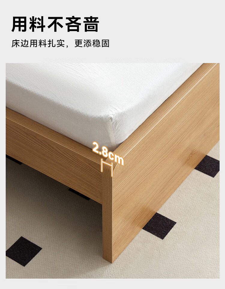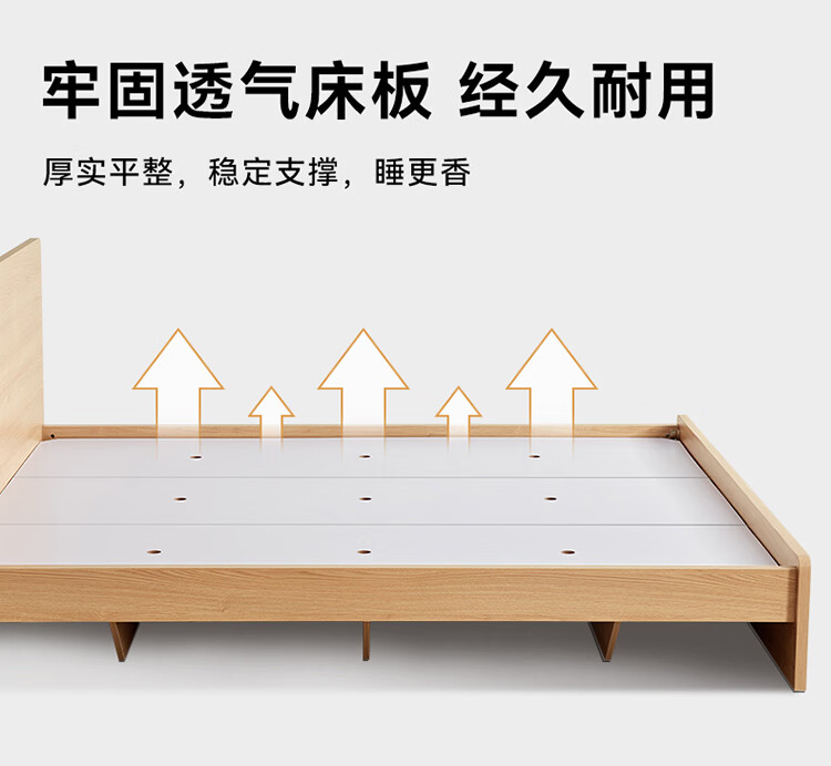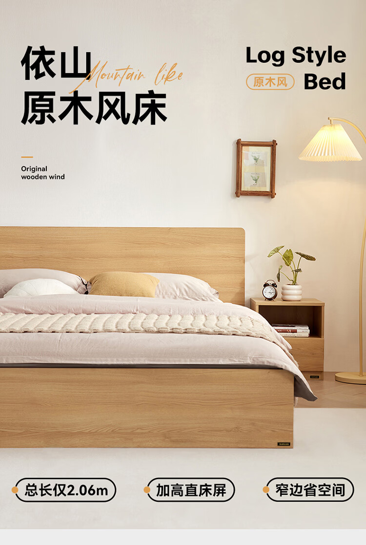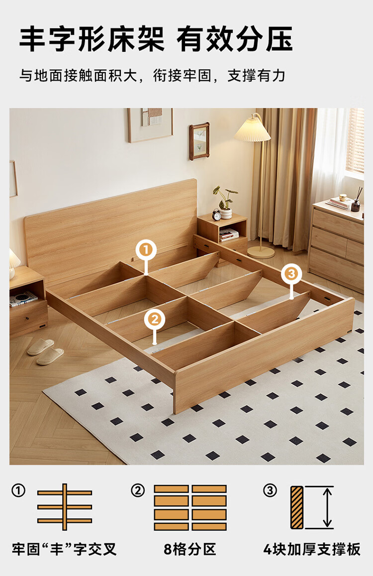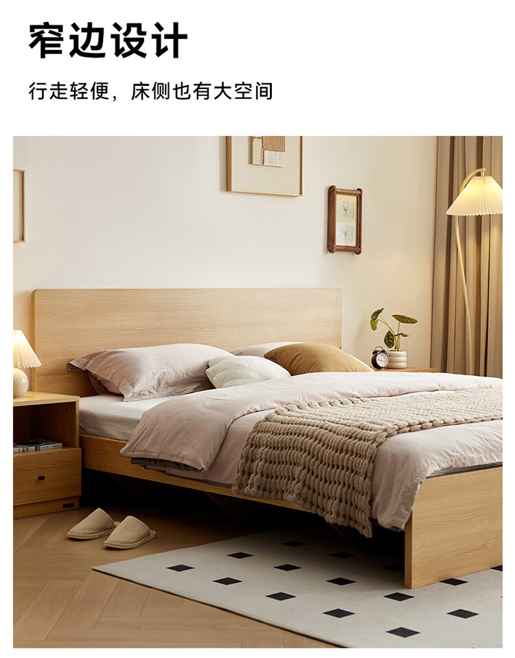 全友家居 床1.5米x2米主卧室双人大床北欧原木极简风出租屋硬板式床