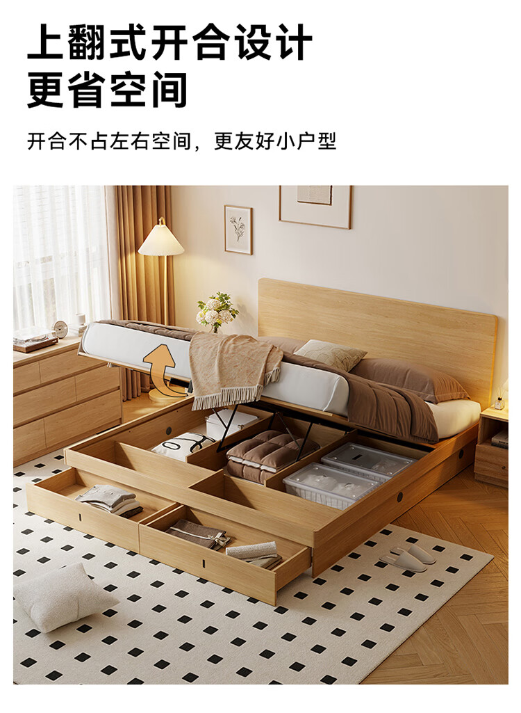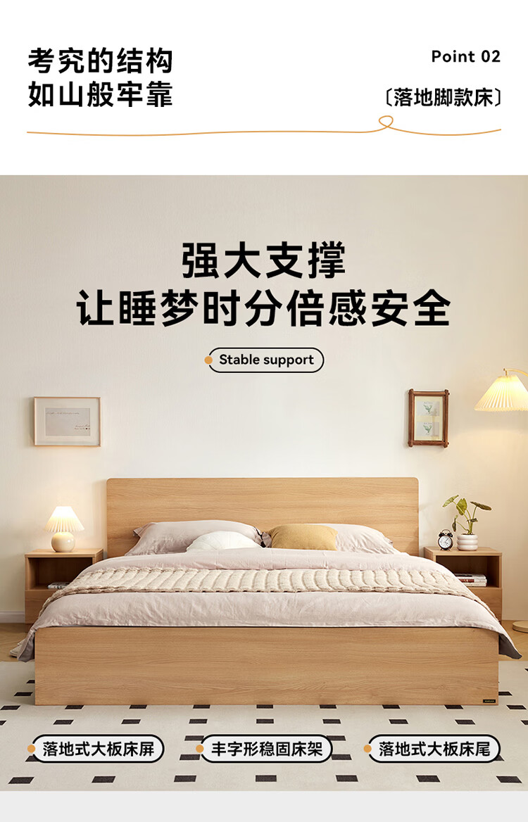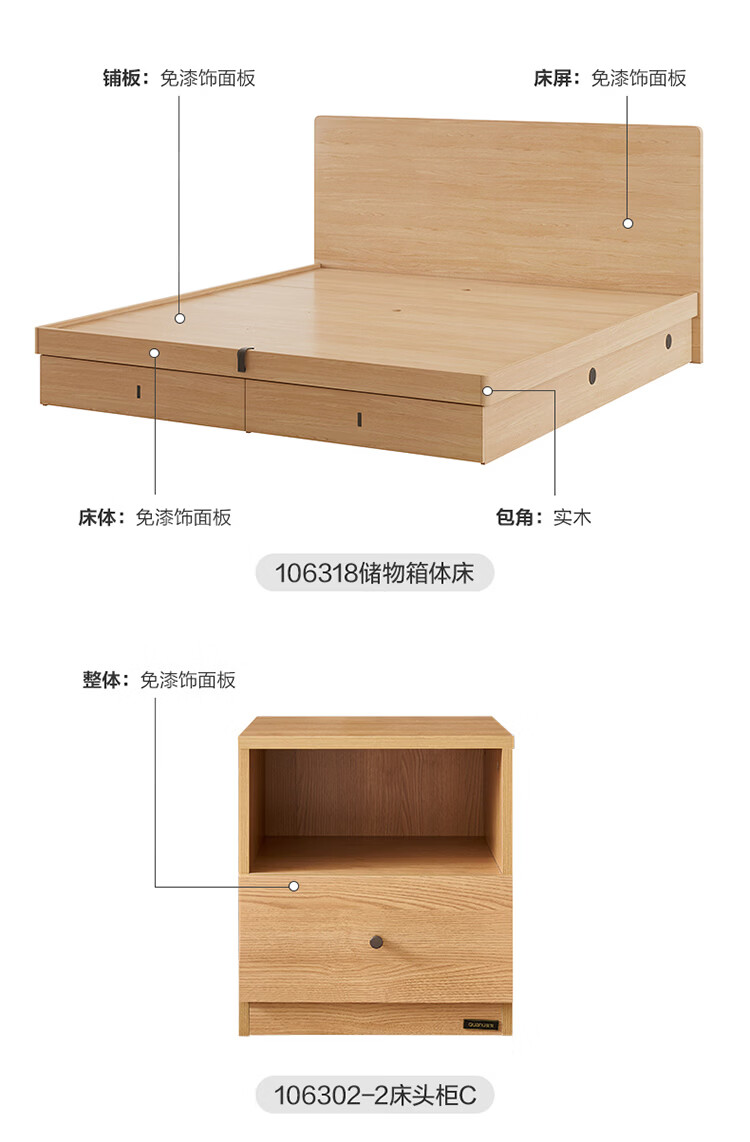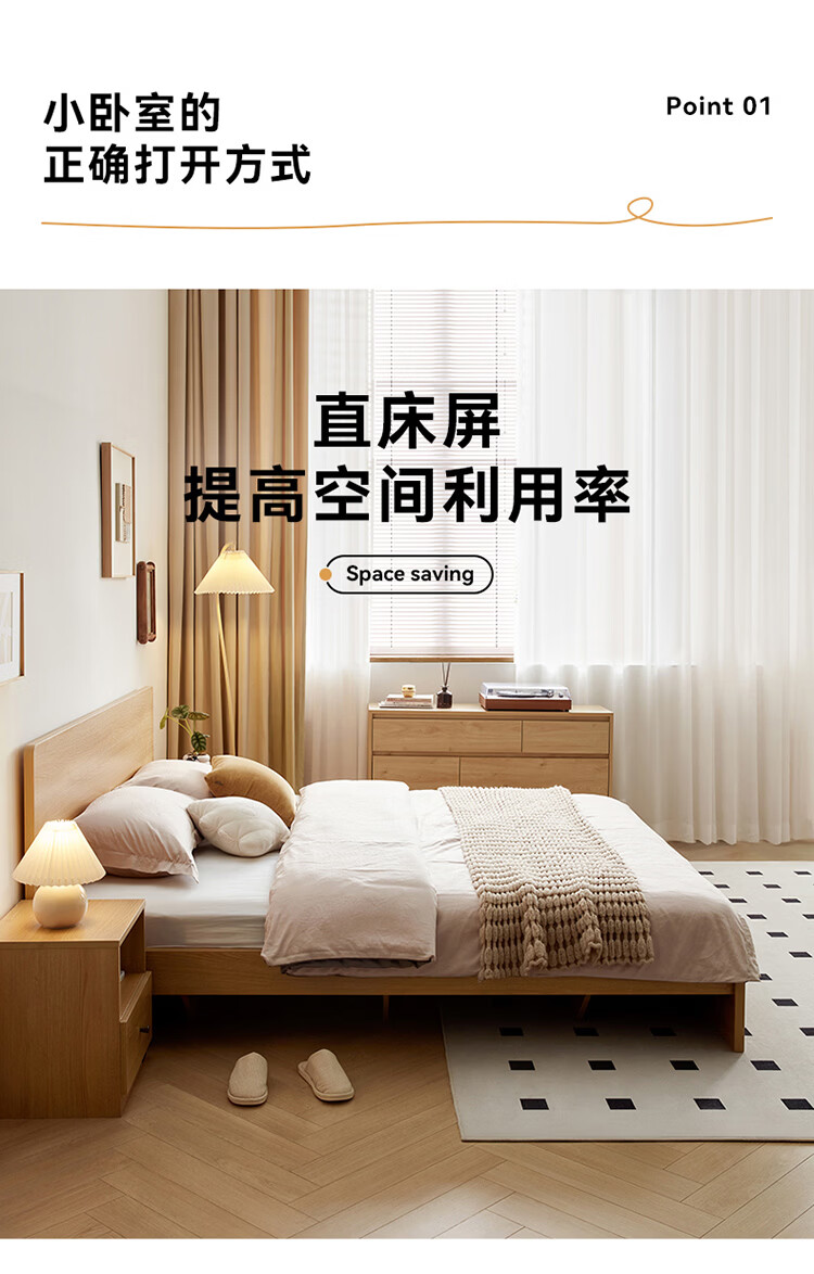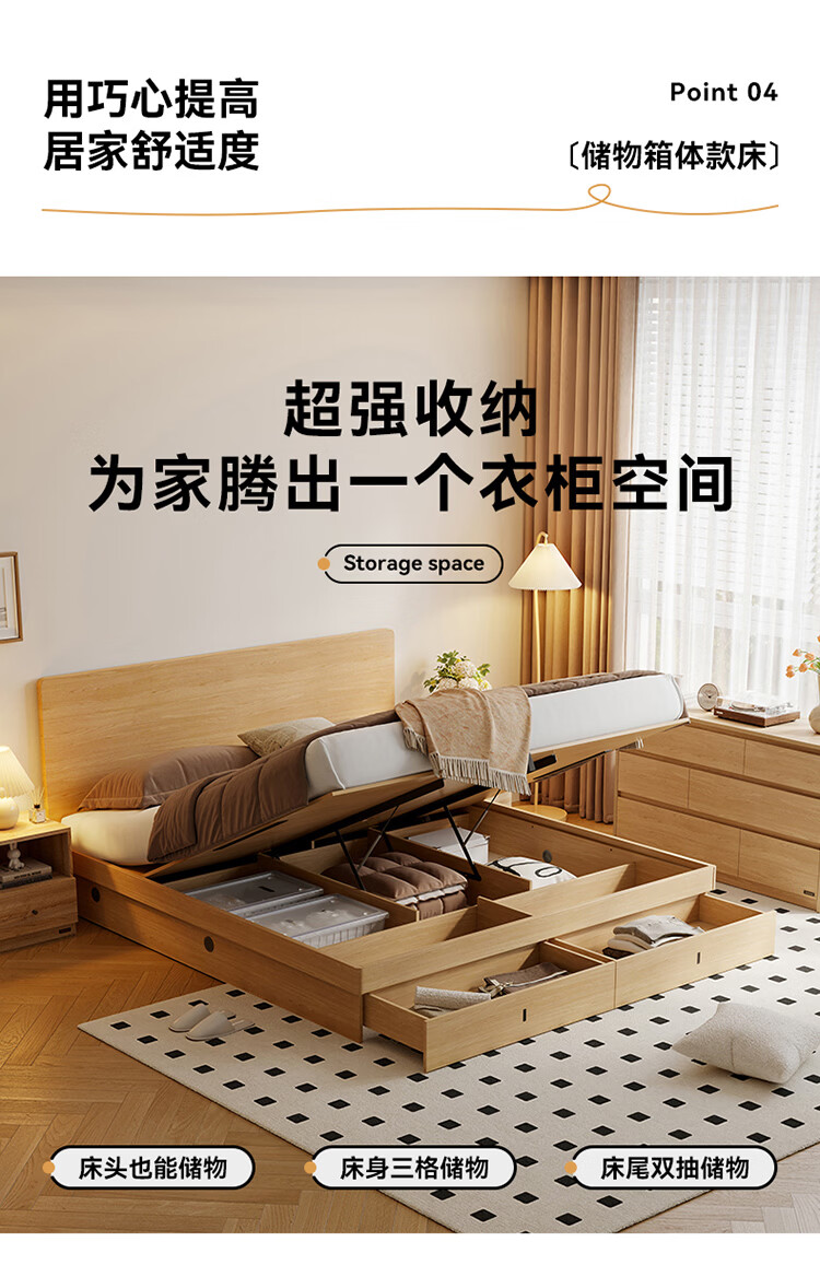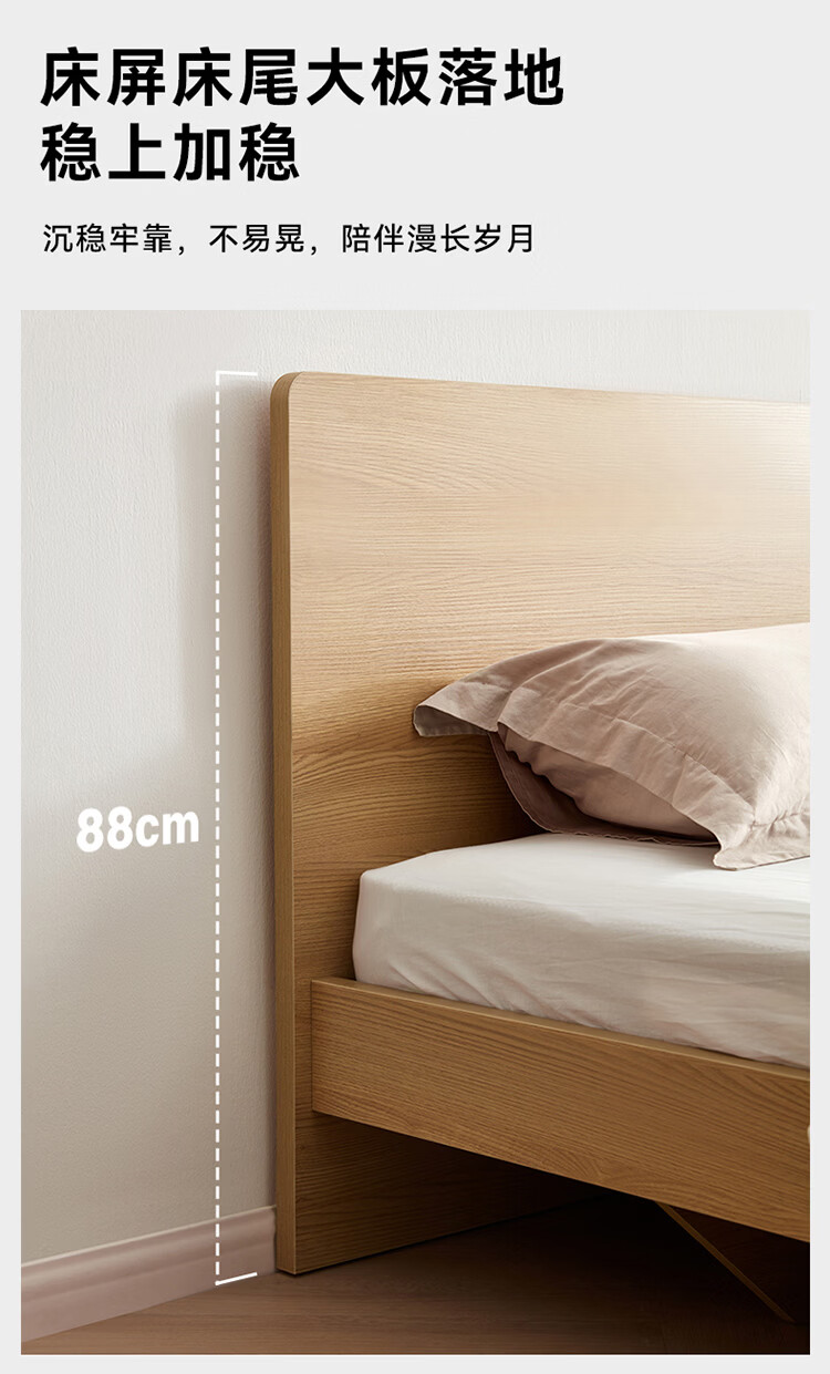 全友家居 床1.5米x2米主卧室双人大床北欧原木极简风出租屋硬板式床