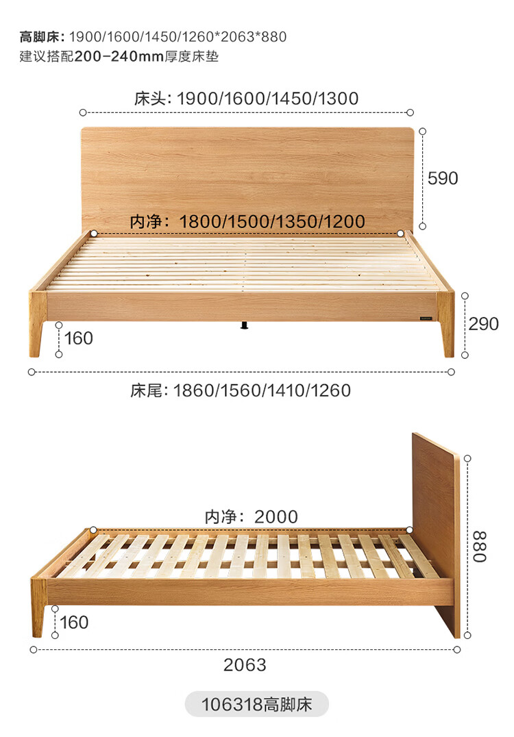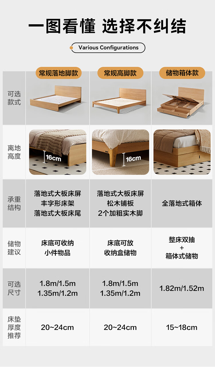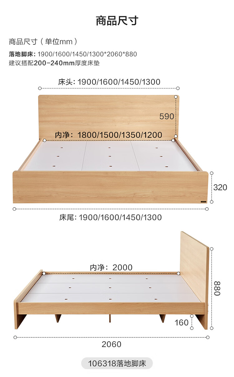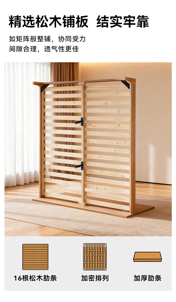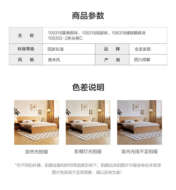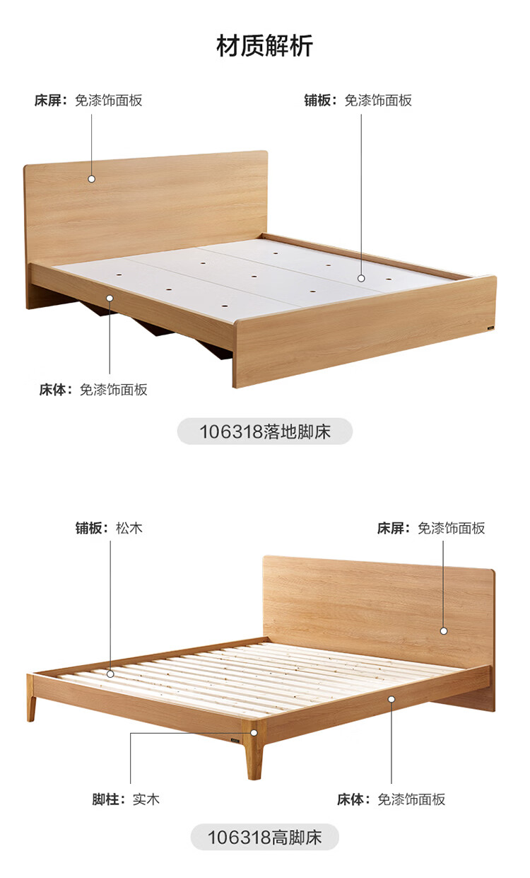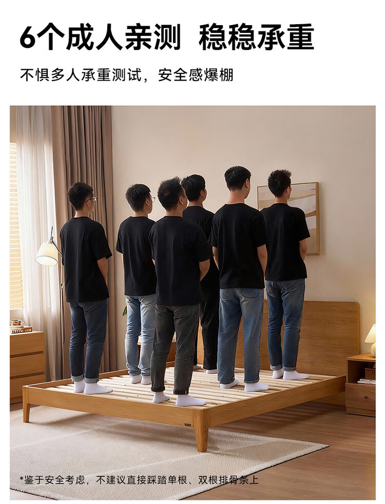 全友家居 床1.5米x2米主卧室双人大床北欧原木极简风出租屋硬板式床