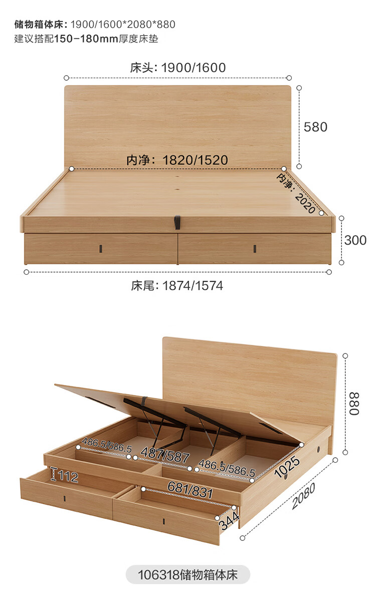 喜临门真皮双人床主卧室家具奶油简约储物悬浮婚床仙女床[床架] 储物|流光白-单床+灯带 1.8*2米