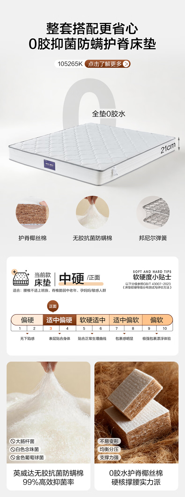 喜临门母婴适用 诺蓝国补偏硬支撑脊椎黄麻 A类亲肤面料 双核抗菌防螨床 诺蓝10H【0胶升级/ A类面料可拆晒】-厚10cm 1.8*2米