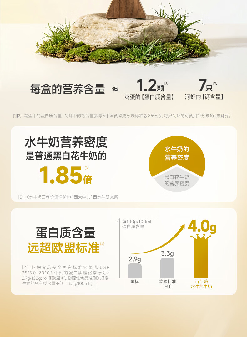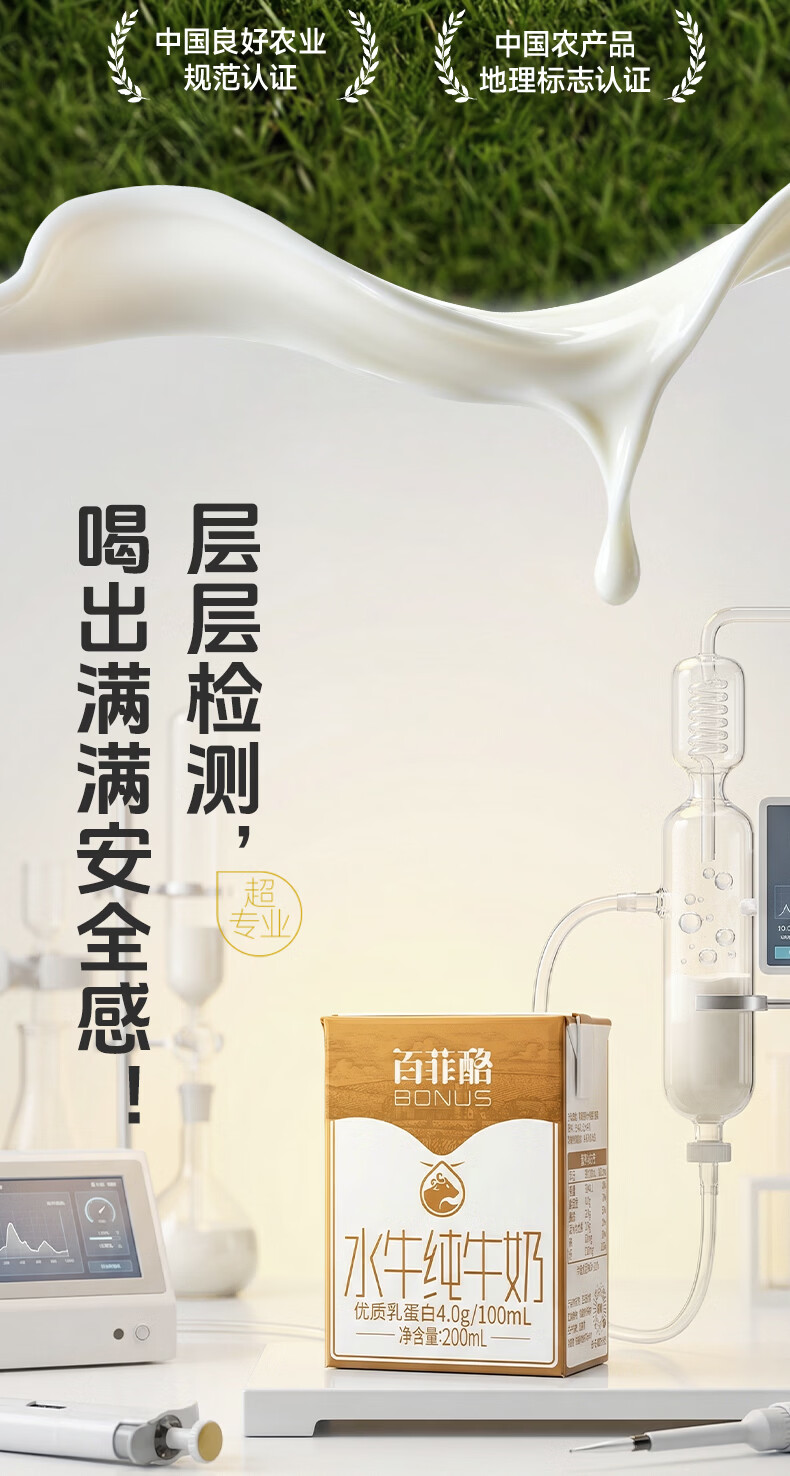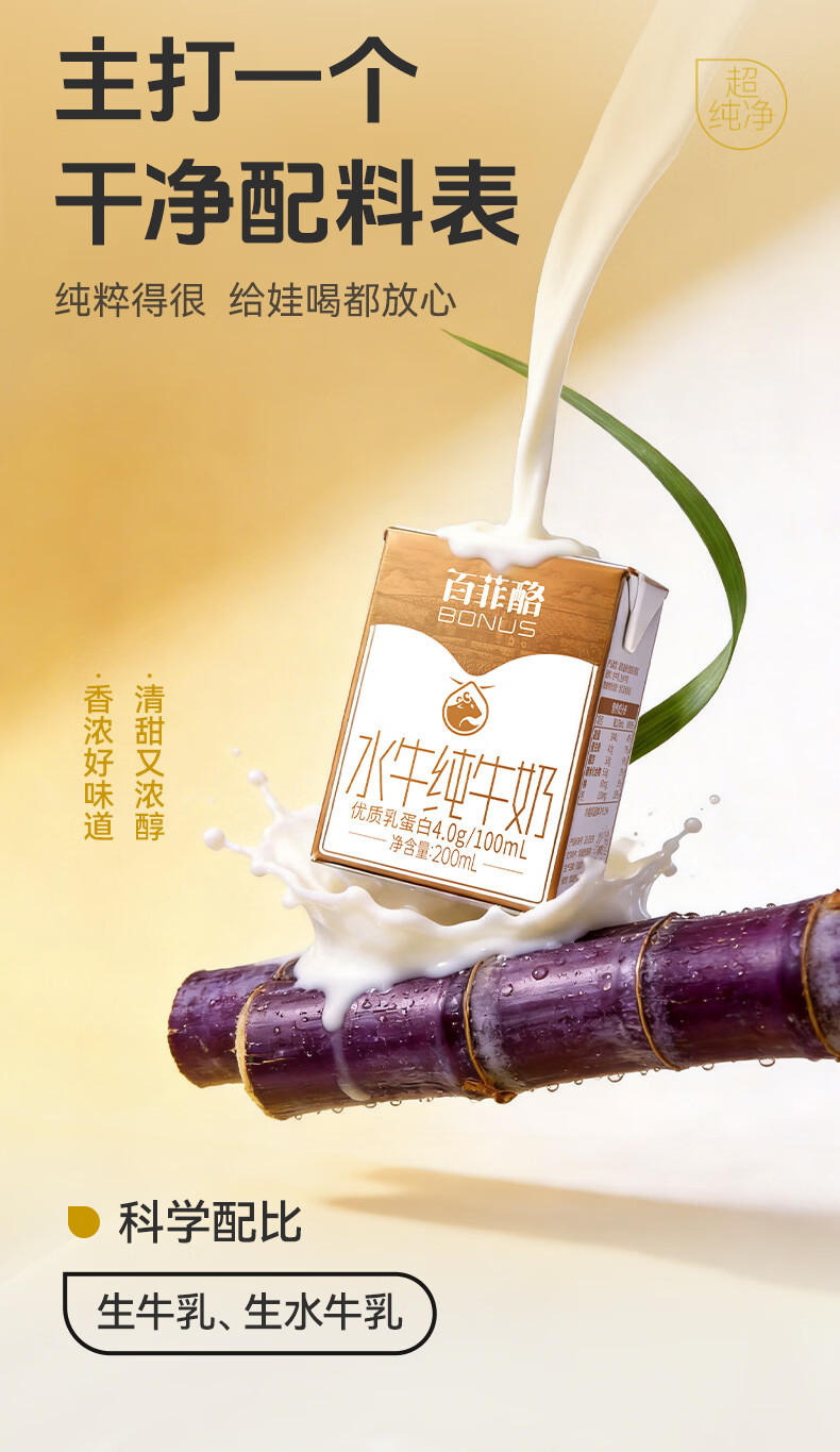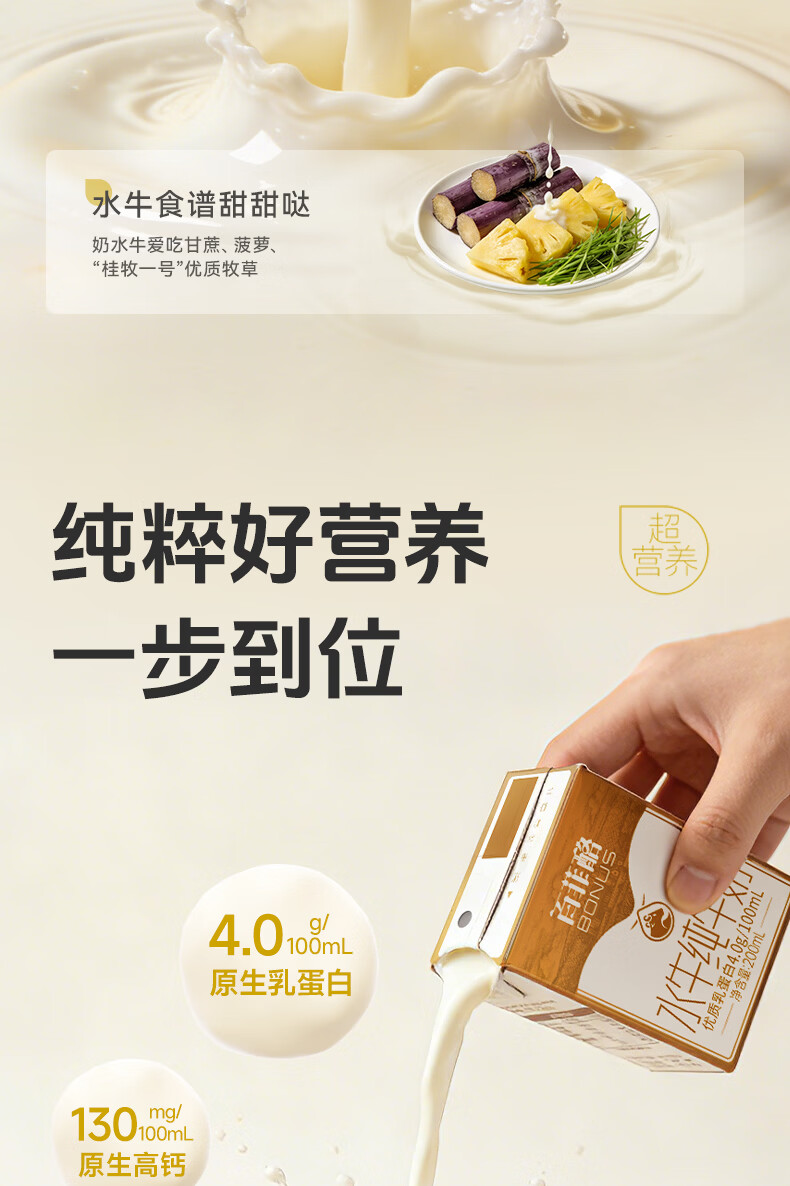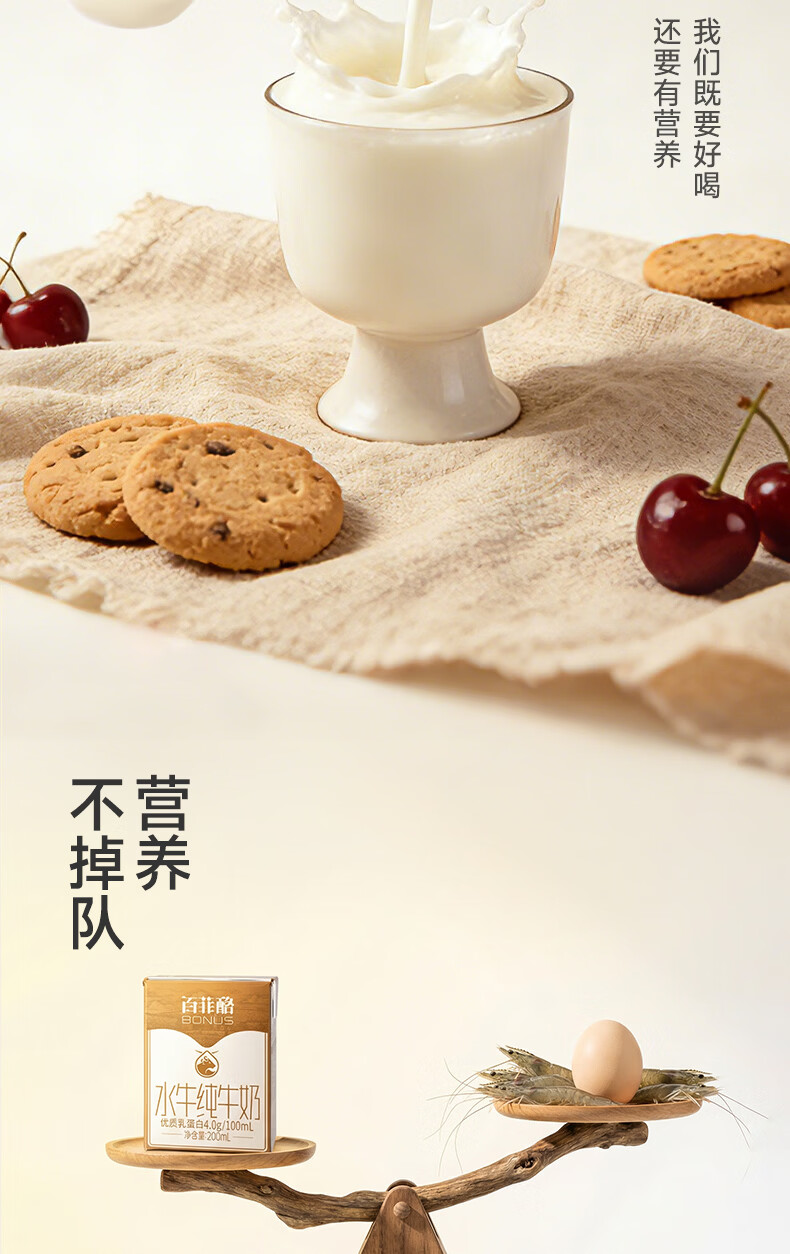 百菲酪原生高钙水牛纯牛奶4.0g乳蛋白200ml*12盒生水牛乳 送礼礼盒装