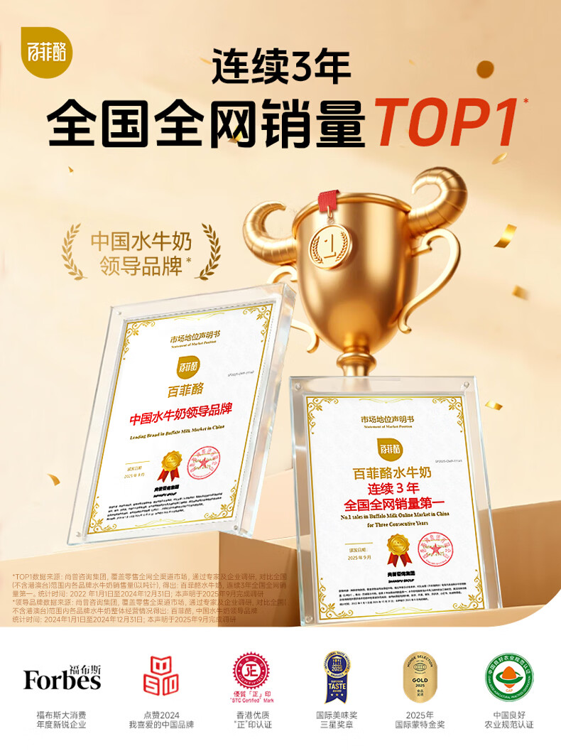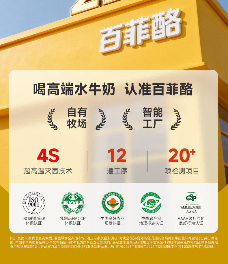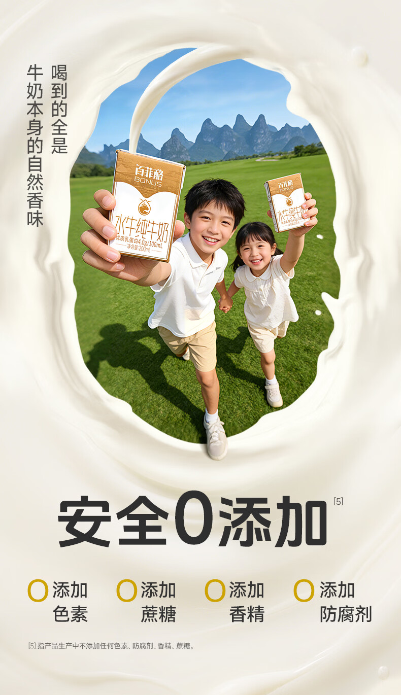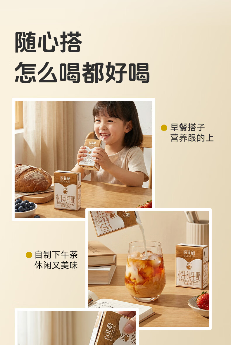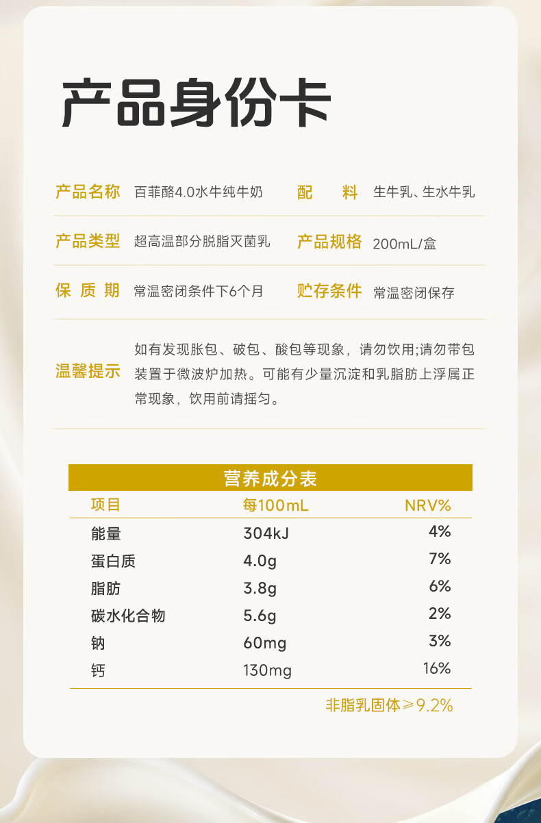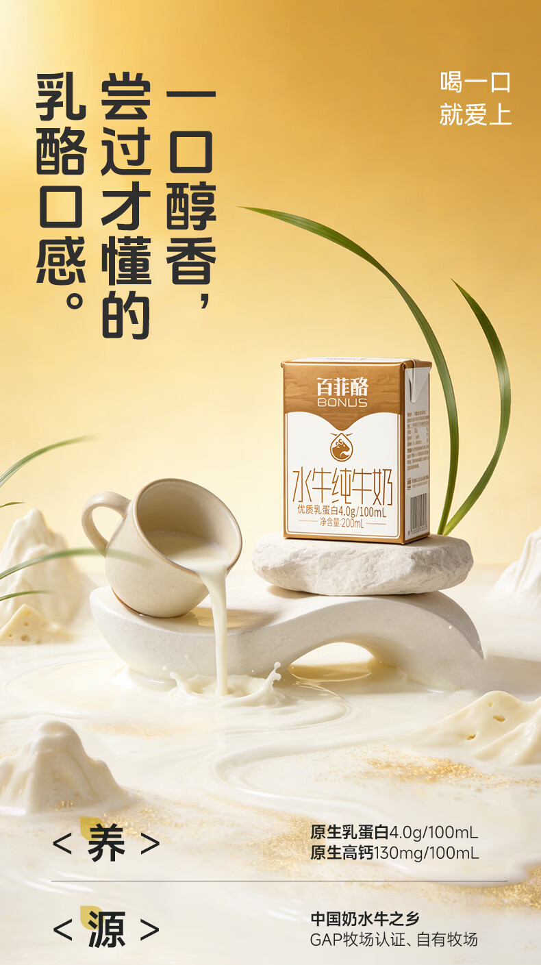 百菲酪原生高钙水牛纯牛奶4.0g乳蛋白200ml*12盒生水牛乳 送礼礼盒装