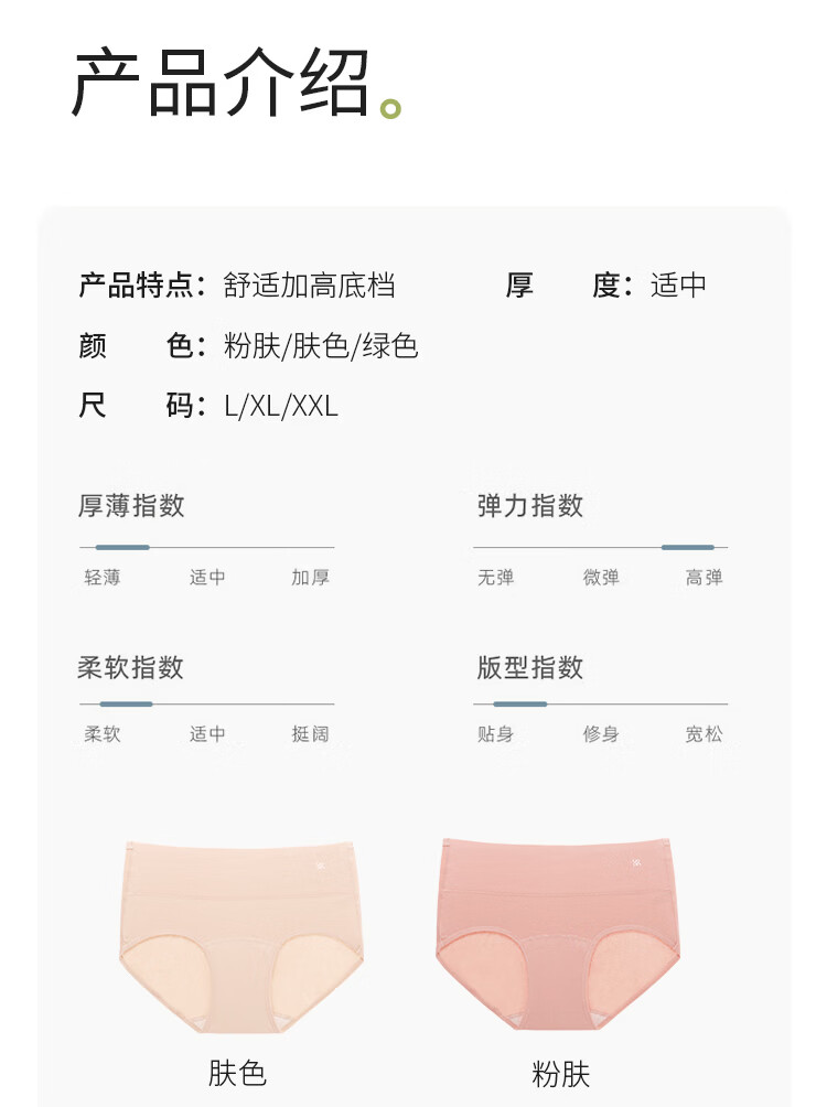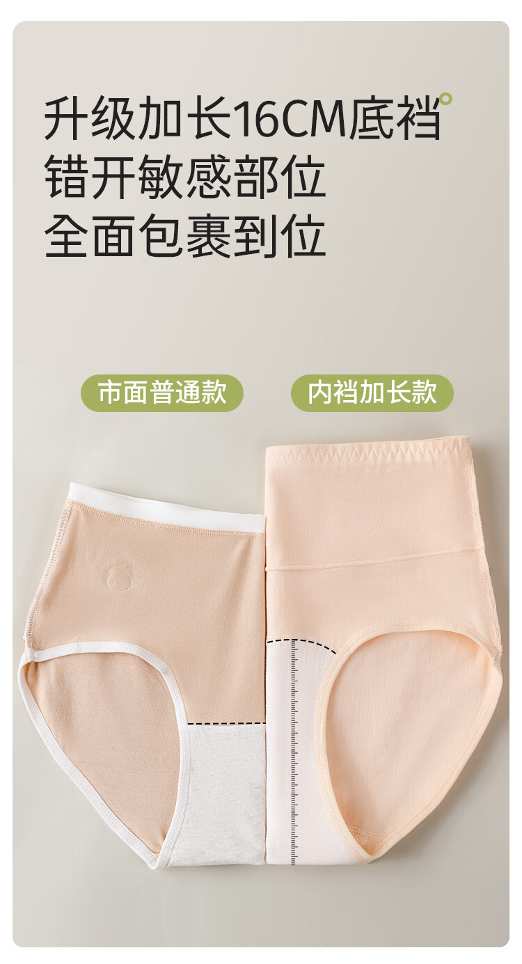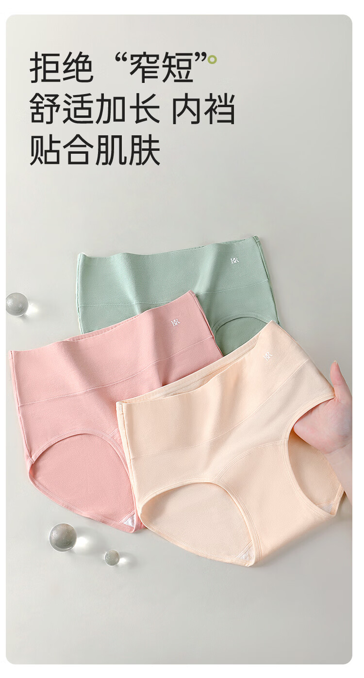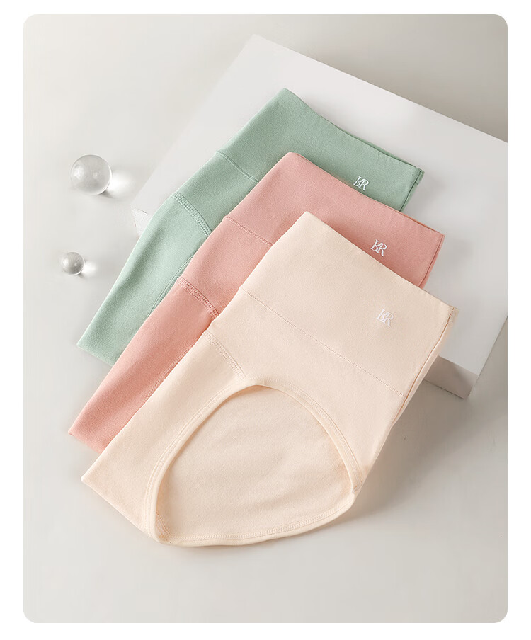 润微【100%纯棉加长裆】3条无痕高腰收腹提臀透气女士内裤薄款 粉肤/肤色/绿色 L