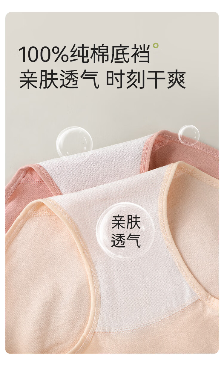 真维斯(Jeanswest)女士内裤女长绒棉抗菌加长裆大码宽松透气短裤女中腰三角裤 【3条】浅肤色+浅绿+米杏色 M 80-100斤