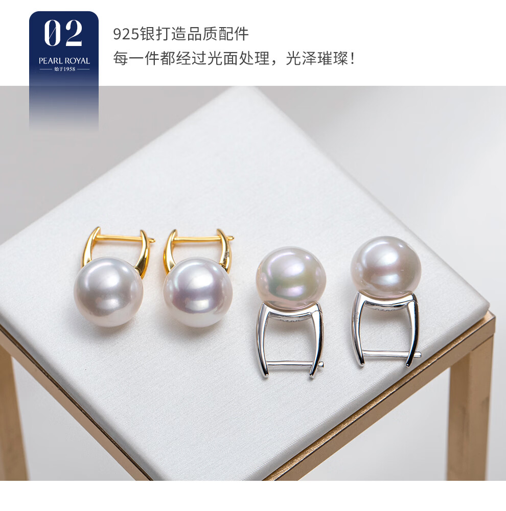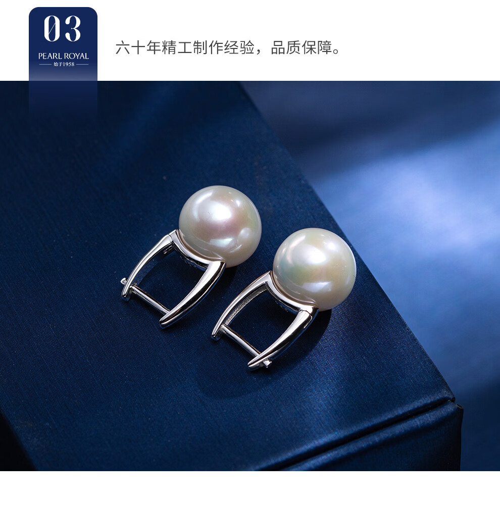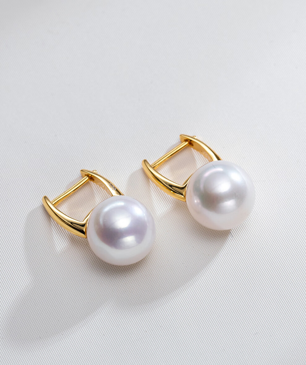 南珠宫恋光925银海水珍珠耳环南洋金珠耳钉强光近圆轻奢生日礼物送女友 10.0-11.0mm 925银海水珍珠耳环