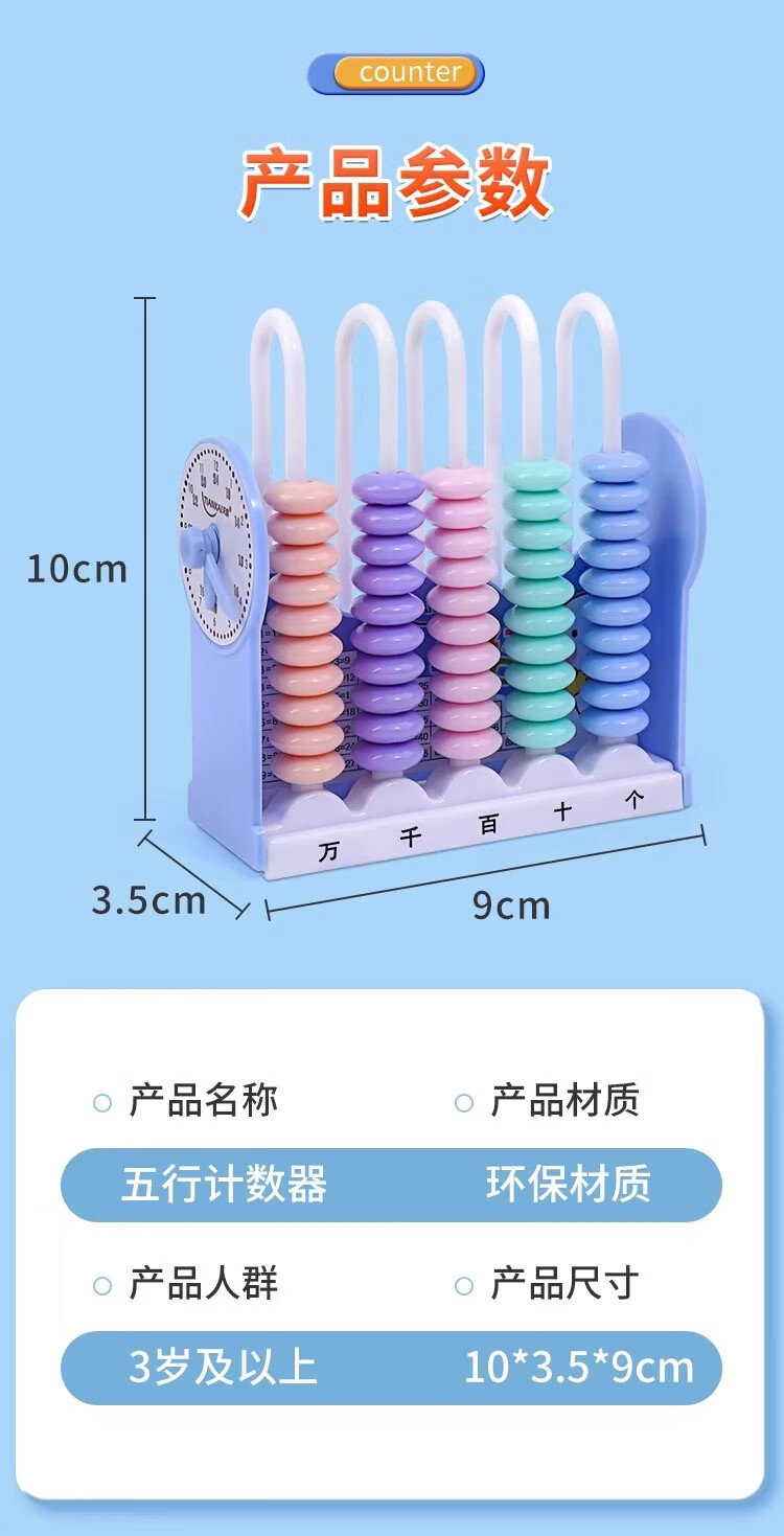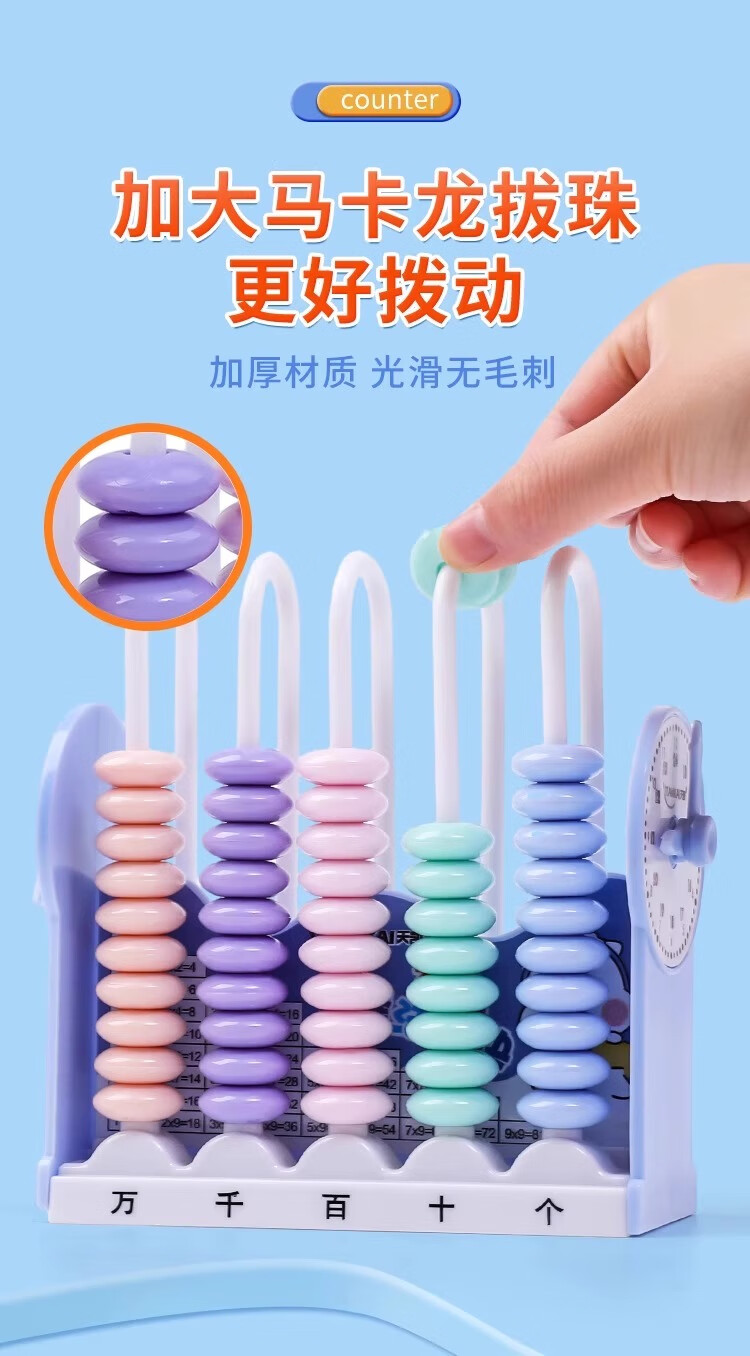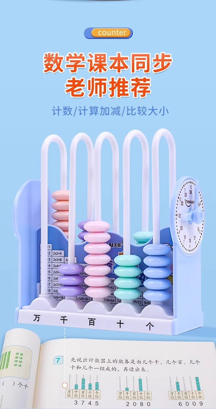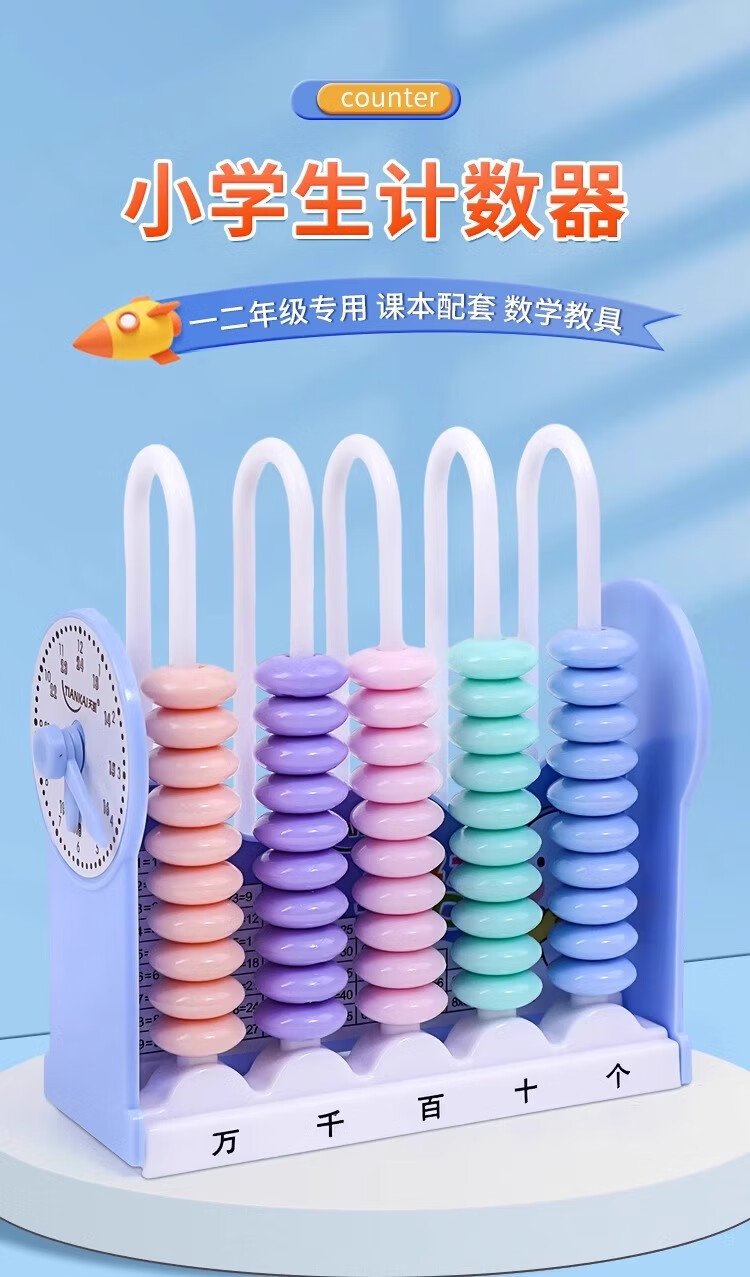 离草开学必备时钟教具计数器小学生上数学儿童五档五行儿童计算架加减法教具学生用品教学专用 5行蓝色