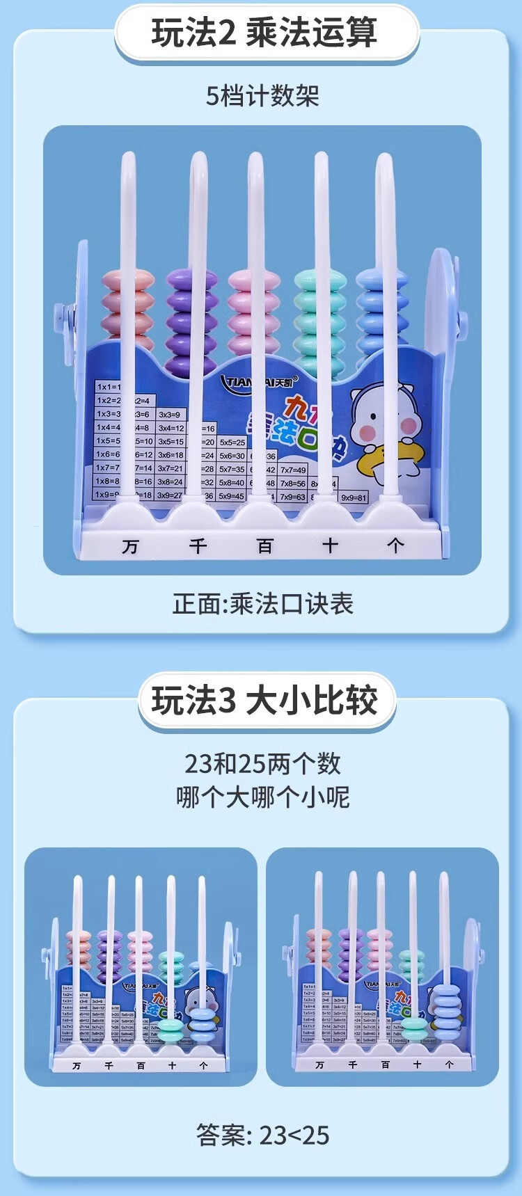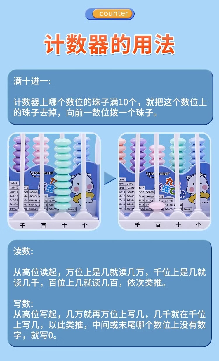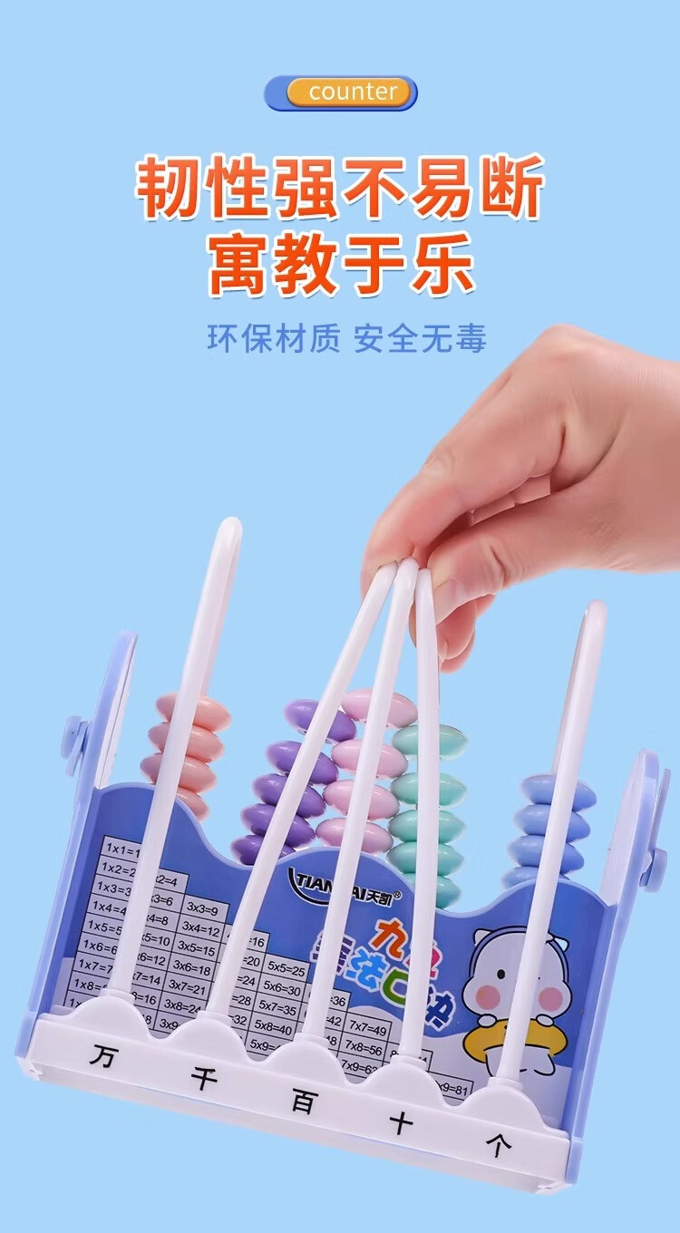 离草开学必备时钟教具计数器小学生上数学儿童五档五行儿童计算架加减法教具学生用品教学专用 5行蓝色