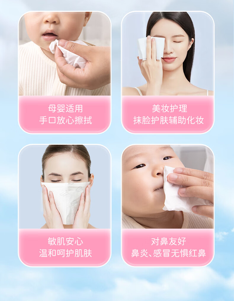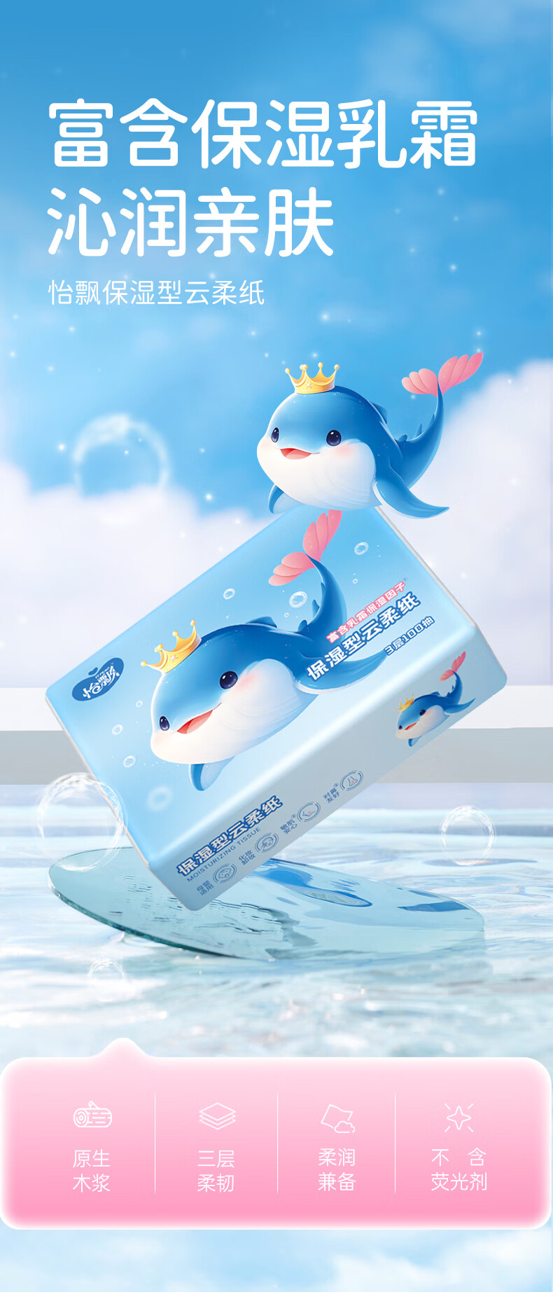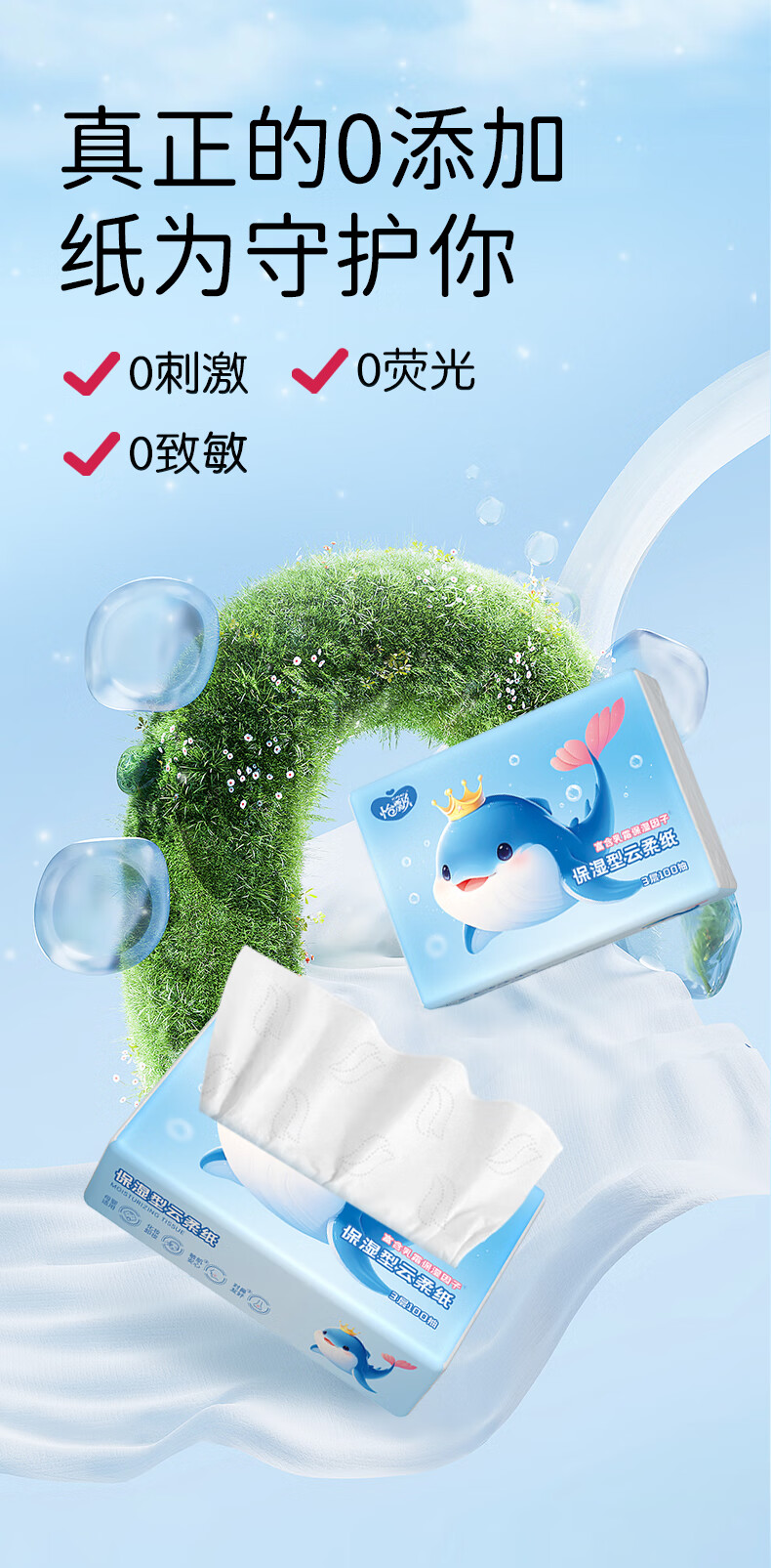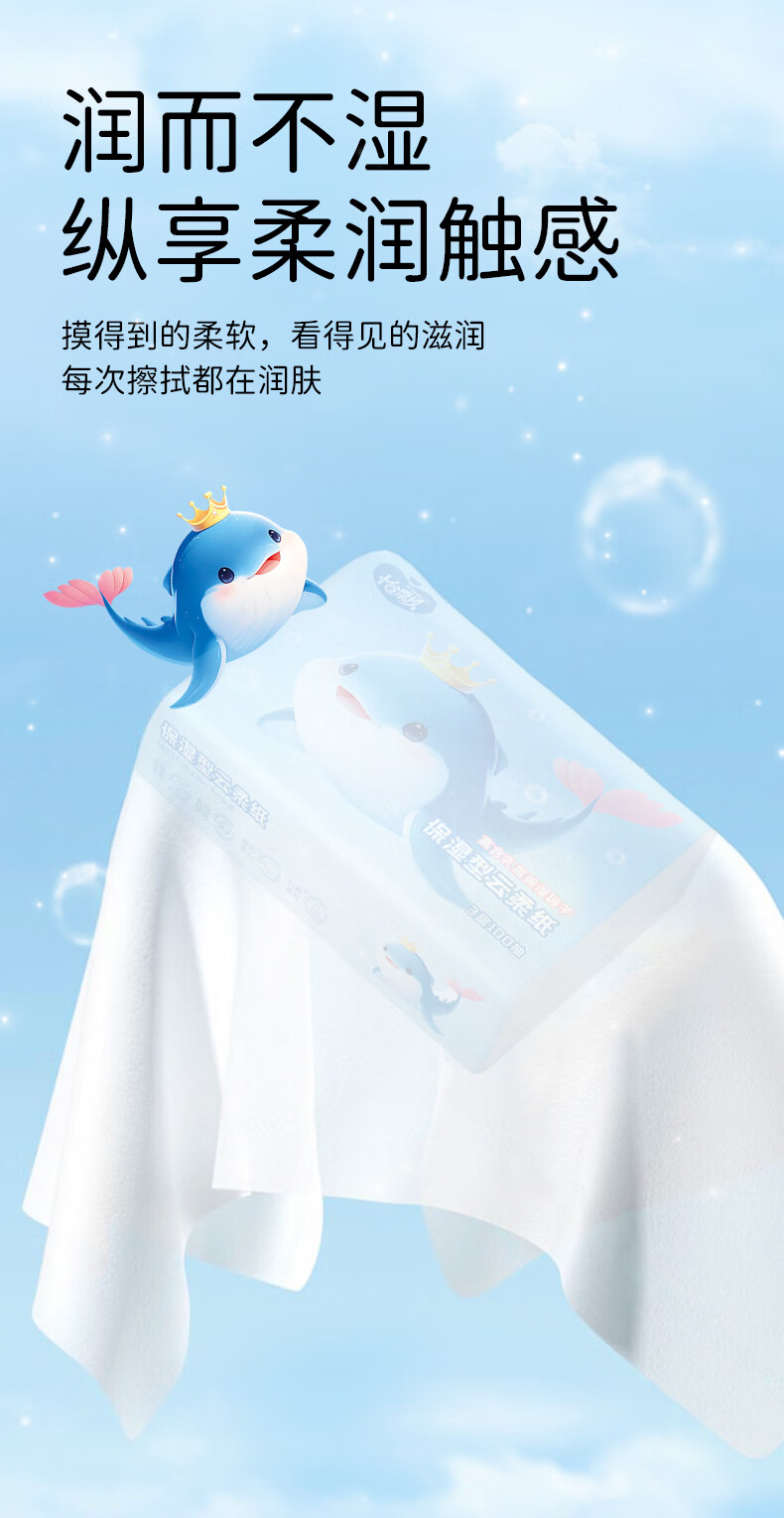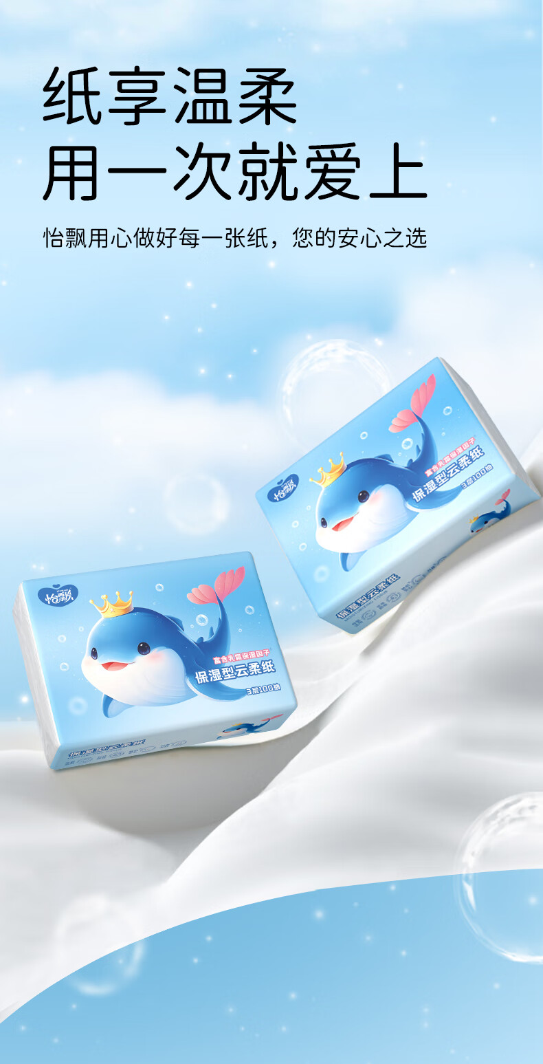 【300张/包】怡飘鲸鱼乳霜纸 3层100抽保湿抽纸宝宝鼻炎云柔巾 体验装 3层 100抽*2包