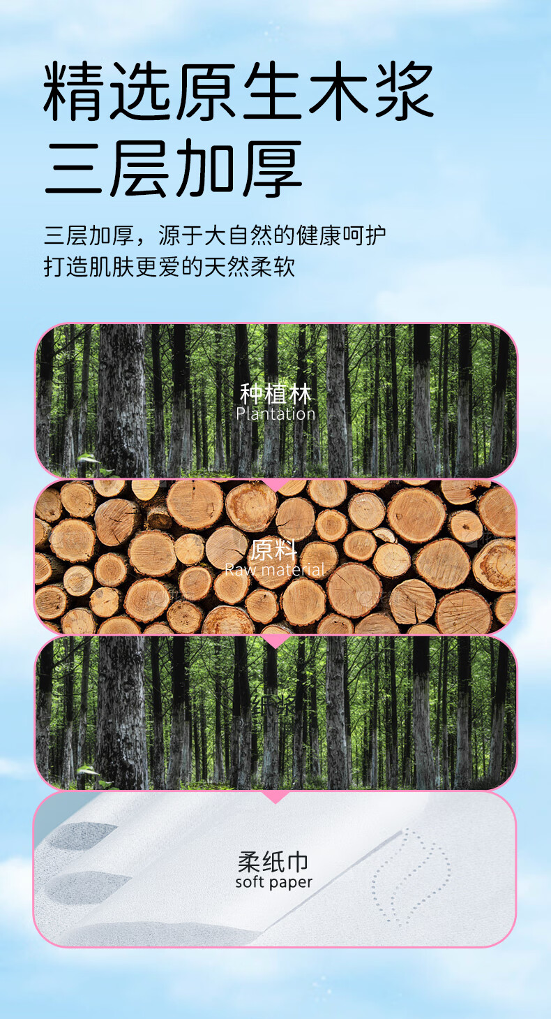 斑布有芯卷纸 4层200g*20卷 本色纸 卫生纸 卷筒纸 纸巾 卷纸 整箱