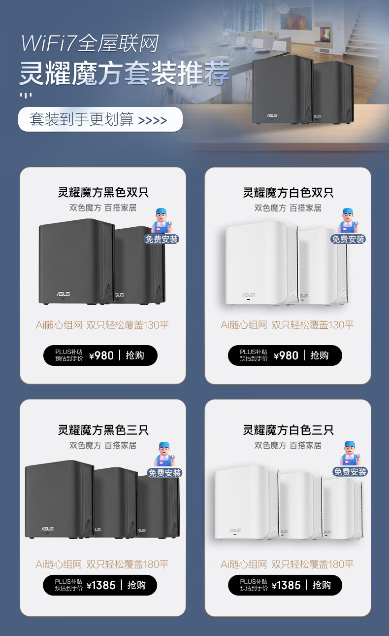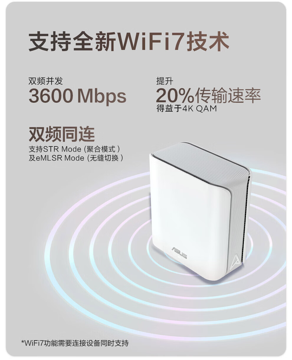 华硕(ASUS)【焕新补贴】灵耀魔方WiFi7路由器单只装家用无线千兆全屋WiFi覆盖分布式子母路由Aimesh随心组