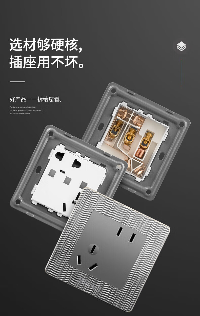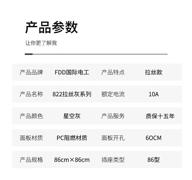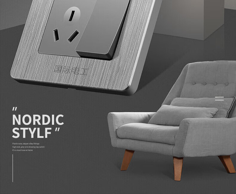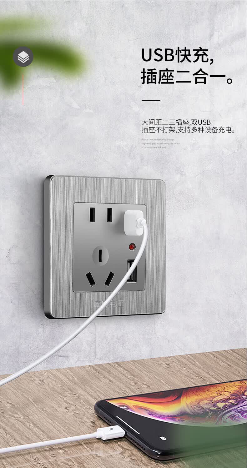 国际电工(FDD)86型暗装开关插座墙壁家用一开五孔拉丝灰色空调面板网络电源插 五孔 插座