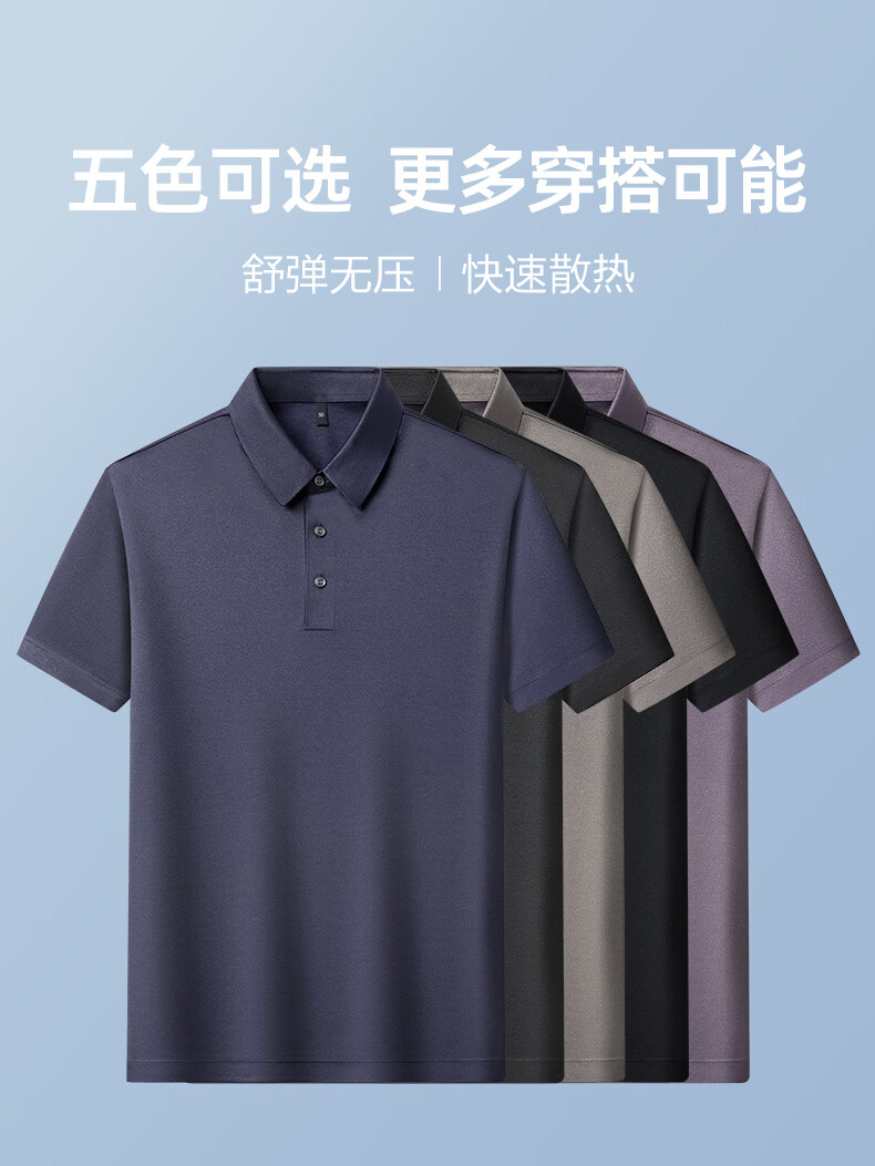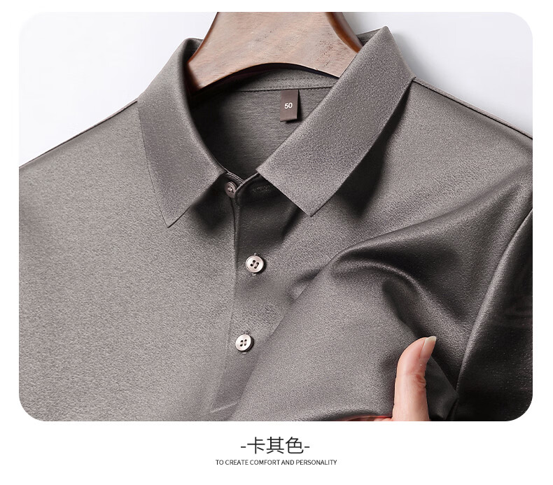 SHANSHAN杉杉【莱赛尔翻领】短袖t恤男日常通勤百搭POLO衫夏季新款 卡其色 S /165