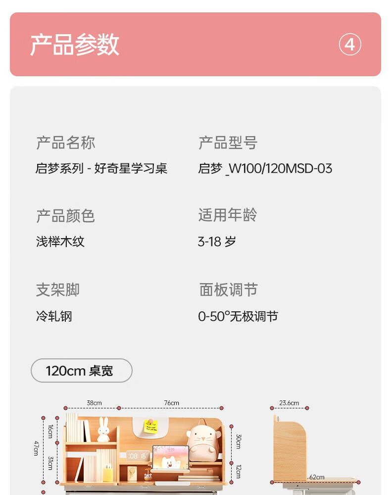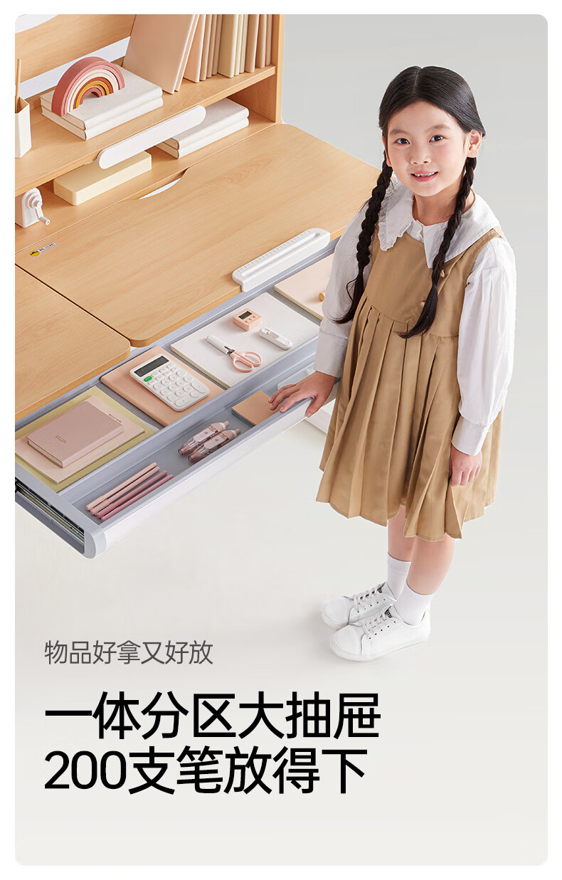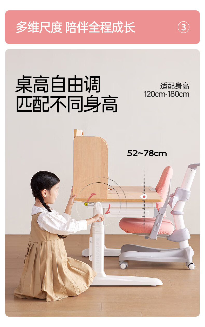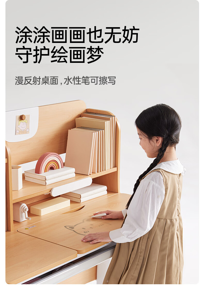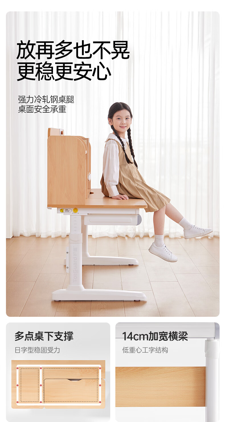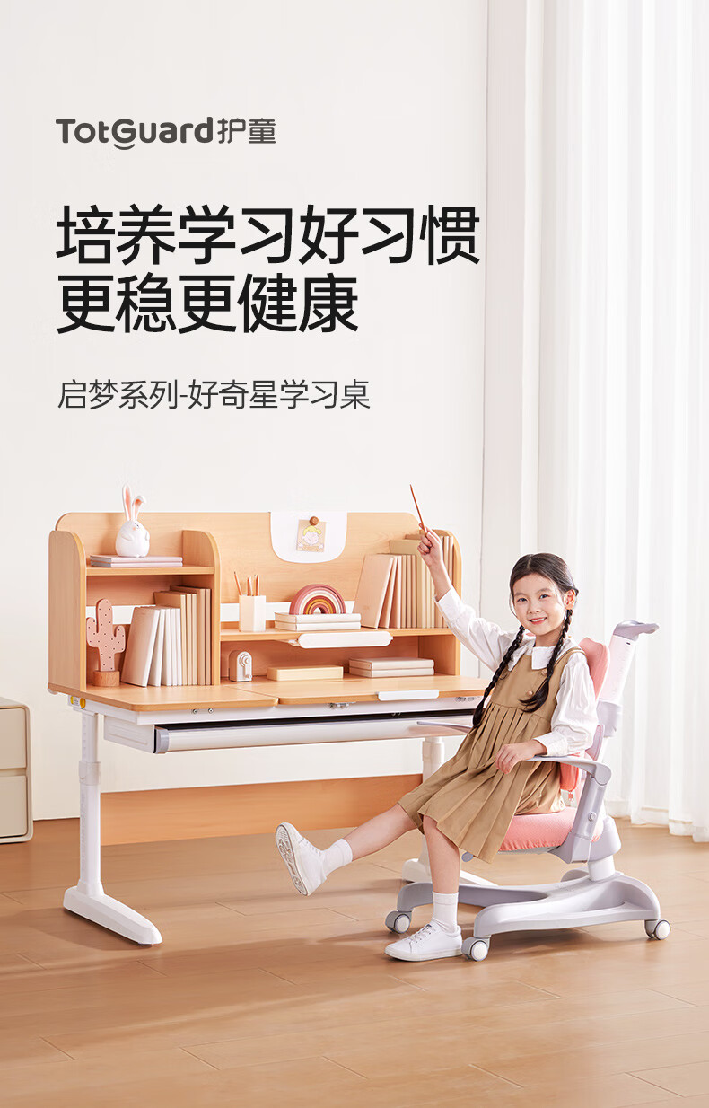 护童(Totguard)儿童学习桌书桌中小学生写字桌小户型课桌椅套装 好奇星实木芯1米(单桌)