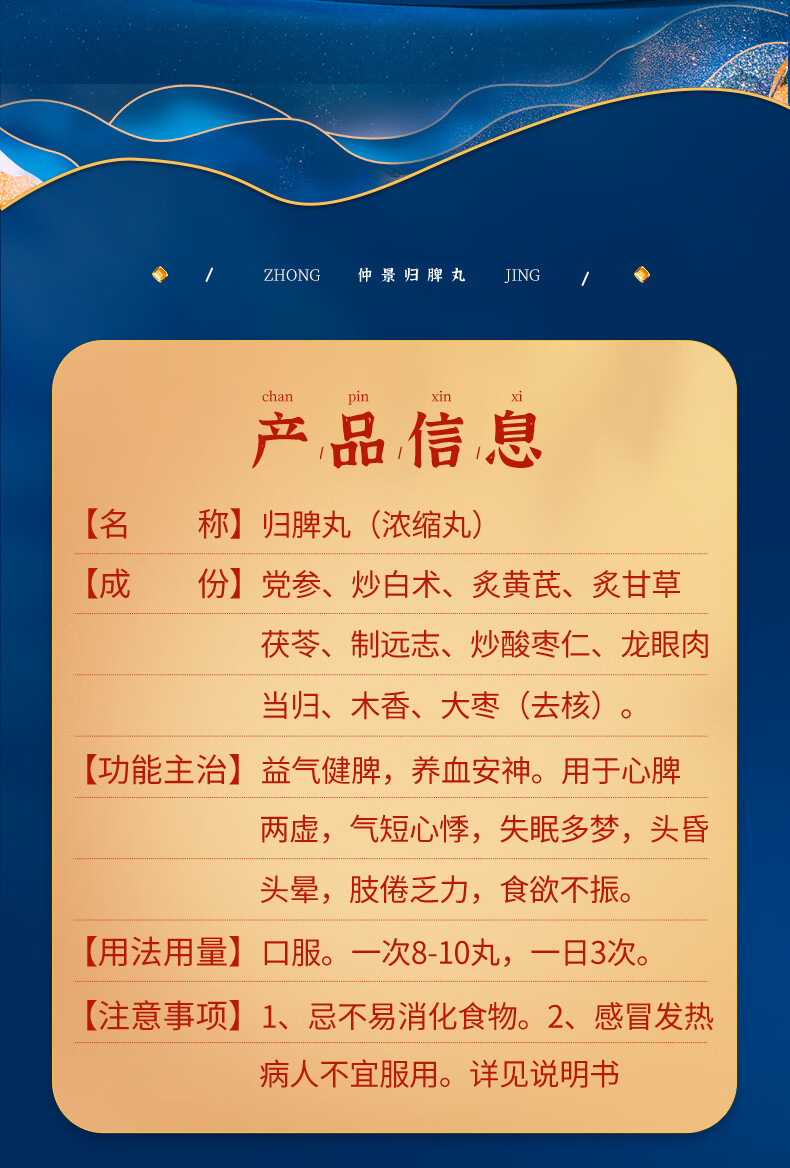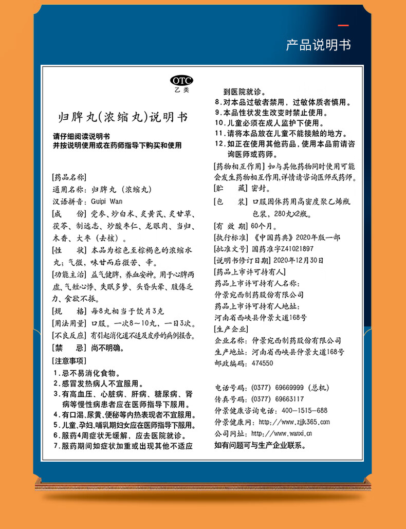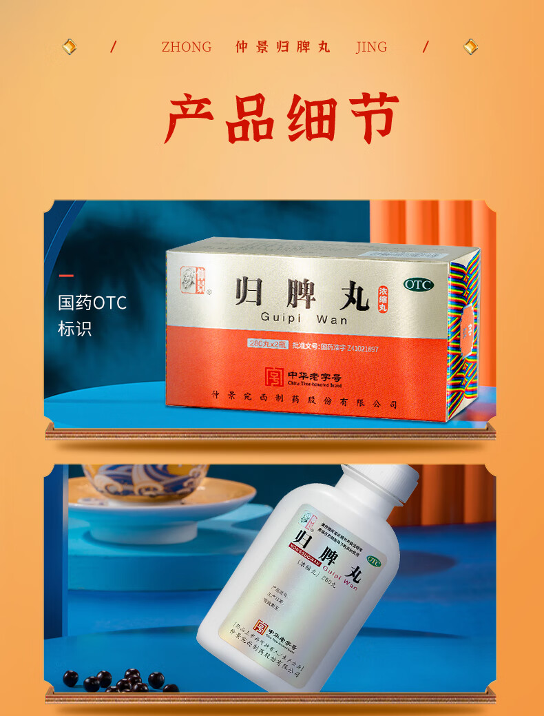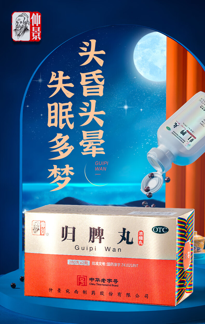 仲景 归脾丸(浓缩丸) 280丸*2瓶补气养血益气健脾安神 心脾两虚失眠多梦心悸气短头昏头晕肢倦乏力食欲不振