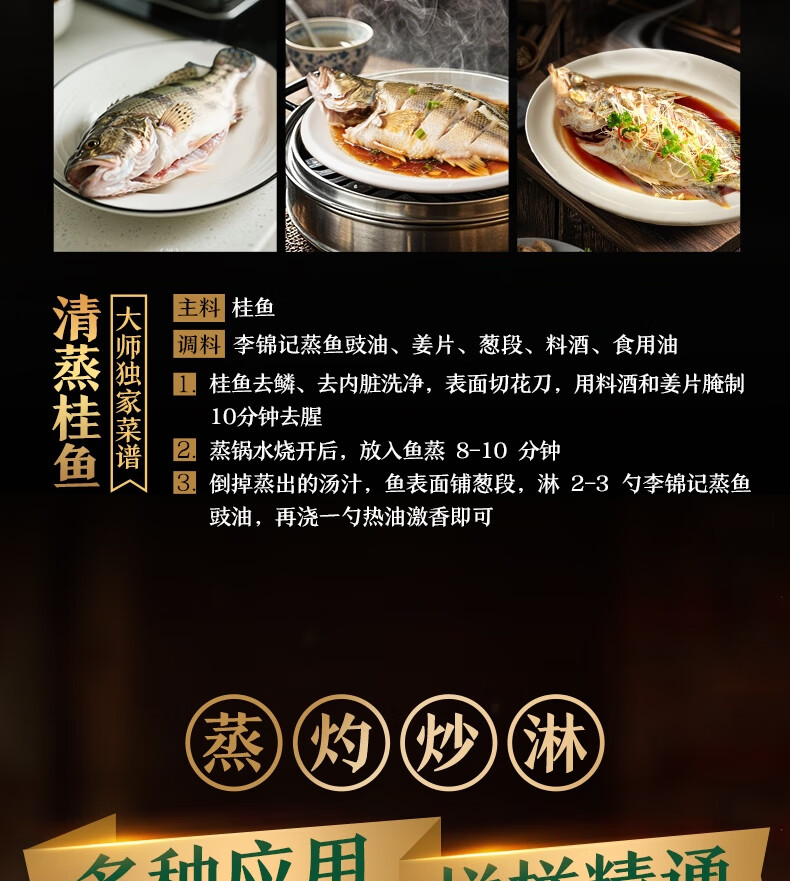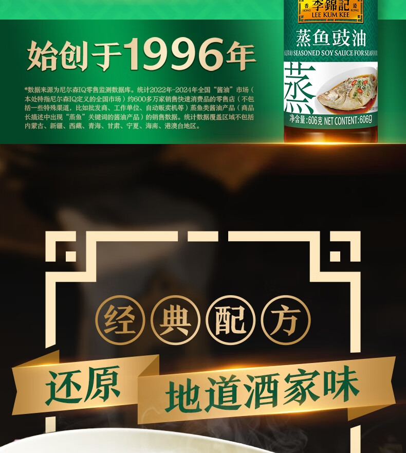 李锦记 蒸鱼豉油606g 去腥提鲜 豉香四溢 还原地道酒家味 鲜中回甘 酱油