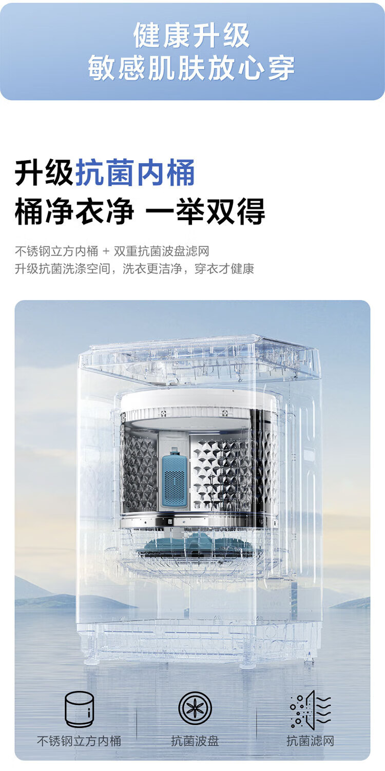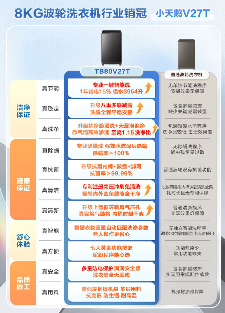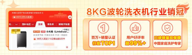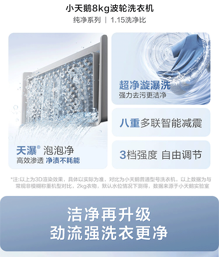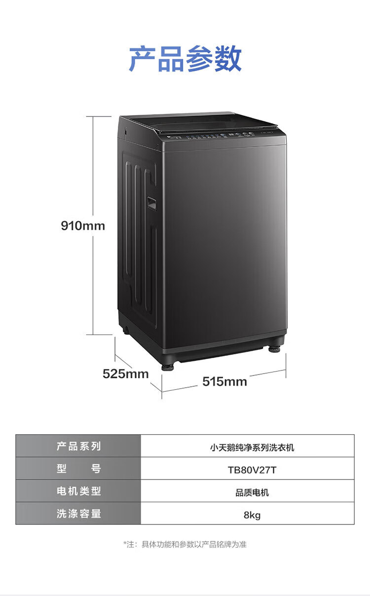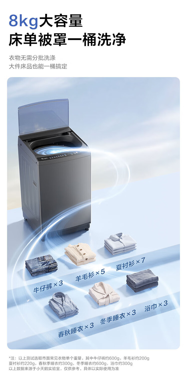 小天鹅波轮洗衣机全自动8公斤家用大容量 租房神器 一级能效 节能省水抗菌 高洗净比 TB80V27T