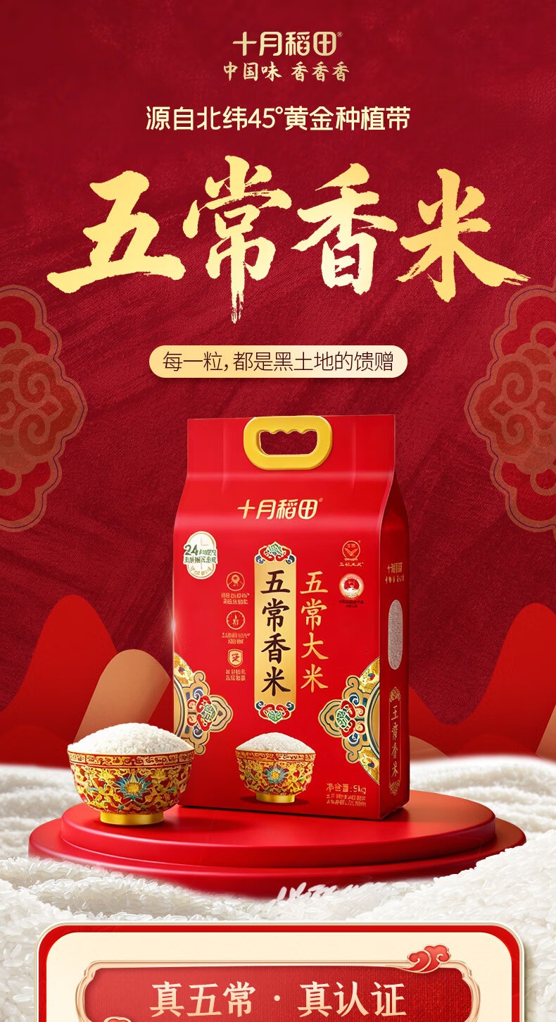 十月稻田【2025年新米】五常香米 五常大米 5kg 东北大米 香米 10斤 1袋