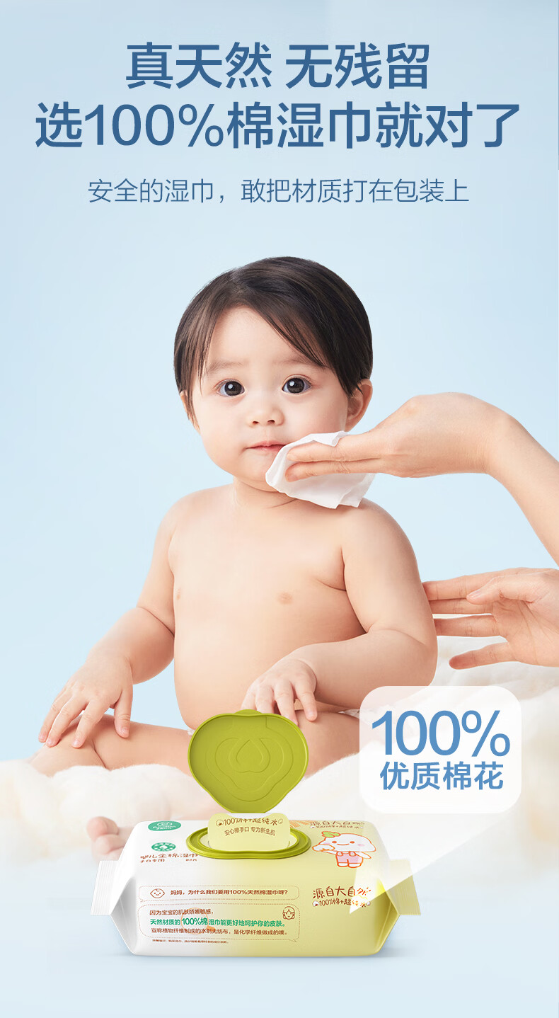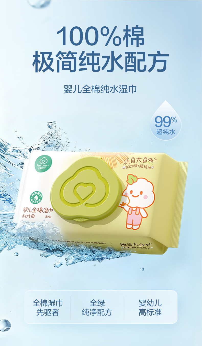 全棉时代 婴儿湿巾新生儿湿纸巾100%纯棉屁屁湿纸巾实惠装80抽*8包