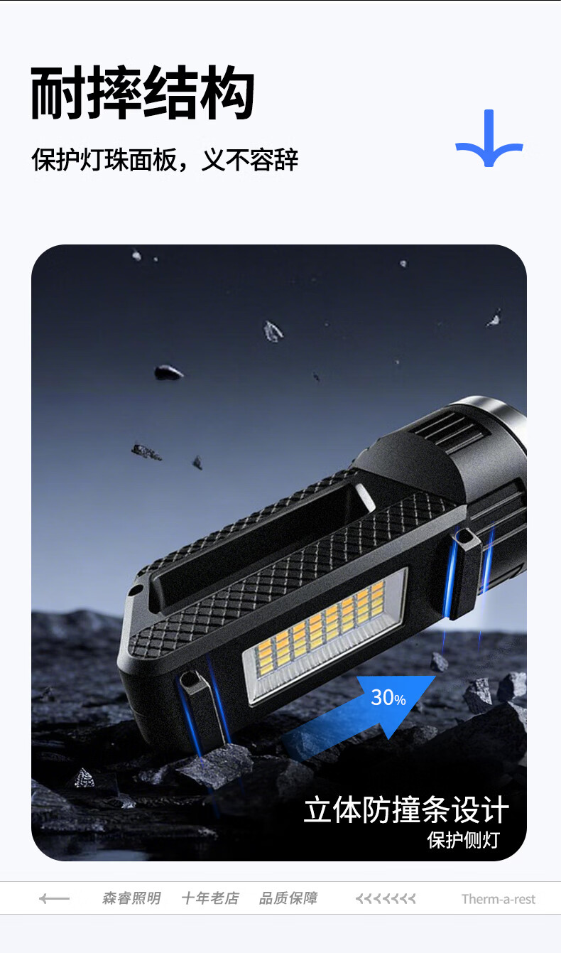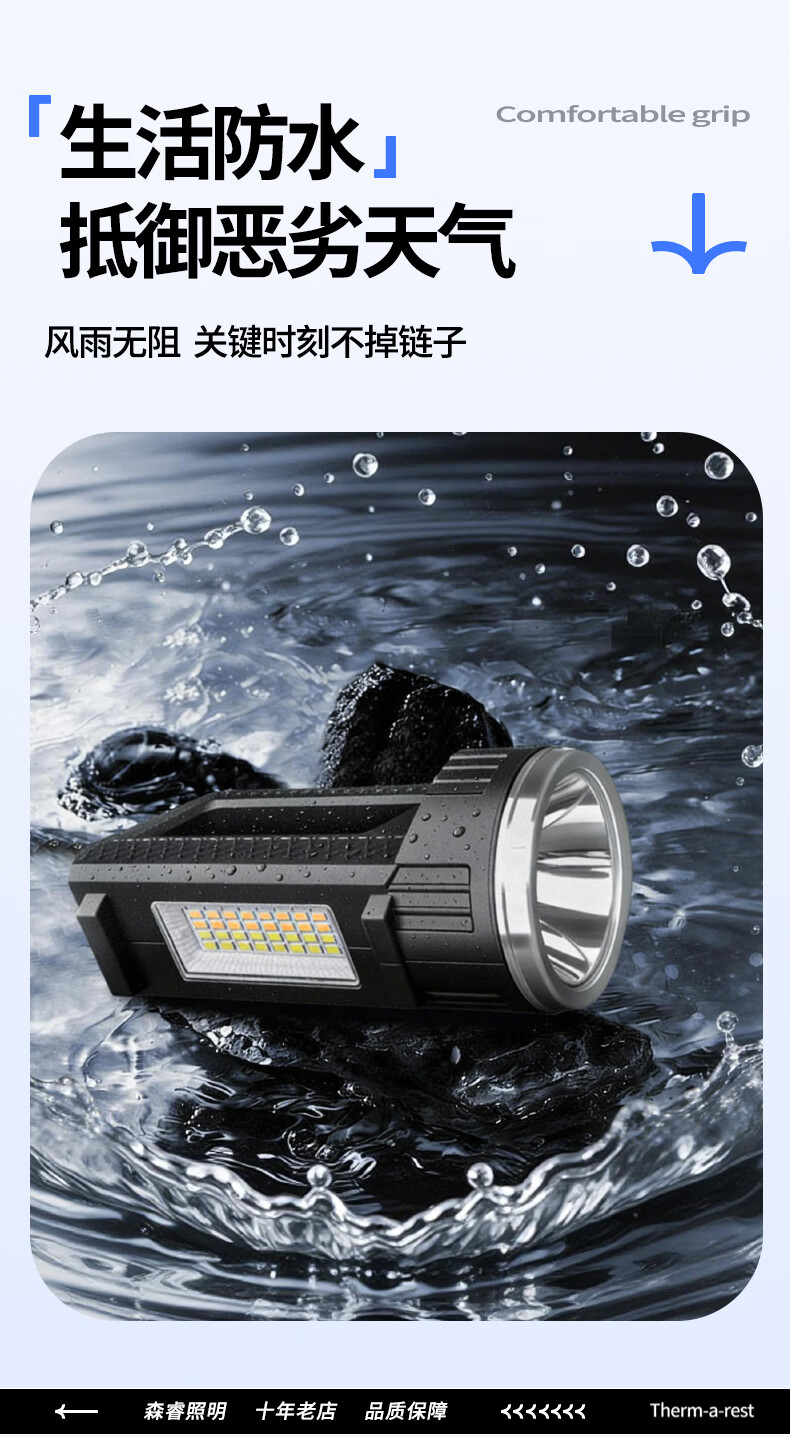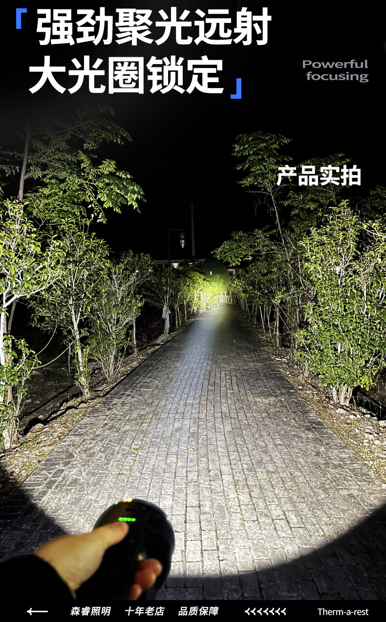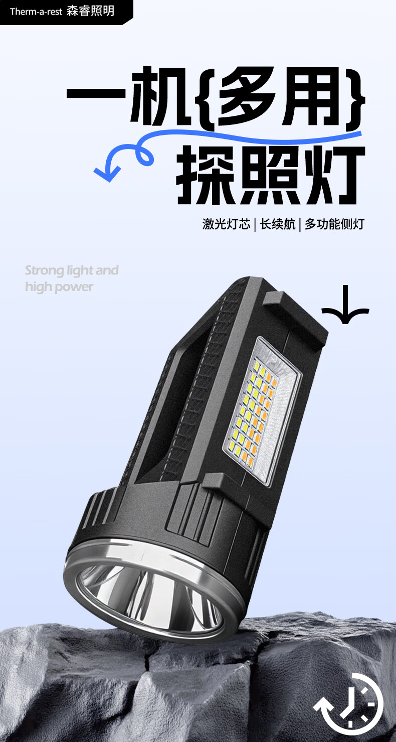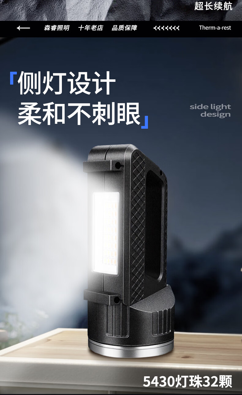 thermarest充电手电筒家用应急照明灯户外强光轻便小型登山骑行巡逻探照灯 4000毫安/侧灯/32颗大灯珠/500m