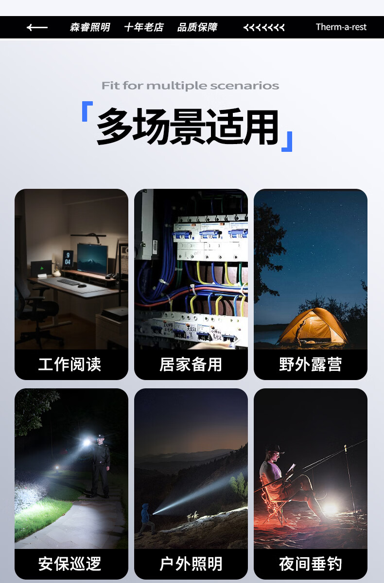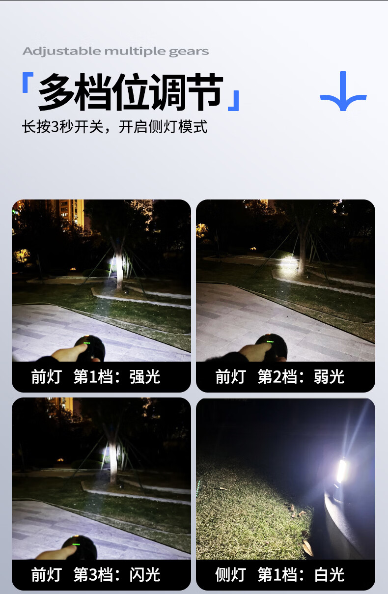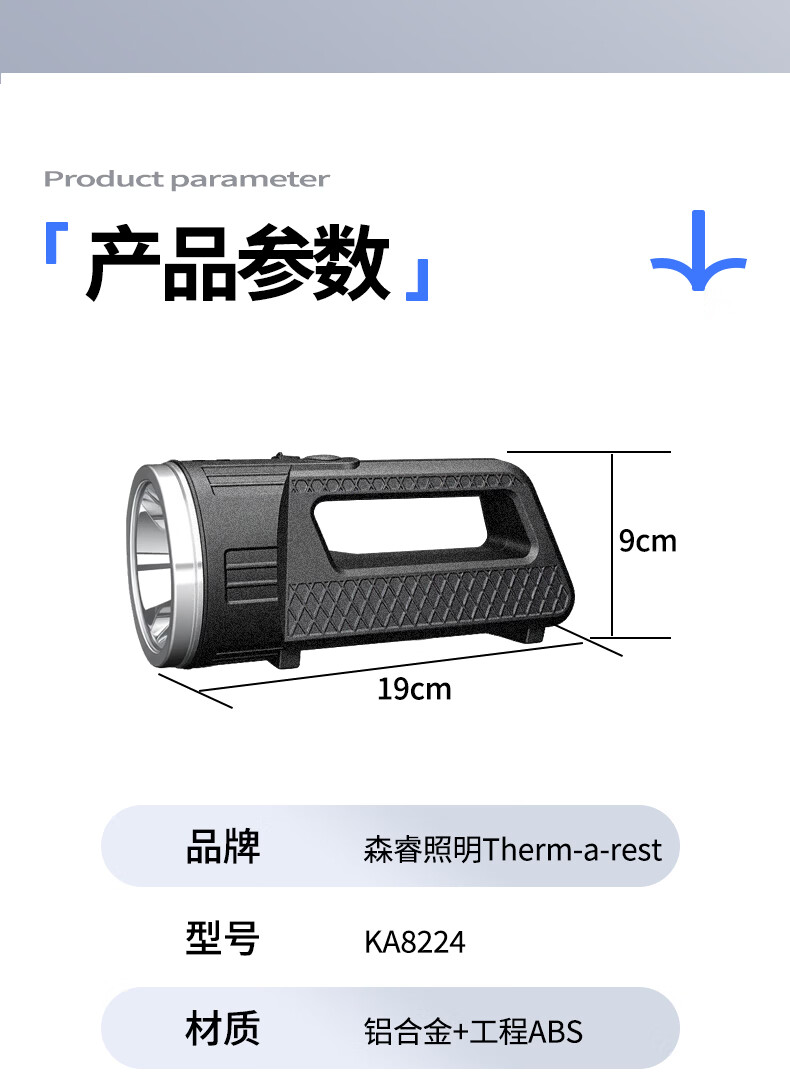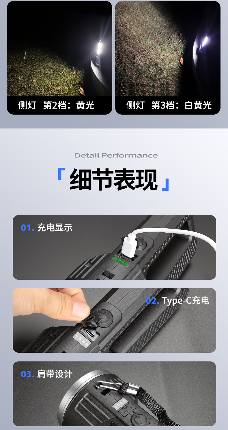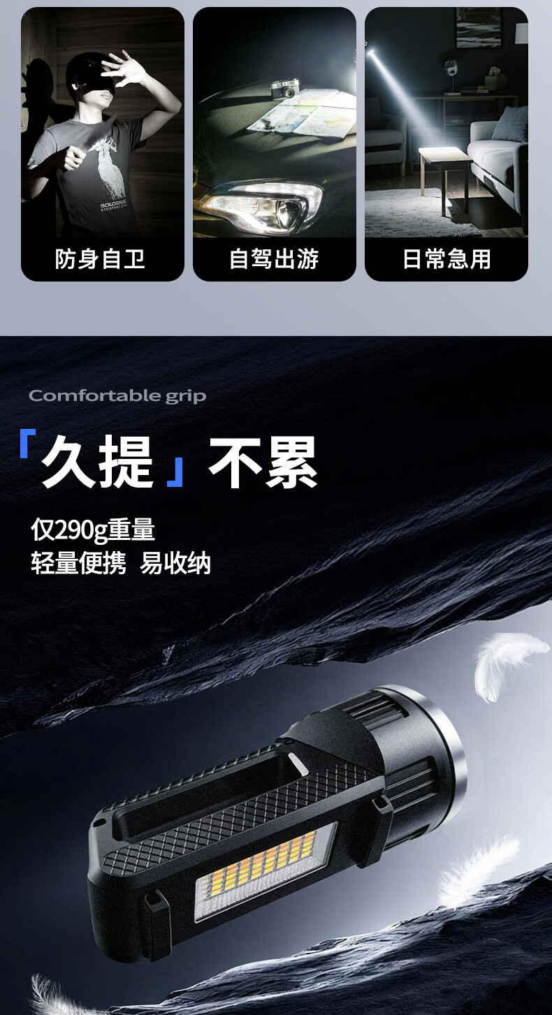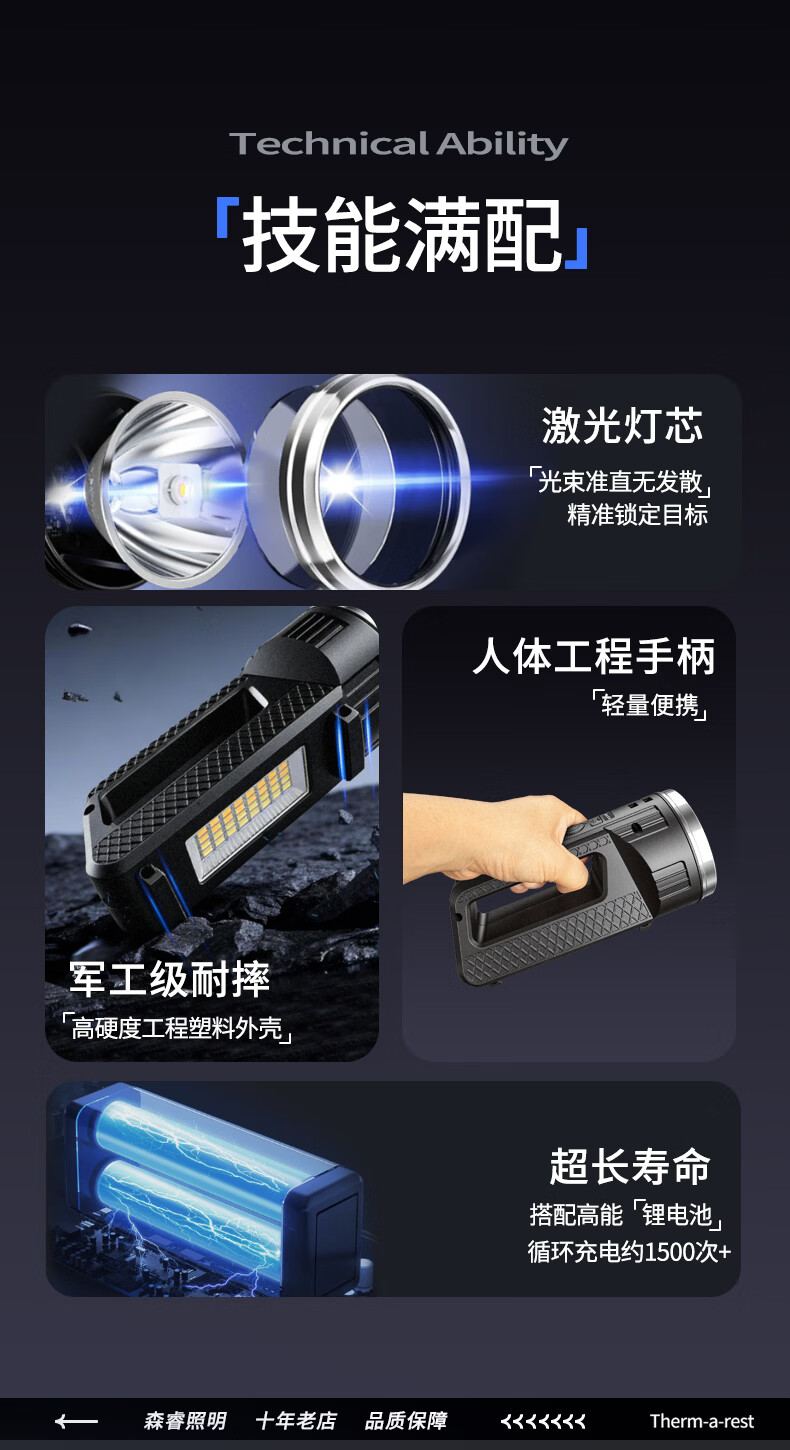 thermarest充电手电筒家用应急照明灯户外强光轻便小型登山骑行巡逻探照灯 4000毫安/侧灯/32颗大灯珠/500m