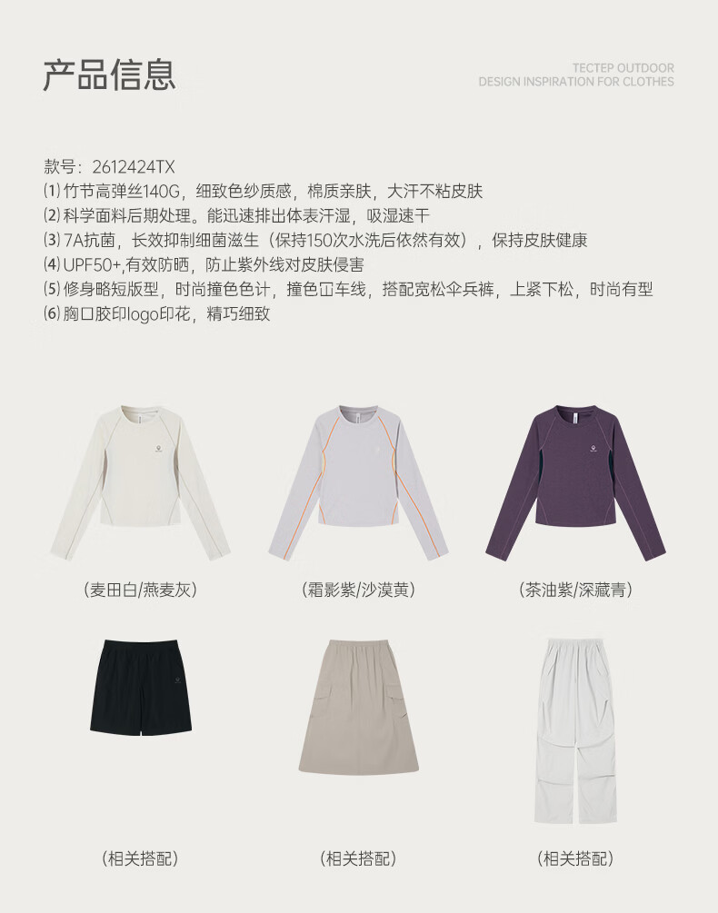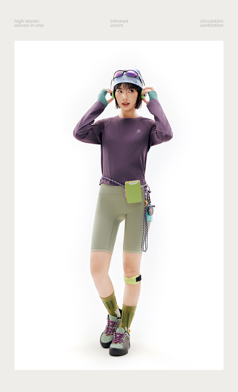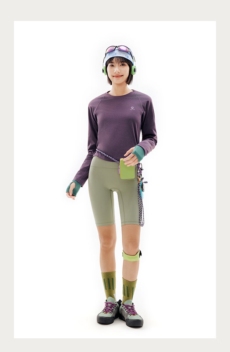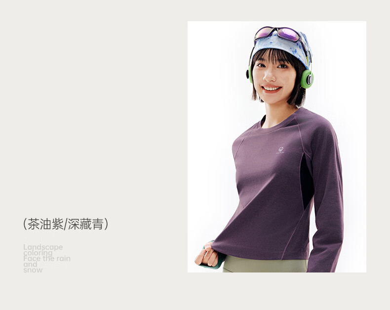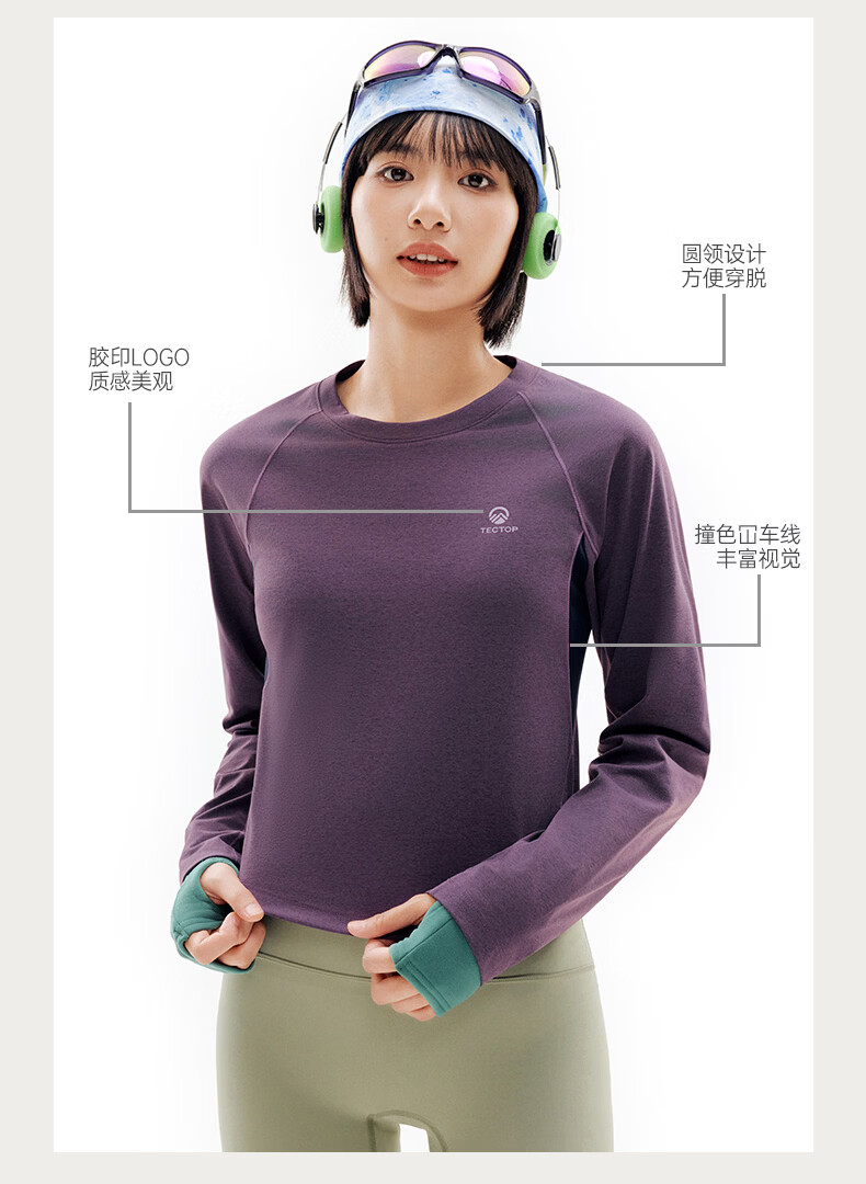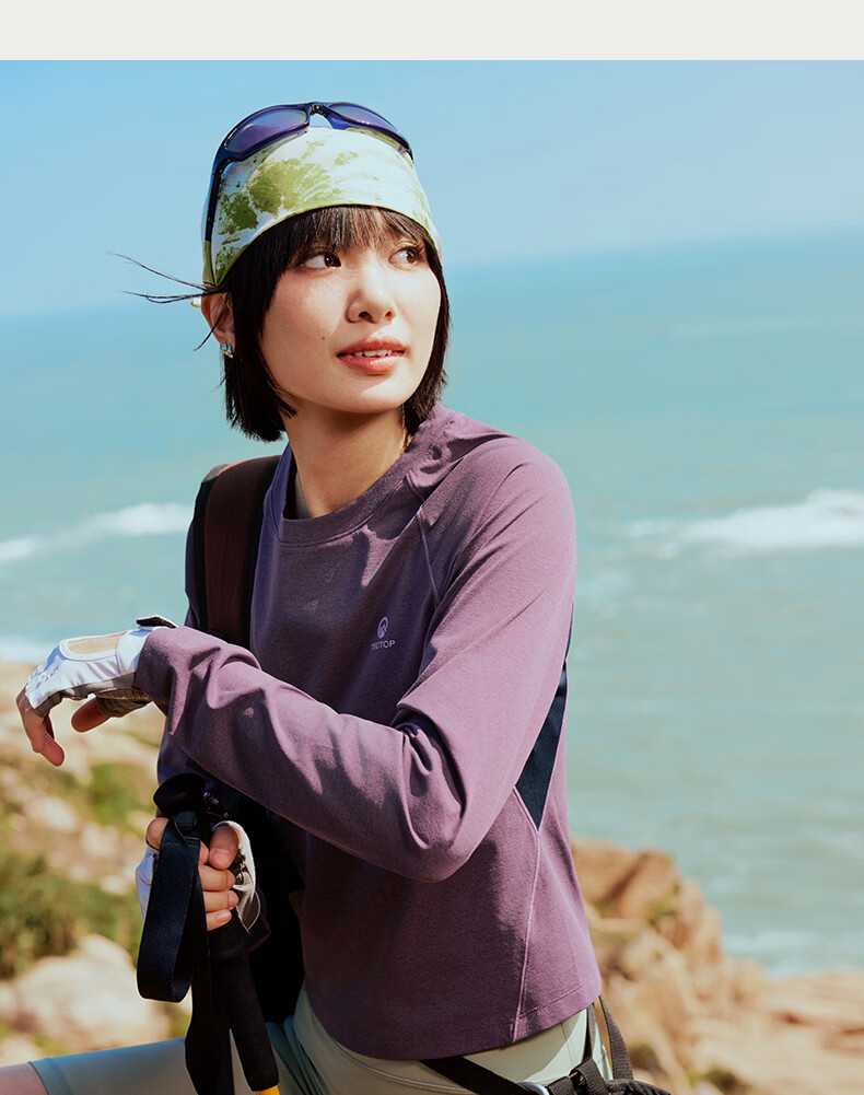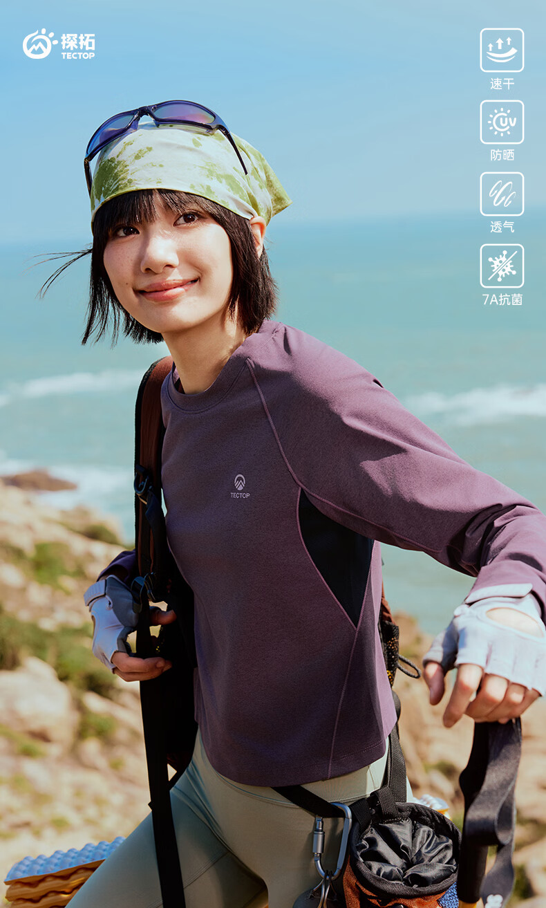 探拓(TECTOP)26新款户外速干衣女长袖弹力透气运动上衣 茶油紫/深藏青 S