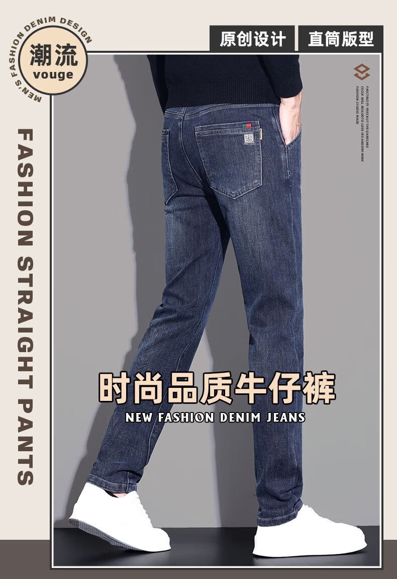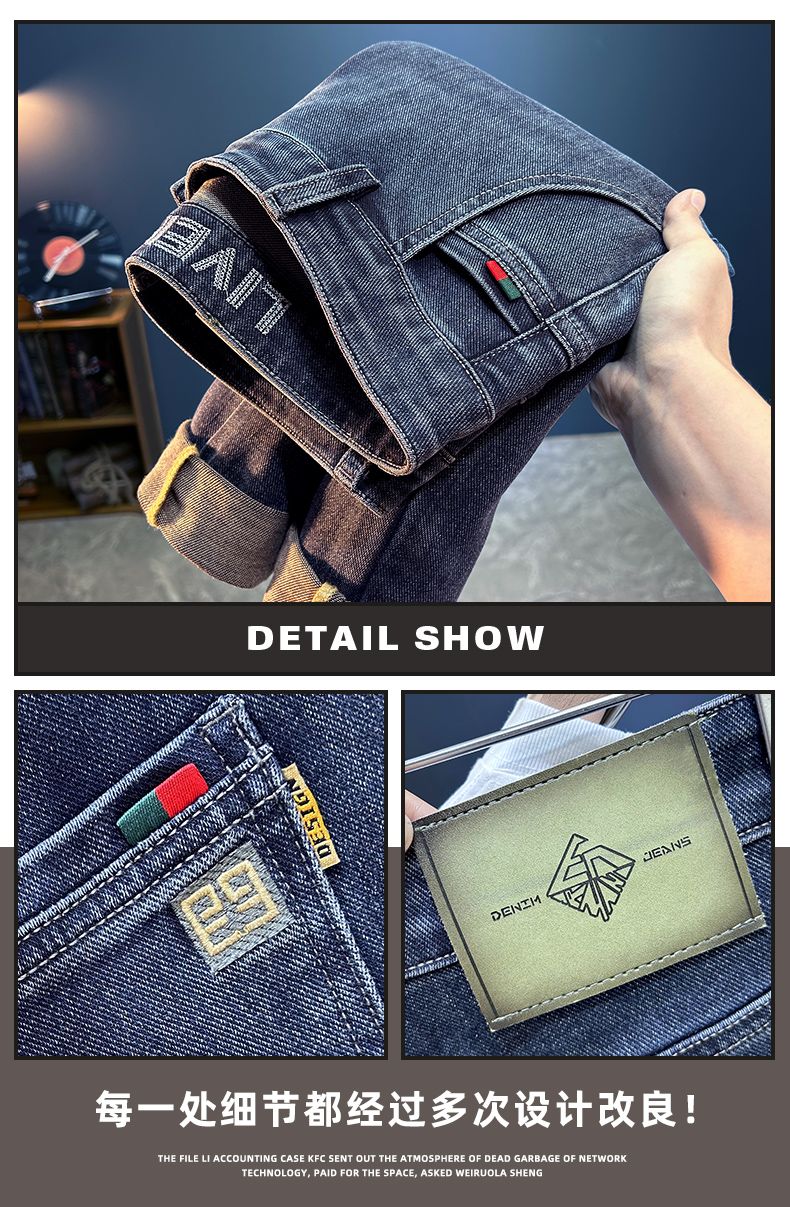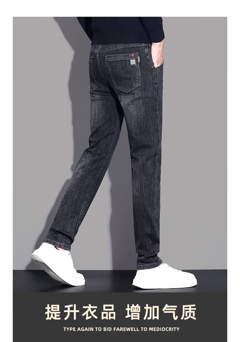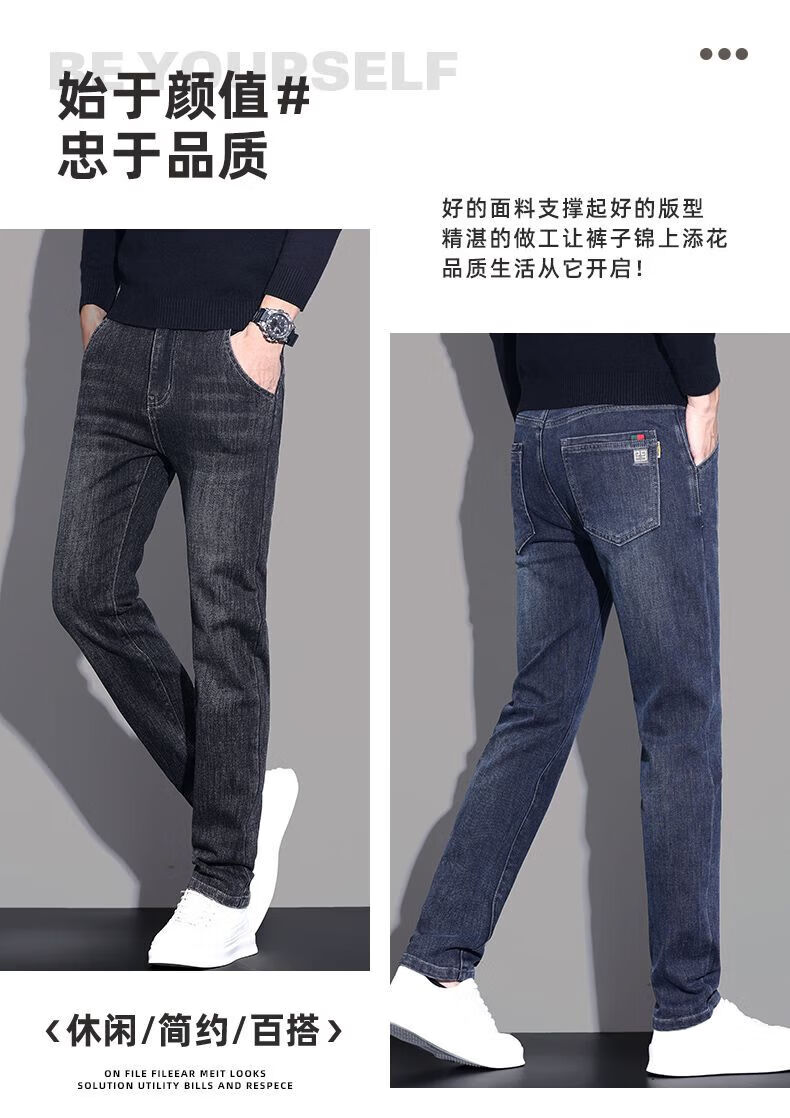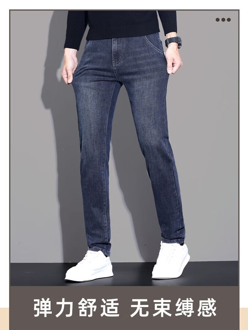 啄木鸟牛仔裤男春秋冬季新款宽松加绒休闲高端直筒裤男青年弹力长裤子男 蓝灰色 28 (建议90-100斤)
