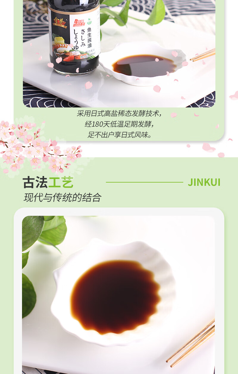 金葵鱼生酱油200ml*2瓶+芥末43g寿司刺身三文鱼酱油