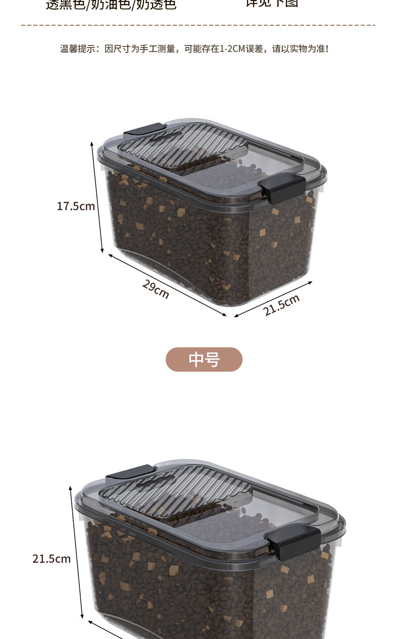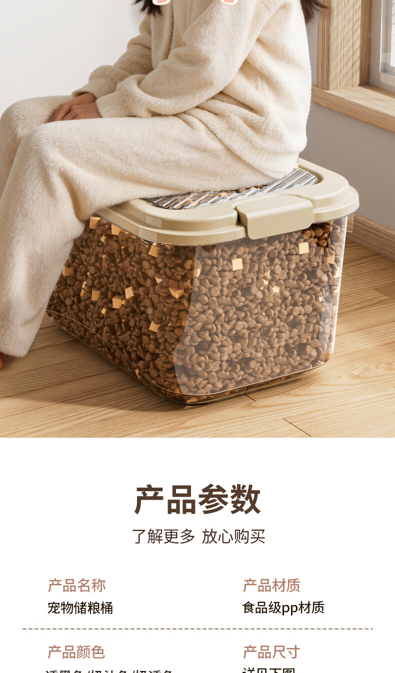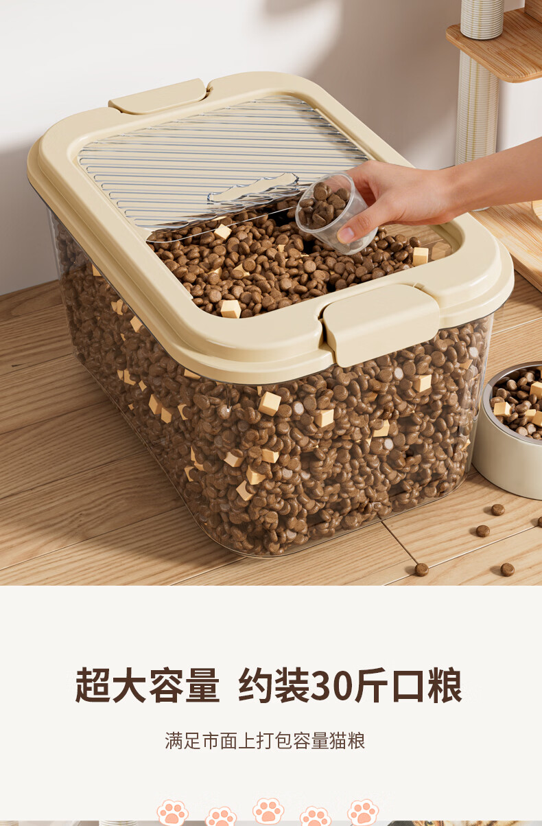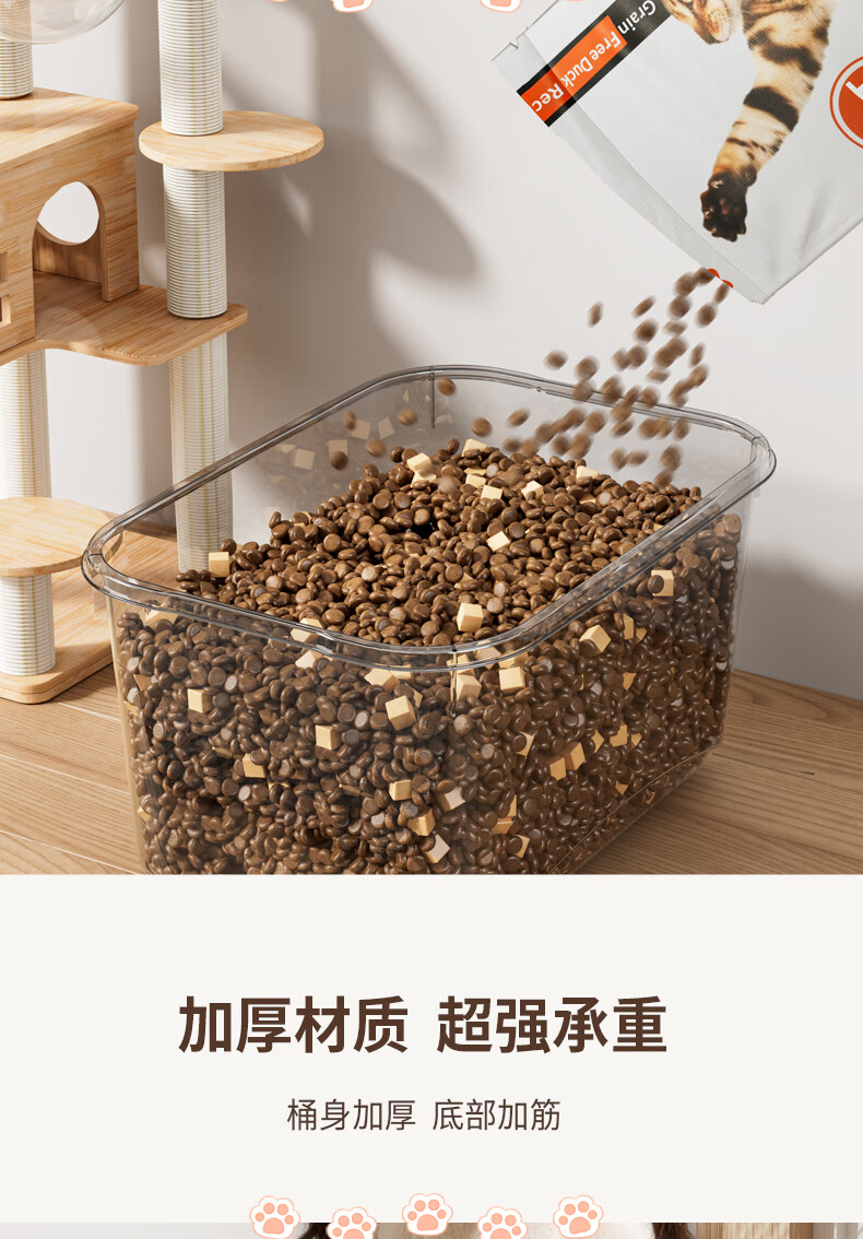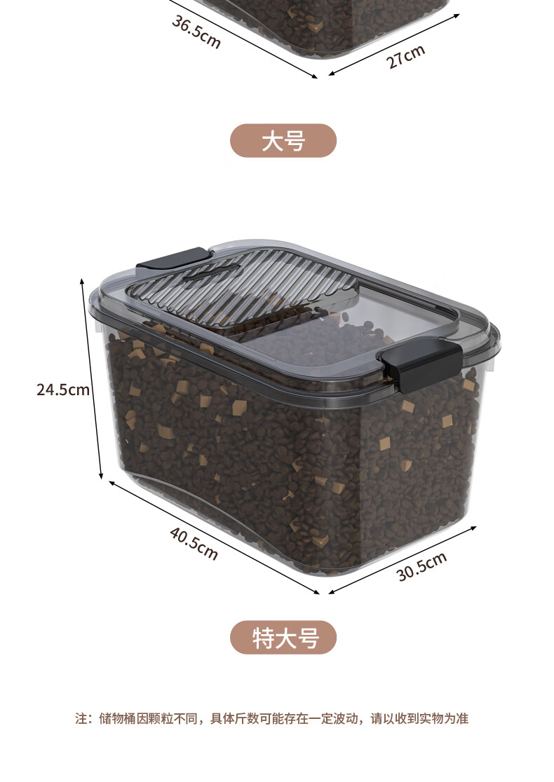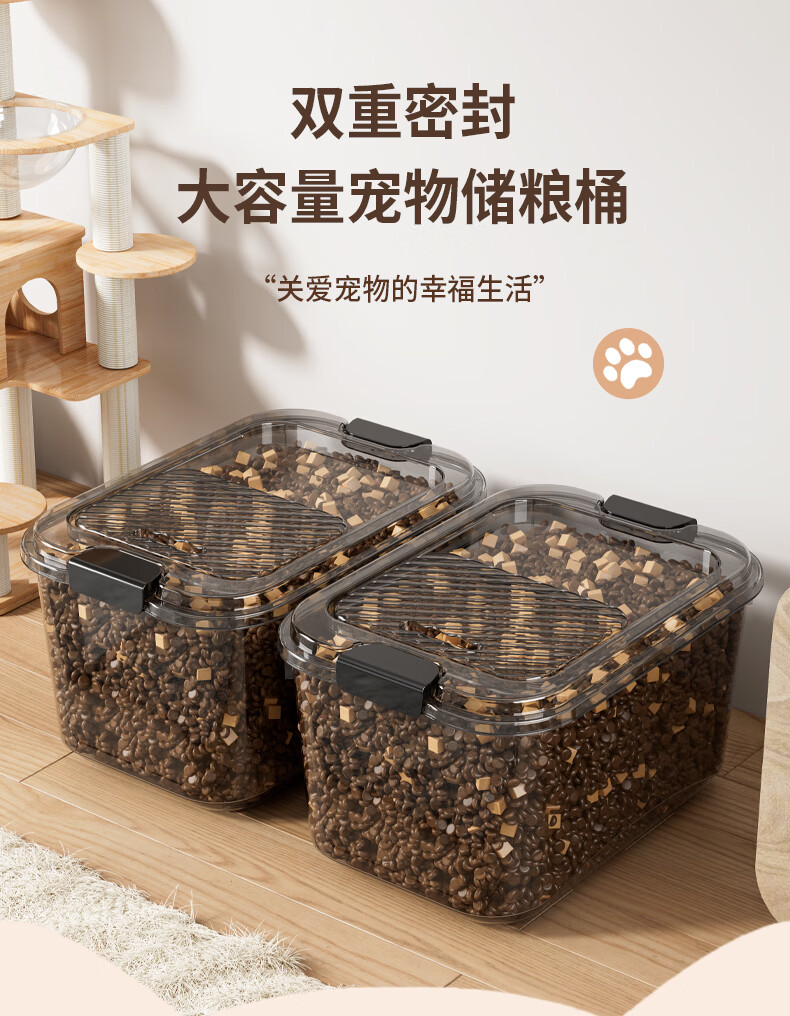纳份爱透明收纳箱家用玩具杂物整理箱猫狗储粮桶宠物零食密封桶收纳盒子 大号*宠物粮约15-18斤装【透明黑】 升级超大容量/大开口轻松取粮/存粮