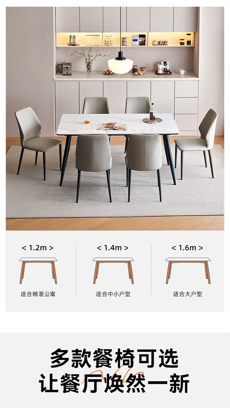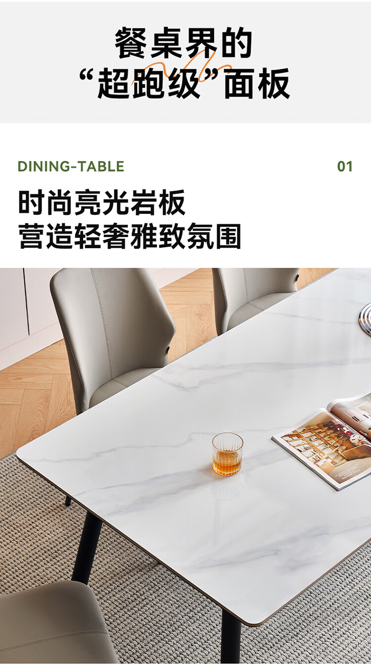 全友家居 现代简约岩板餐桌椅子全套轻奢高级感客厅新款饭桌家用4-6人