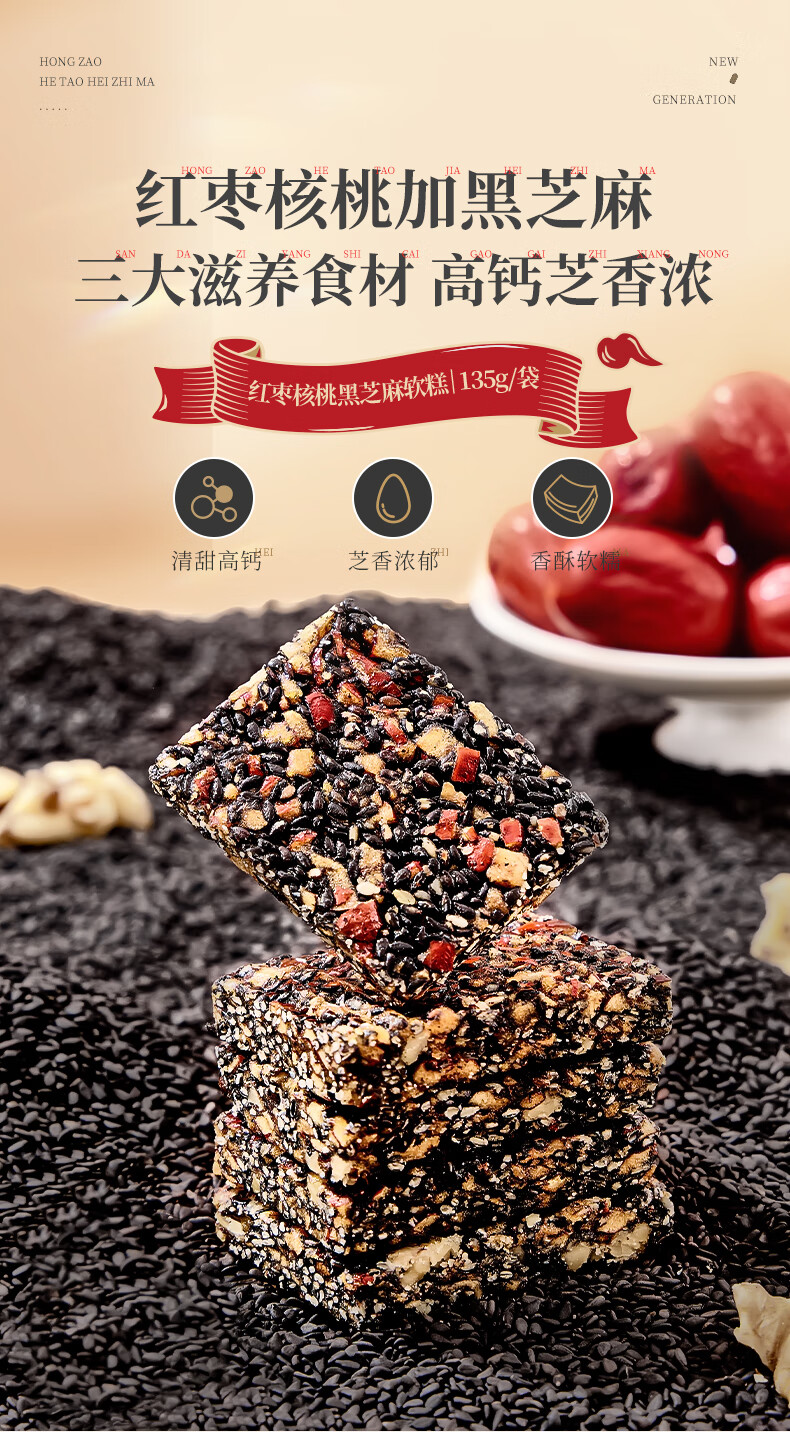 好想你_红枣黑芝麻软糕 核桃软糕孕妇零食营养小吃坚果蜜饯软送长辈节日 红枣黑芝麻软糕135g*3袋