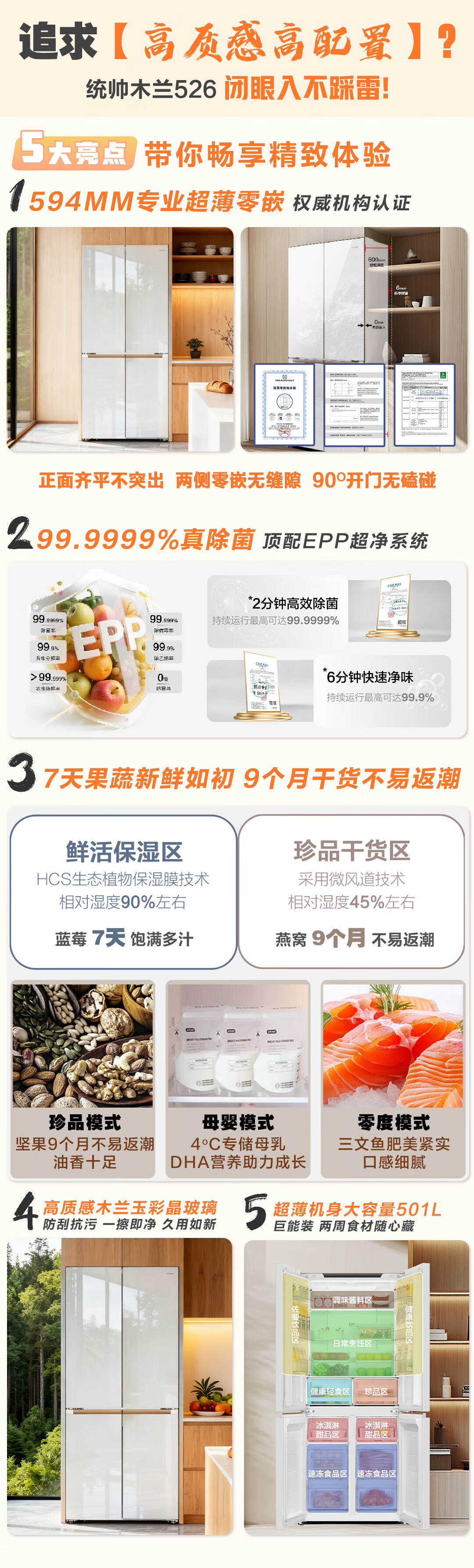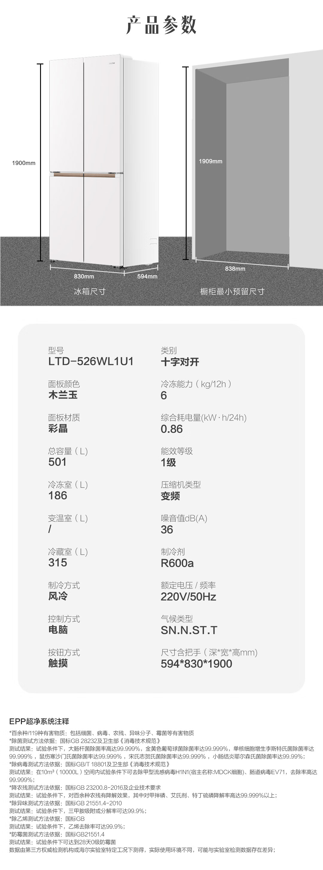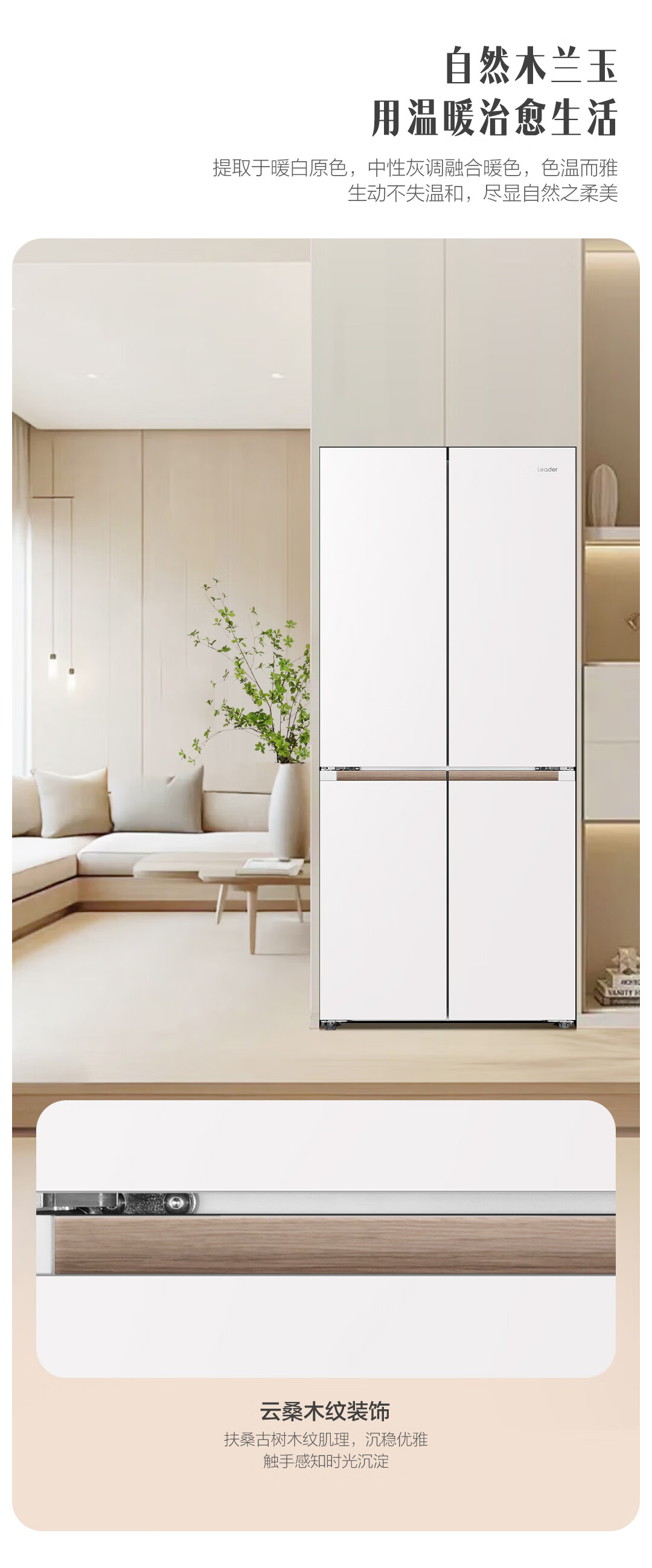 统帅(Leader)海尔冰箱出品木兰501L十字门冰箱家用母婴594MM超薄零嵌入式除菌LTD-526WL1U1以旧换新国家补贴15%