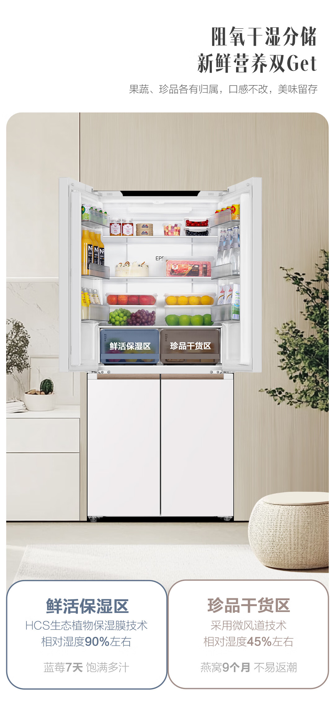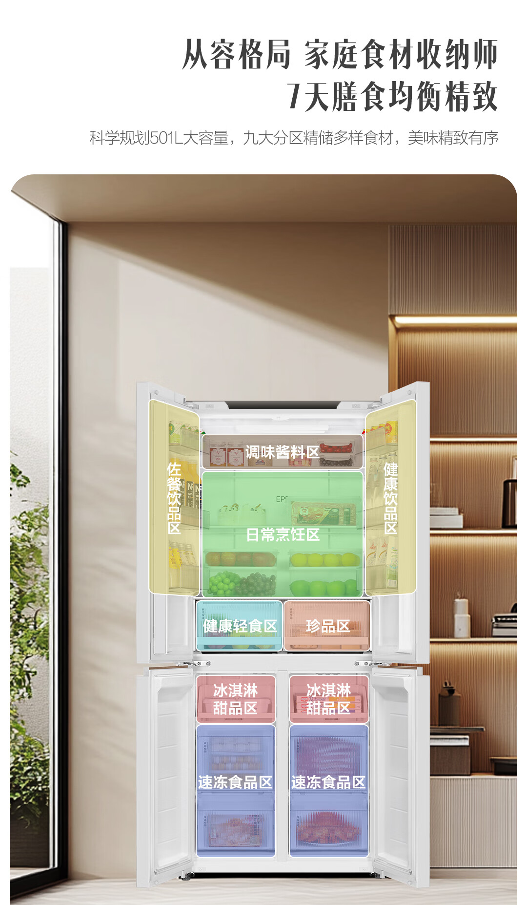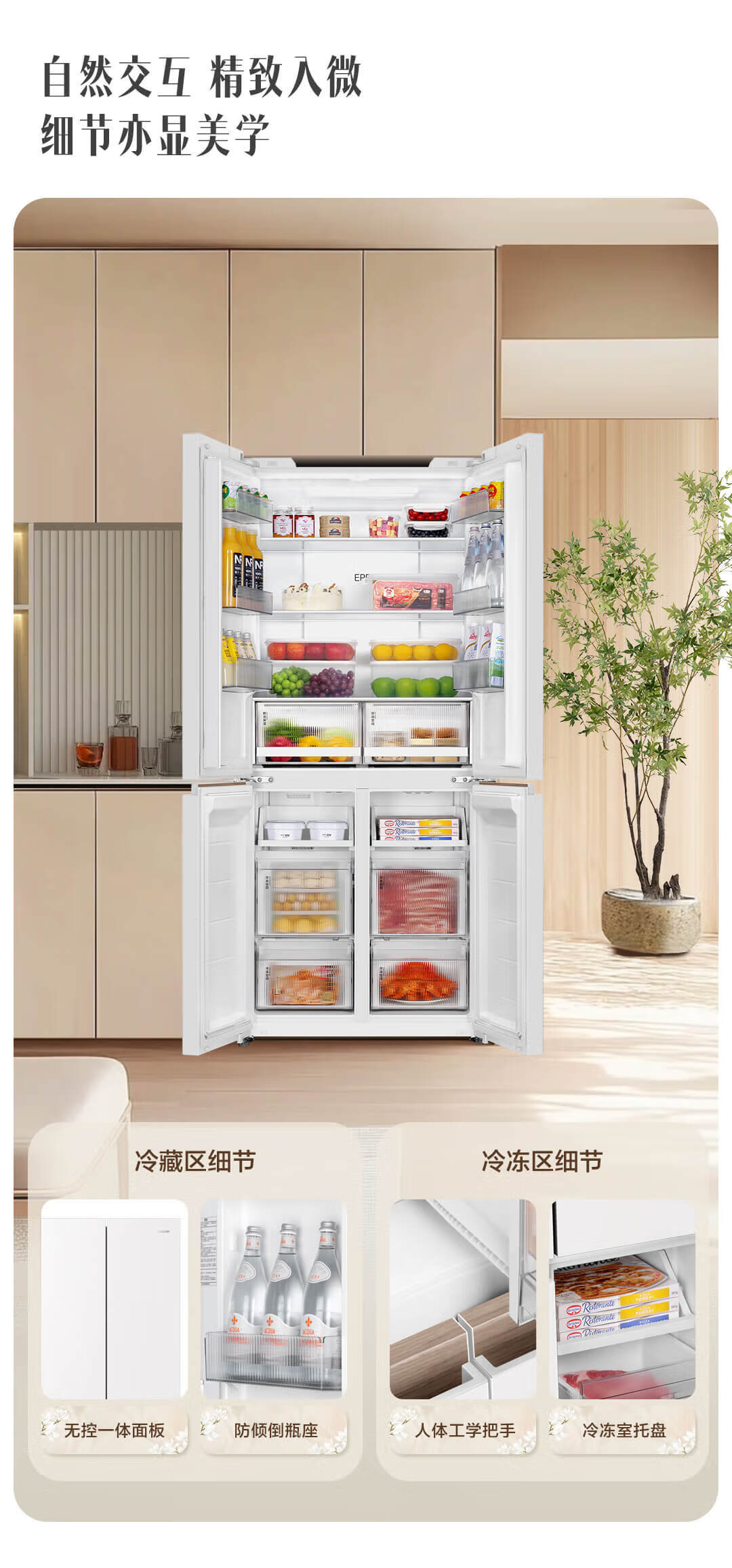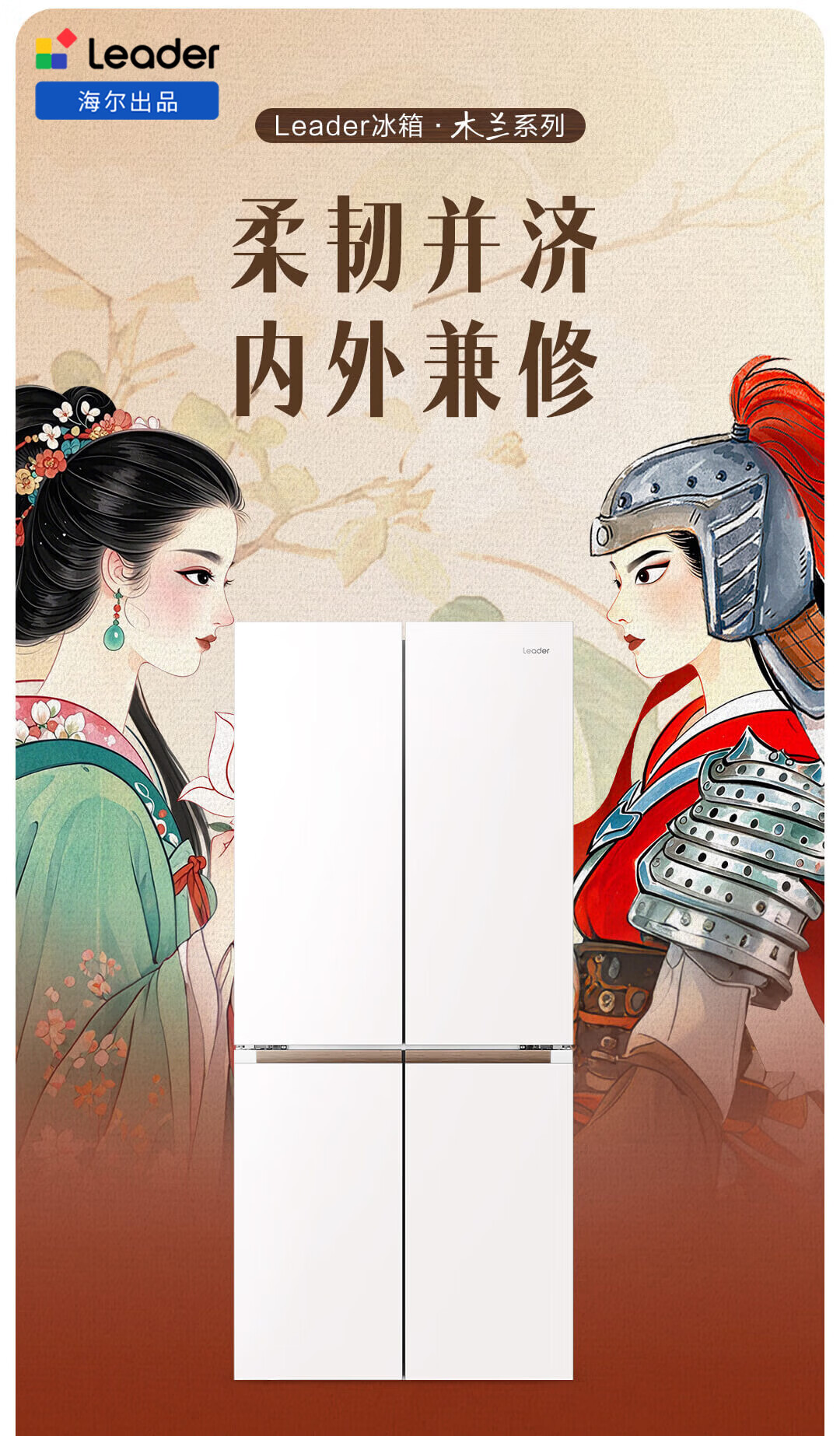 统帅(Leader)海尔冰箱出品木兰501L十字门冰箱家用母婴594MM超薄零嵌入式除菌LTD-526WL1U1以旧换新国家补贴15%