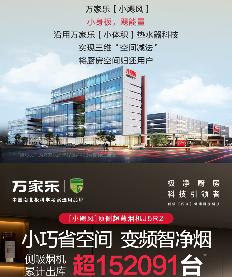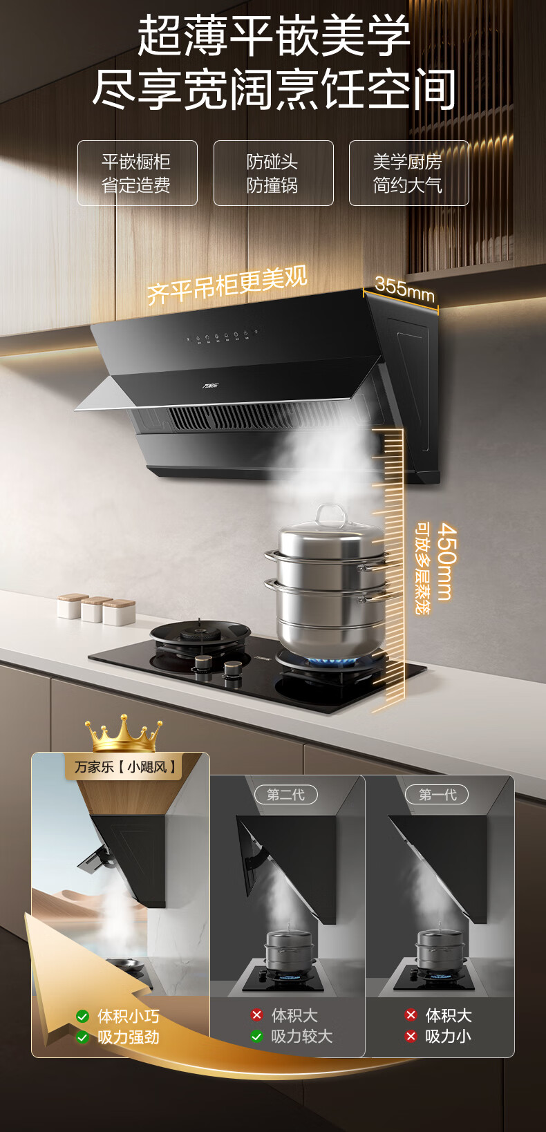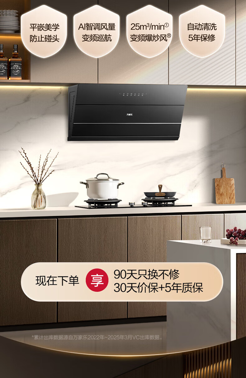 万家乐油烟机【小飓风J5R2】侧吸式跨界油烟机超薄平嵌 25m³风量变频换新免改柜挥手自清洗吸抽排油烟机