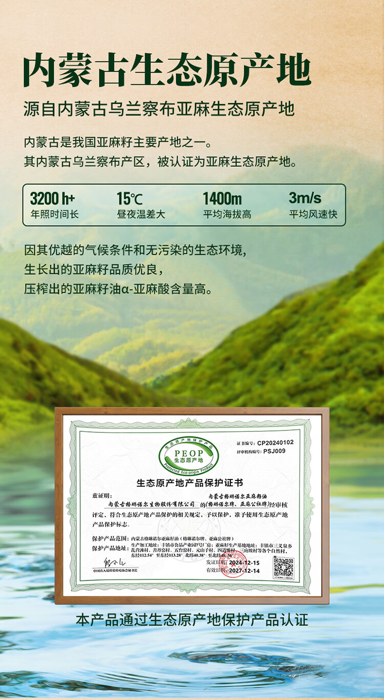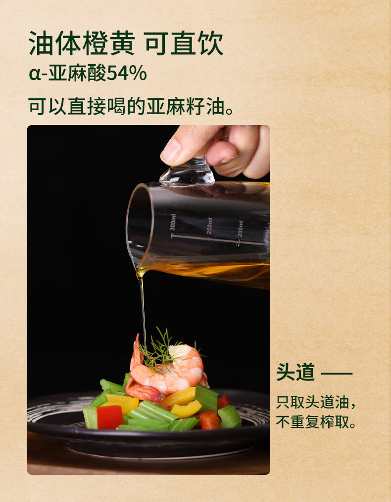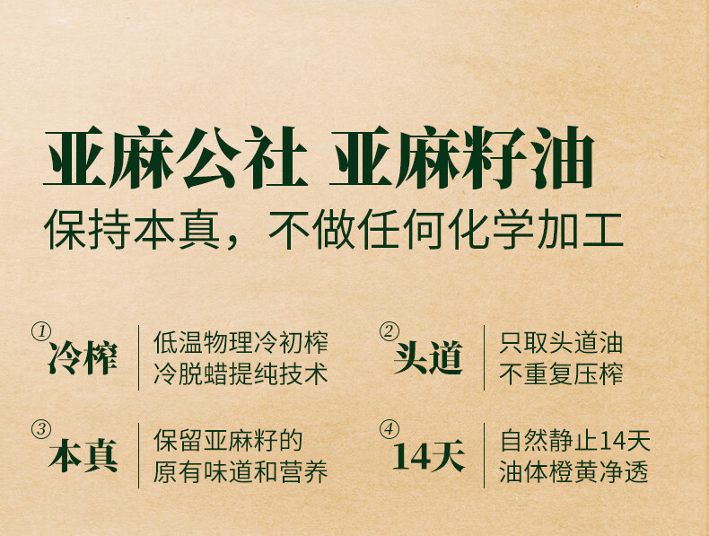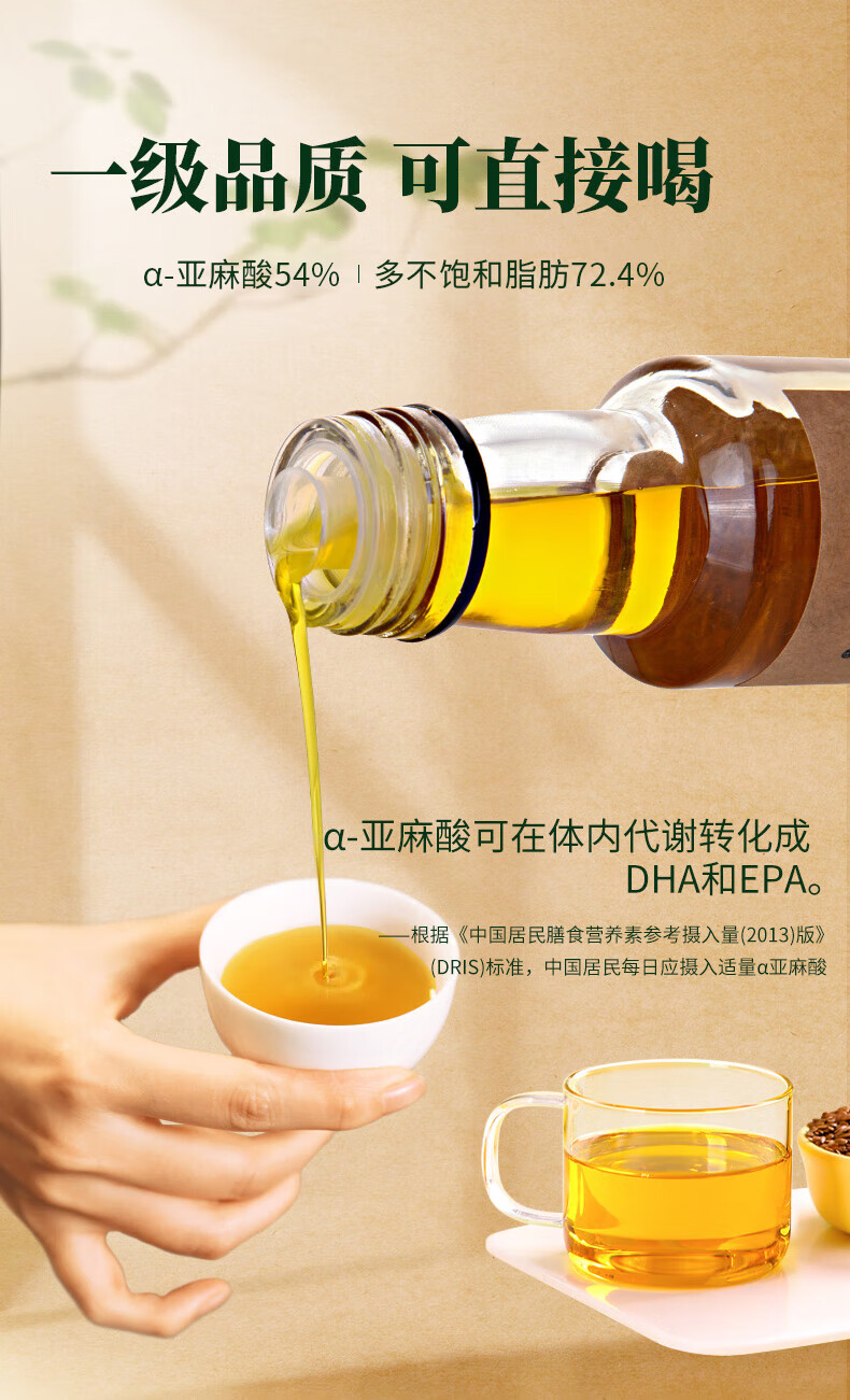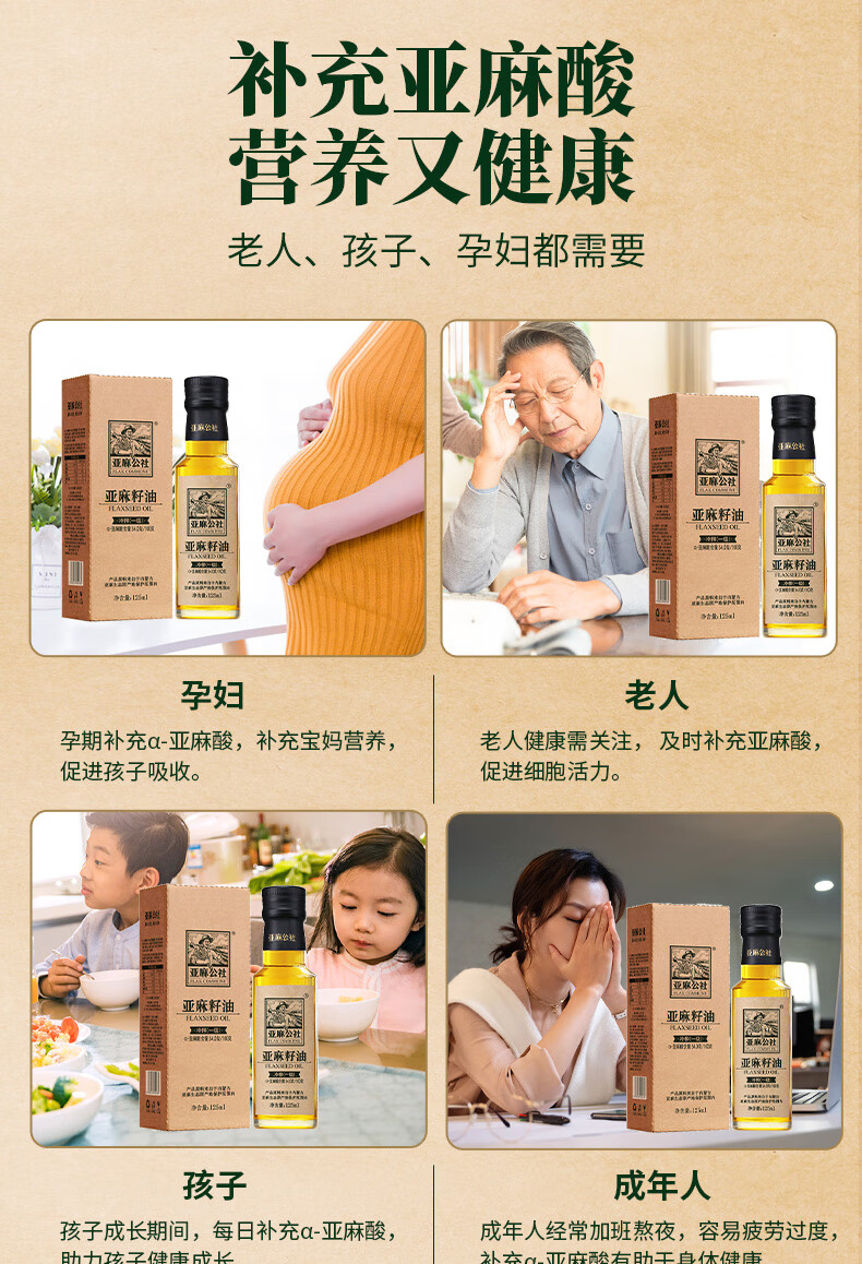 亚麻公社 【保真亚麻籽油】125ml 一级冷榨直接喝内蒙古胡麻油 宝宝omega3